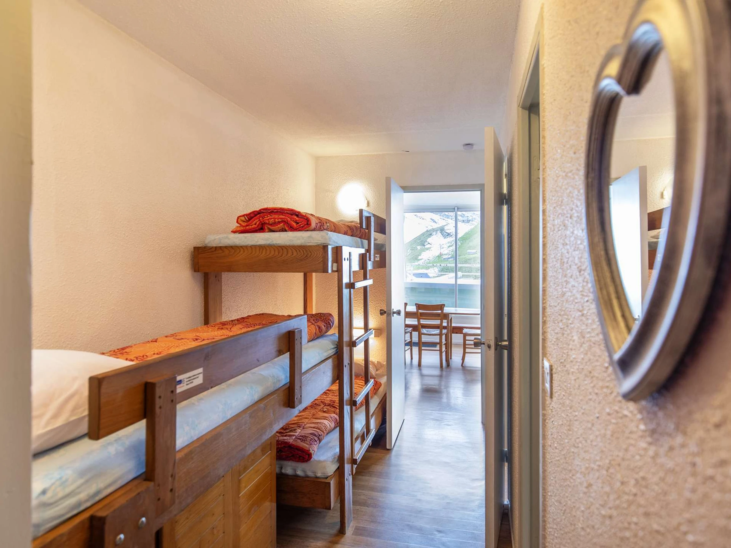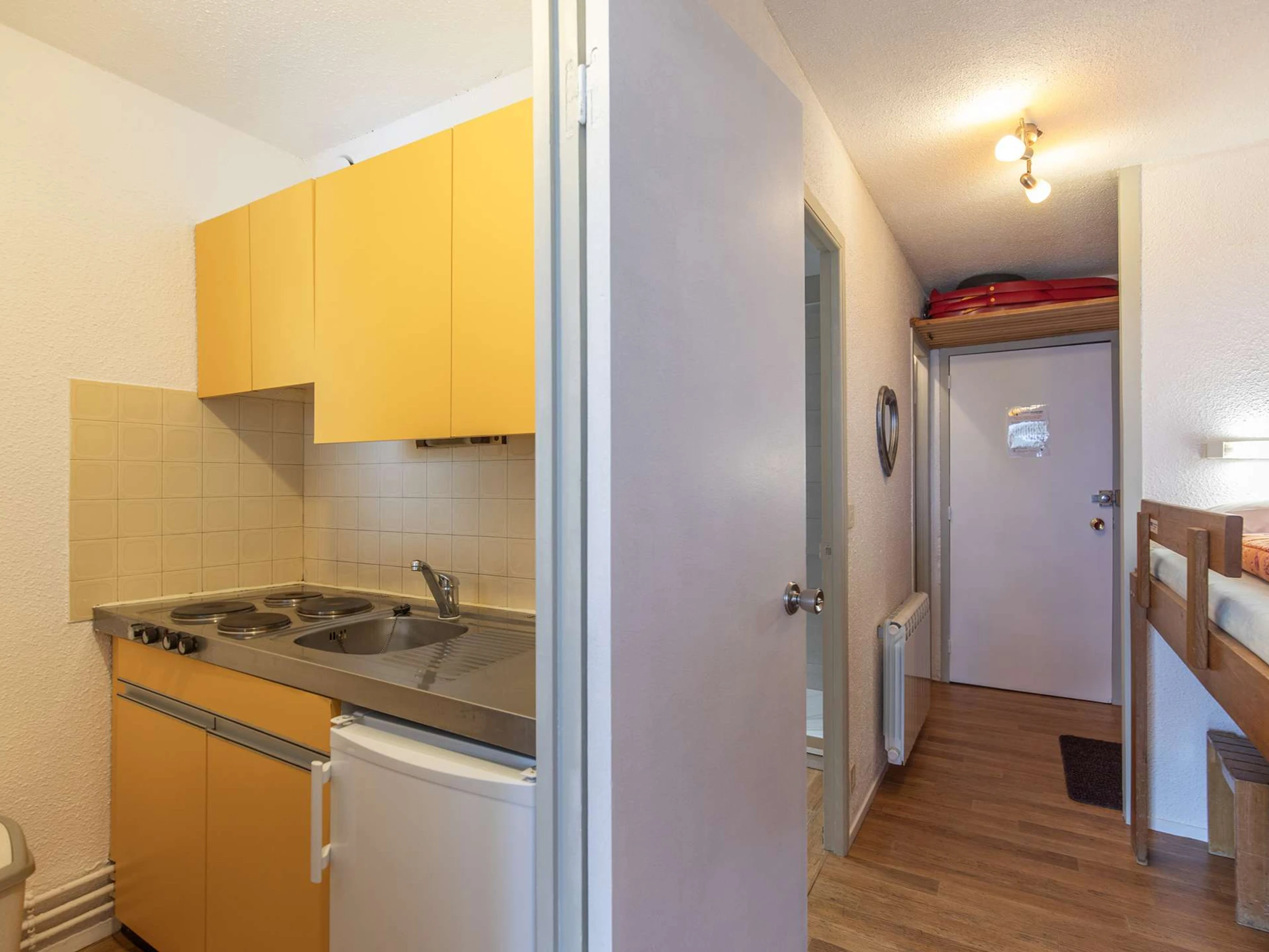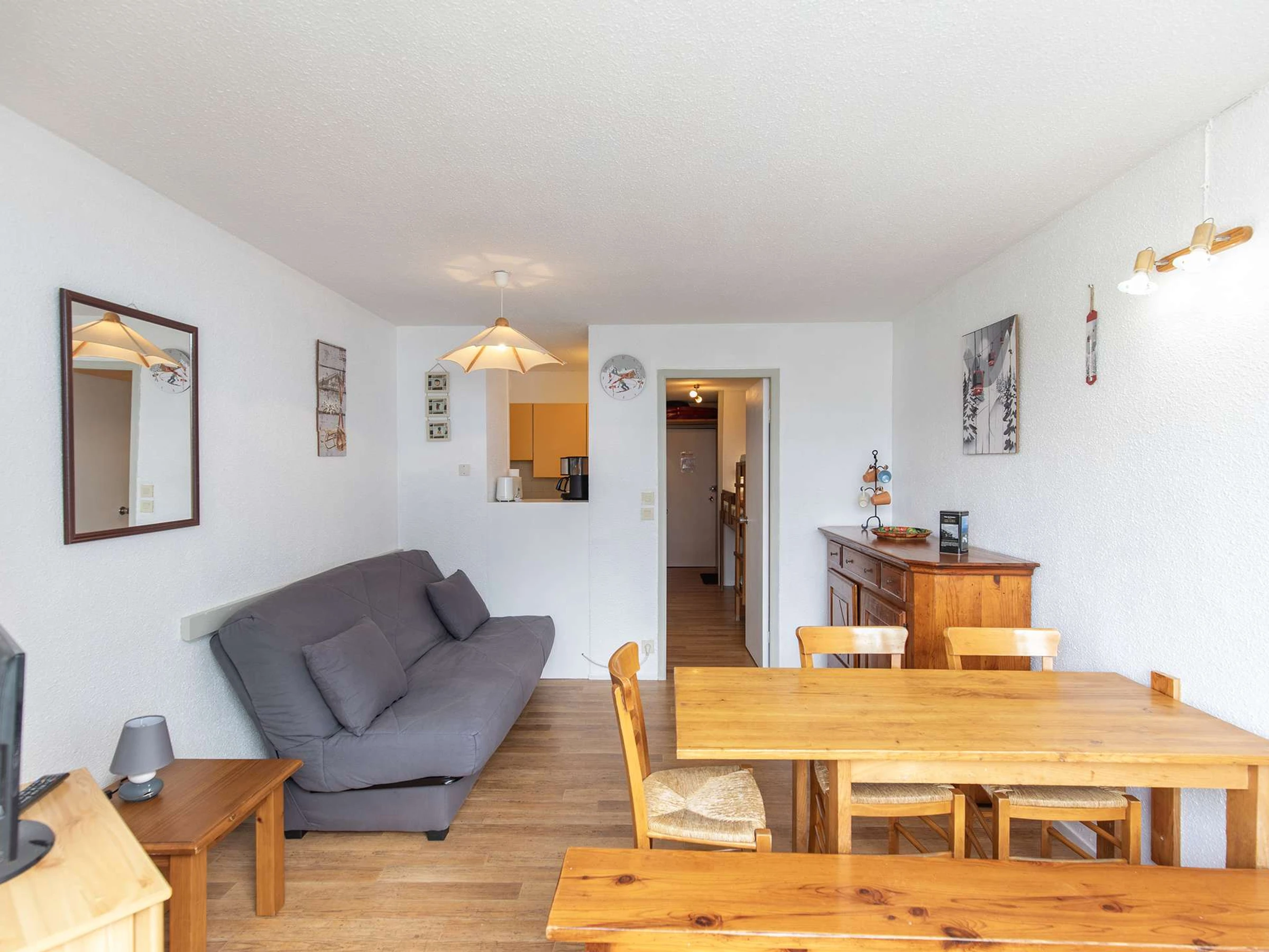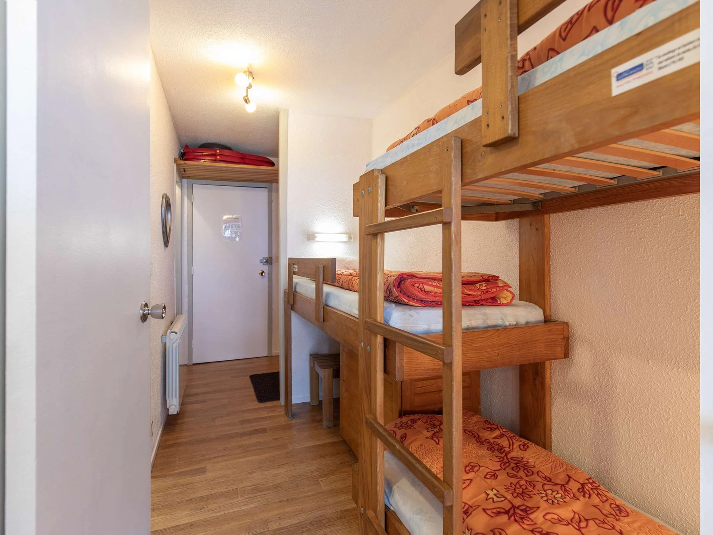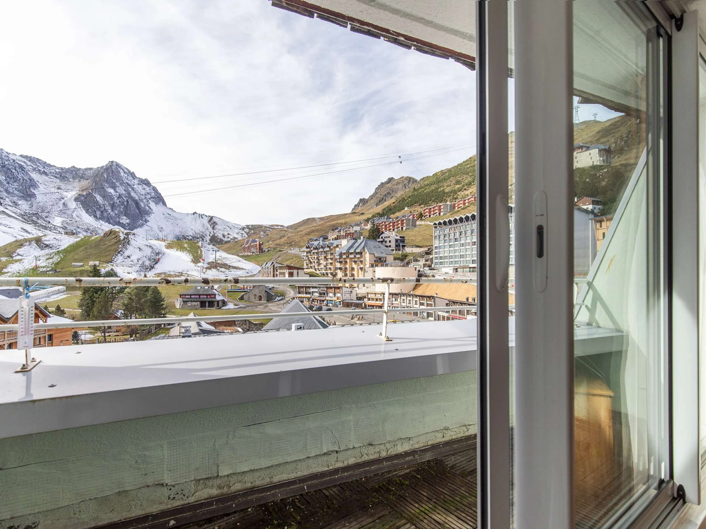 Apartment located on the 6th floor with elevator, surface of 28m ² with balcony, west exposure (view on station and tracks). Stay equipped with a television, a sofa-click-clac two people. Corner cabin with three bunk beds in 70cm. PVC floor.