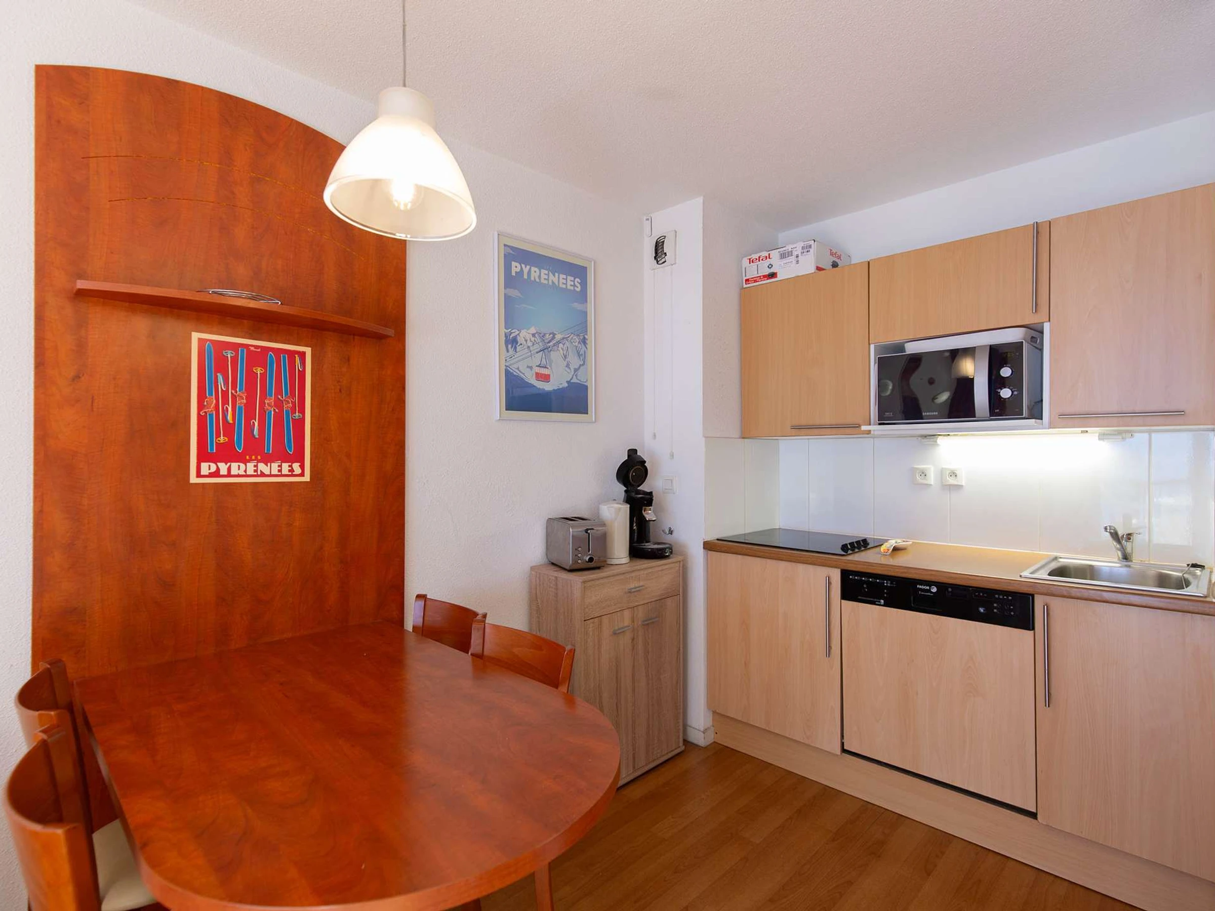2 room apartment sleeps 4 located on the 2nd floor without elevator, area of ??33 m² with terrace, south exposure. Living room with a sofa bed 160 (2x80), dining area, TV. Kitchen area in living room with ceramic hob, microwave, coffee maker, kettle, dishwasher, toaster. Parquet floor. Ski locker. Covered parking space.