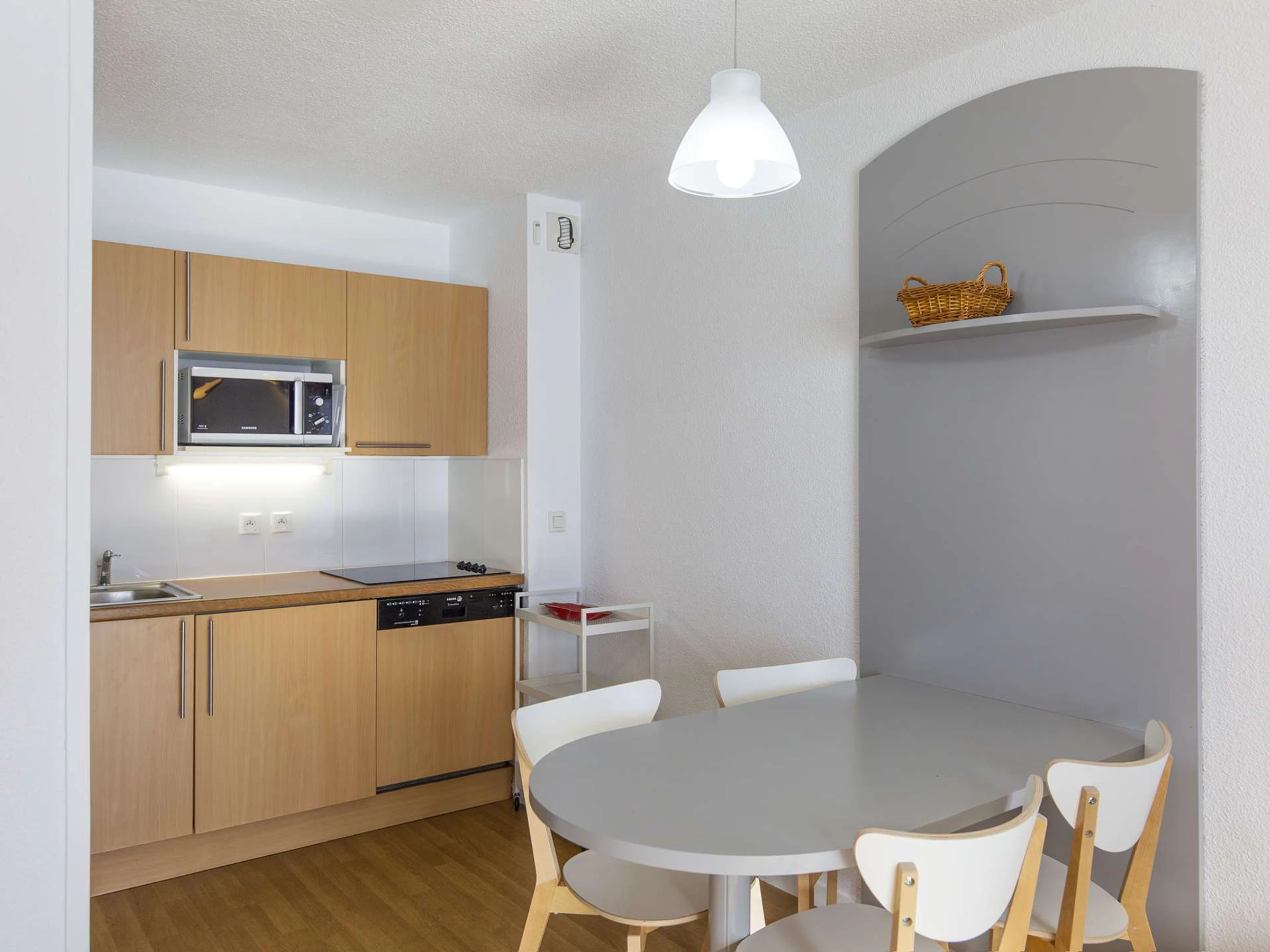 2 room apartment sleeps 4 located on 0 floor without elevator, area of ??33 m² with terrace, south exposure. Living room with a sofa bed 160 (2x80), dining area, TV. Kitchen area in living room with ceramic hob, microwave, coffee maker, kettle, dishwasher, toaster. Parquet floor. Ski locker. Covered parking space.