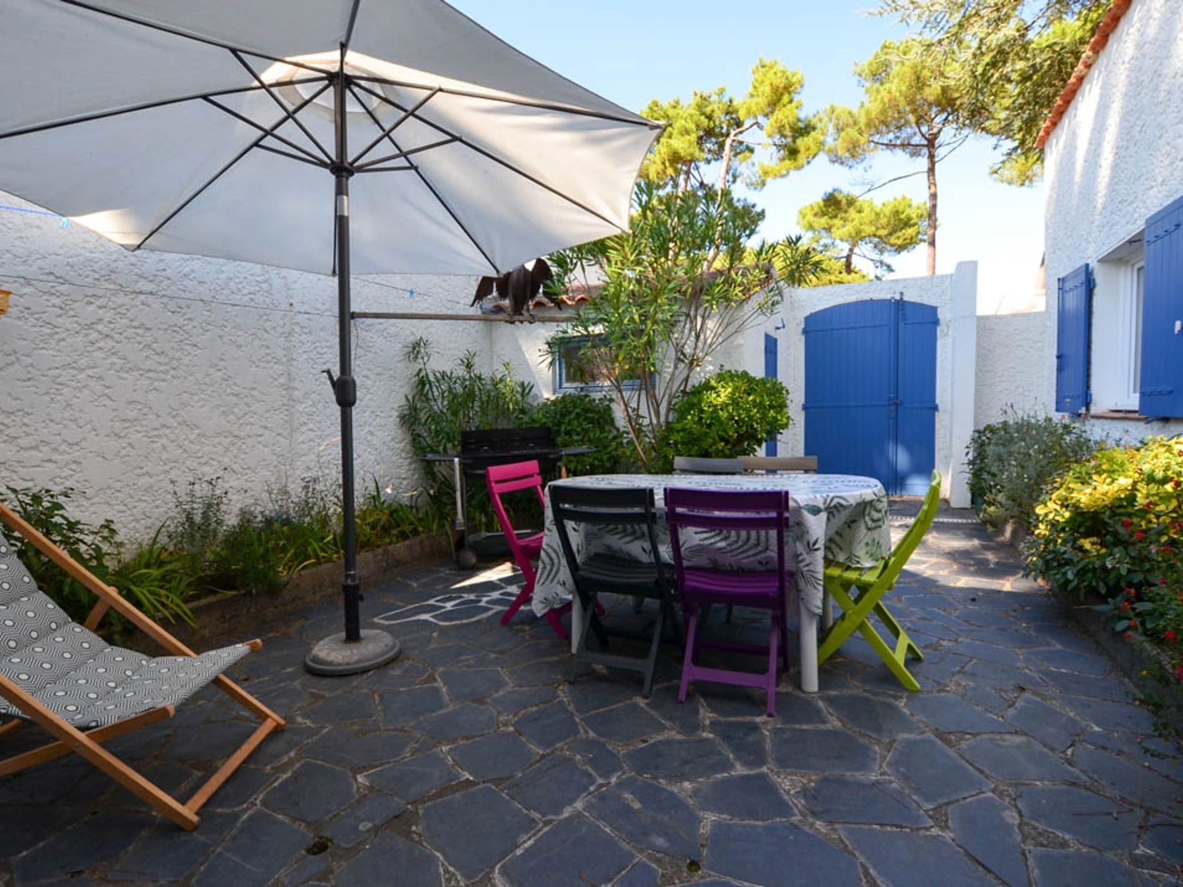 The Les Trémières residence is located in the heart of the LA PALMYRE seaside resort in the pine forest. Everything on foot or by bike. 2 steps from the port, shops, beaches of the Bay of Bonne Anse. A haven of peace!
