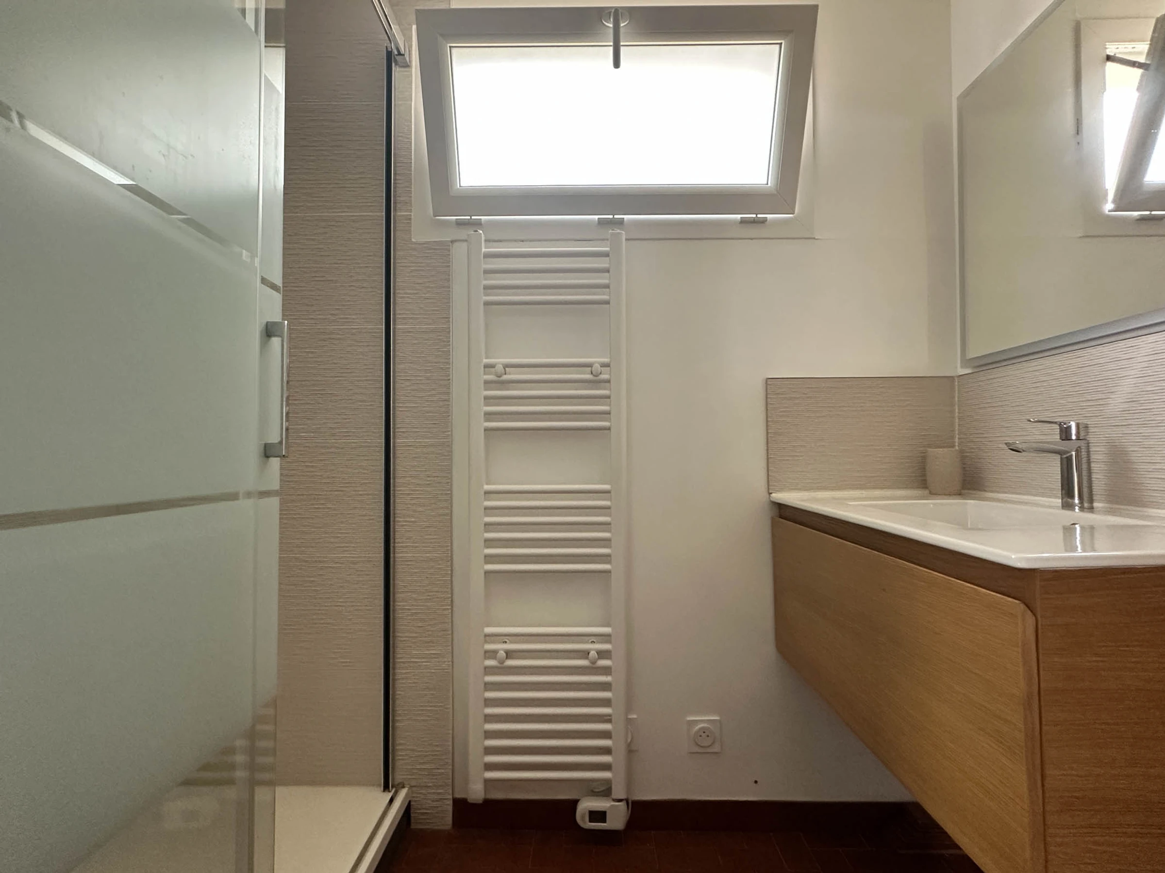 A hallway leads to a WC, a shower room (walk-in shower with heated towel rail),