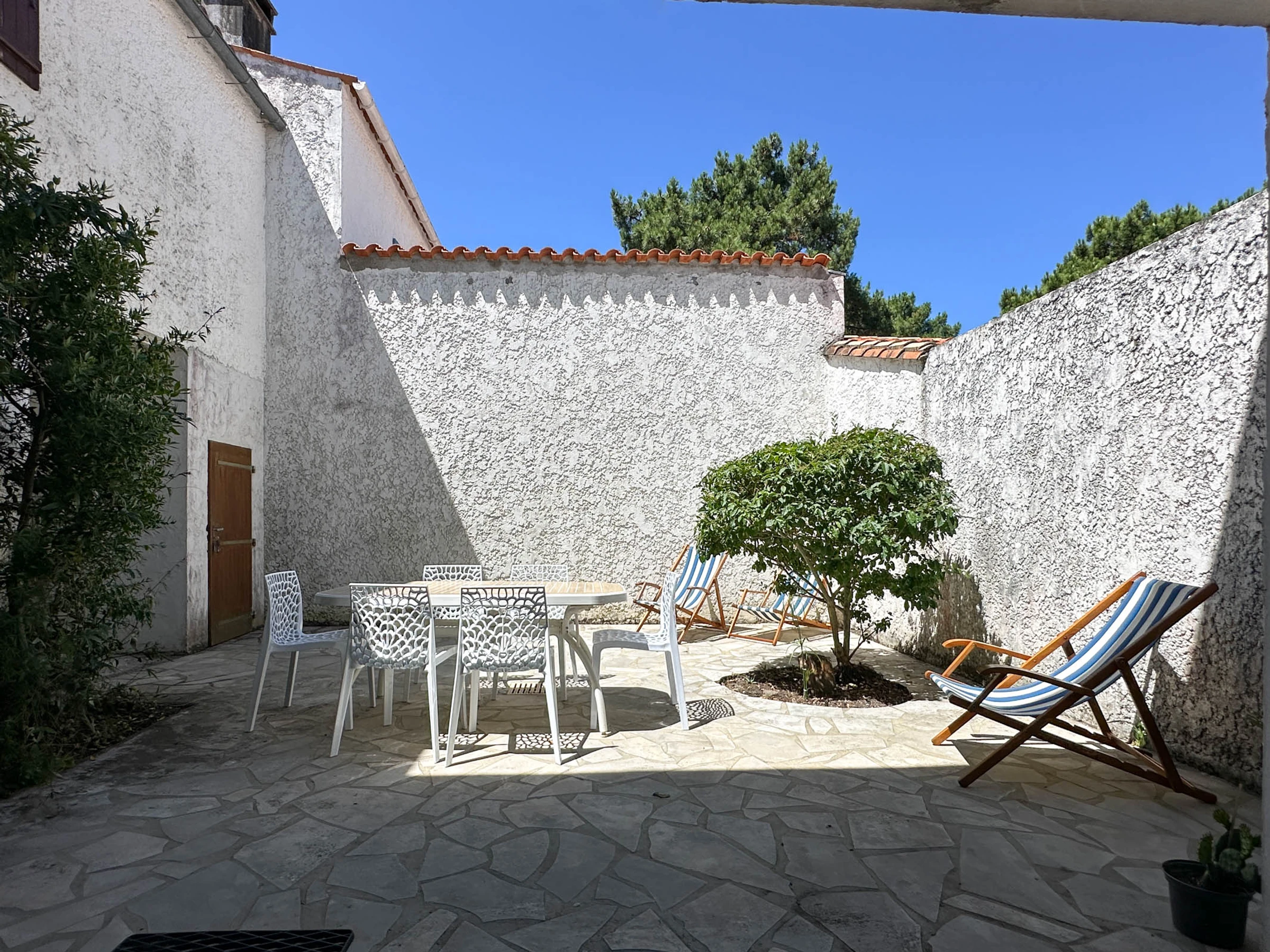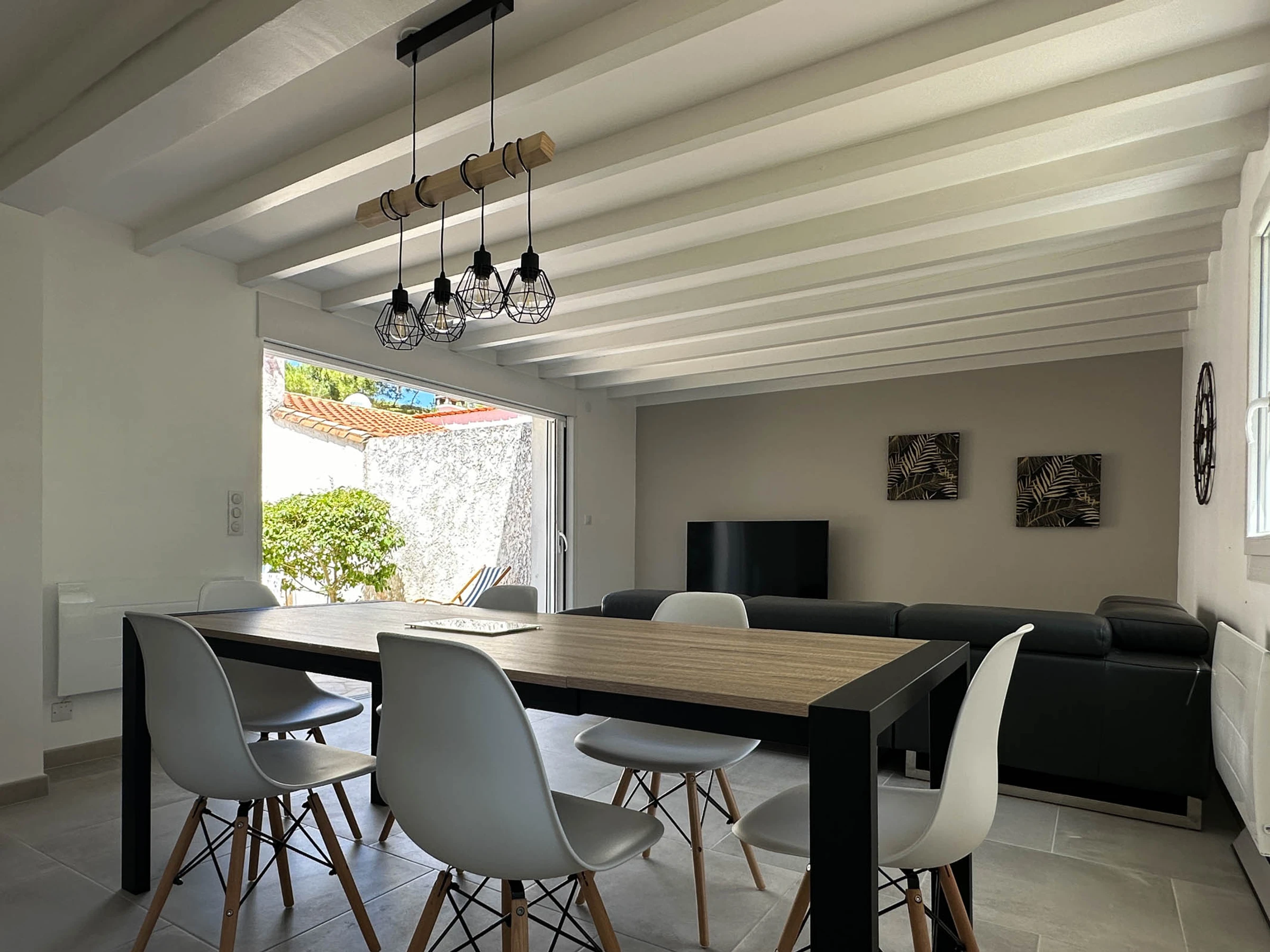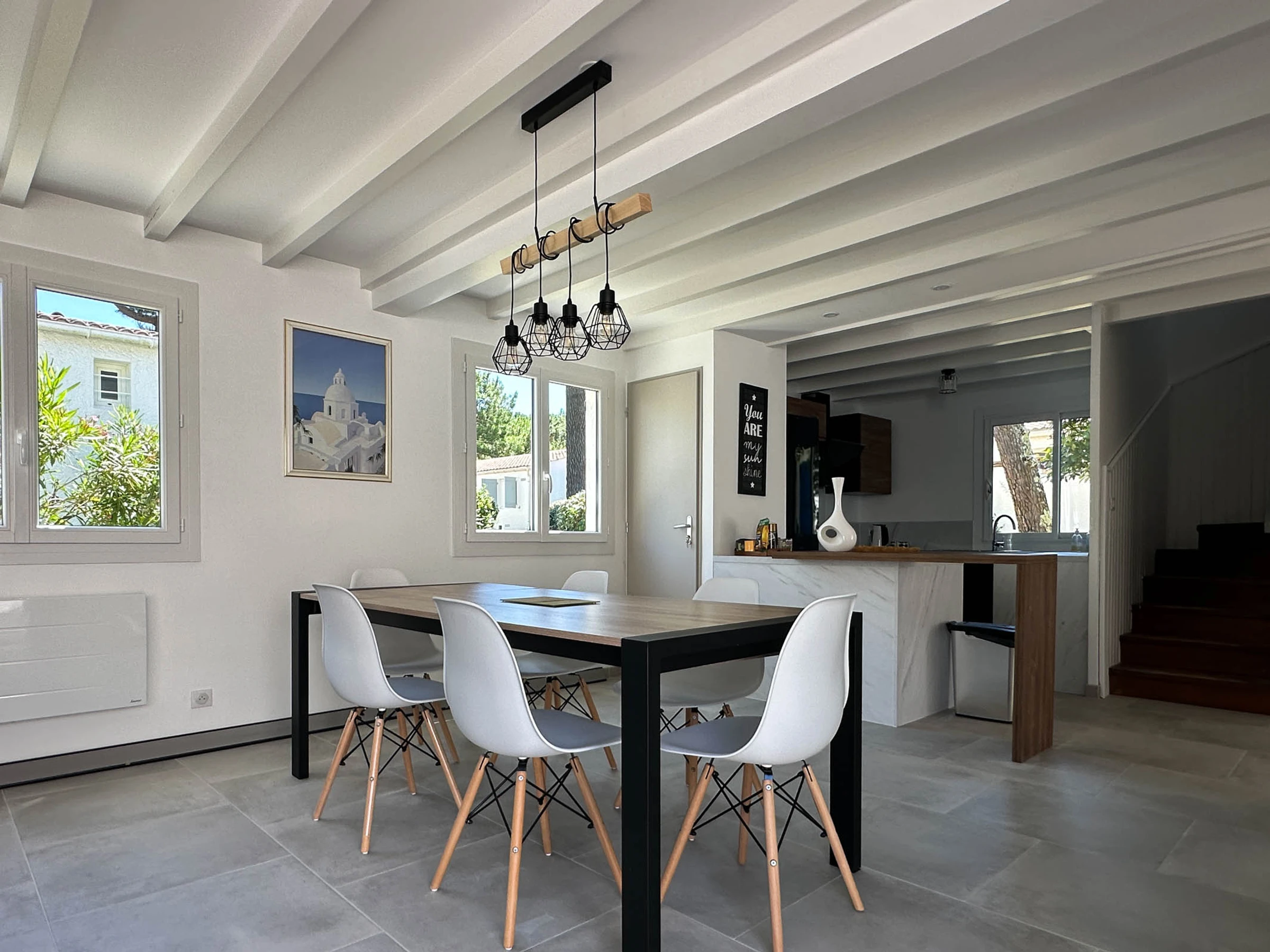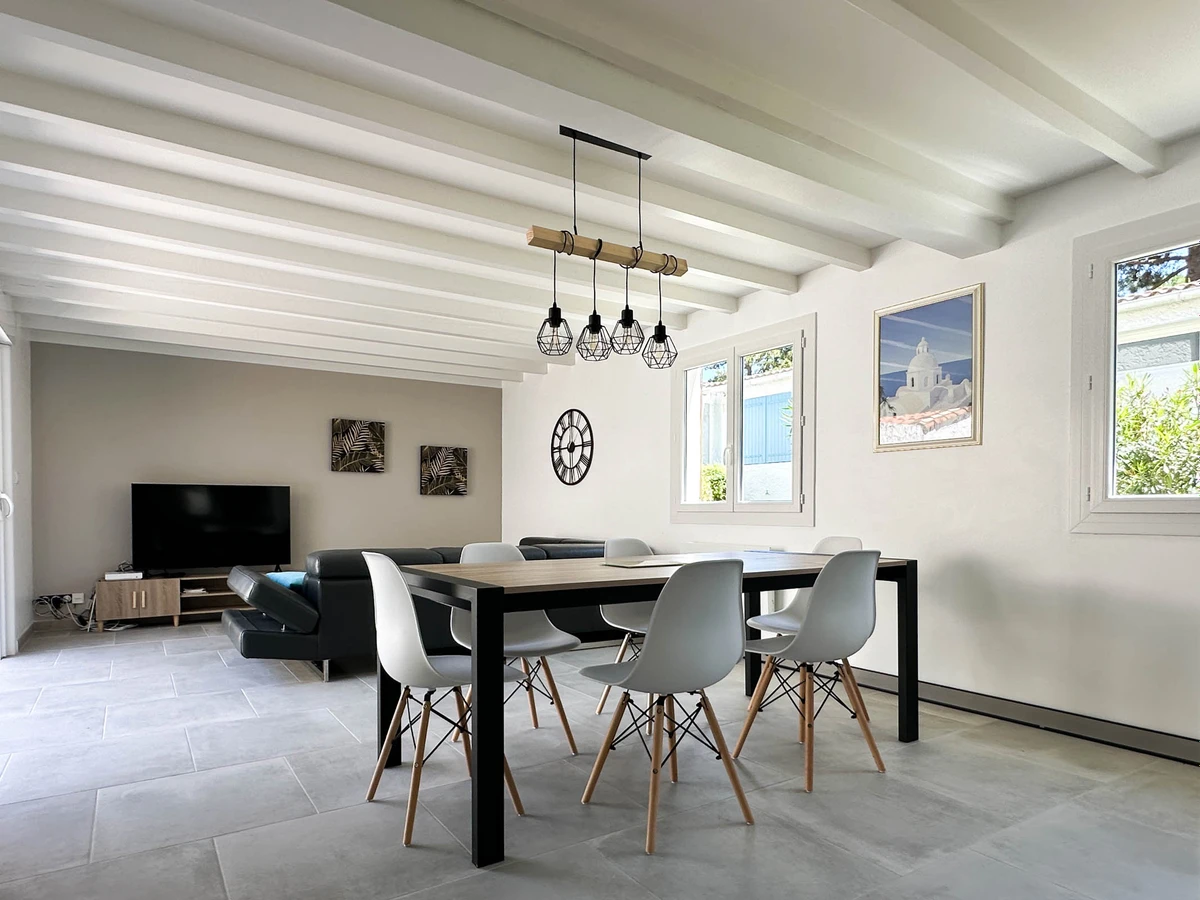 This fully renovated villa, ideally located halfway between the beach and the town center, is located in the Les Trémières family residence in La Palmyre. It offers 95 m² of living space and can accommodate up to 7 people. It includes:
