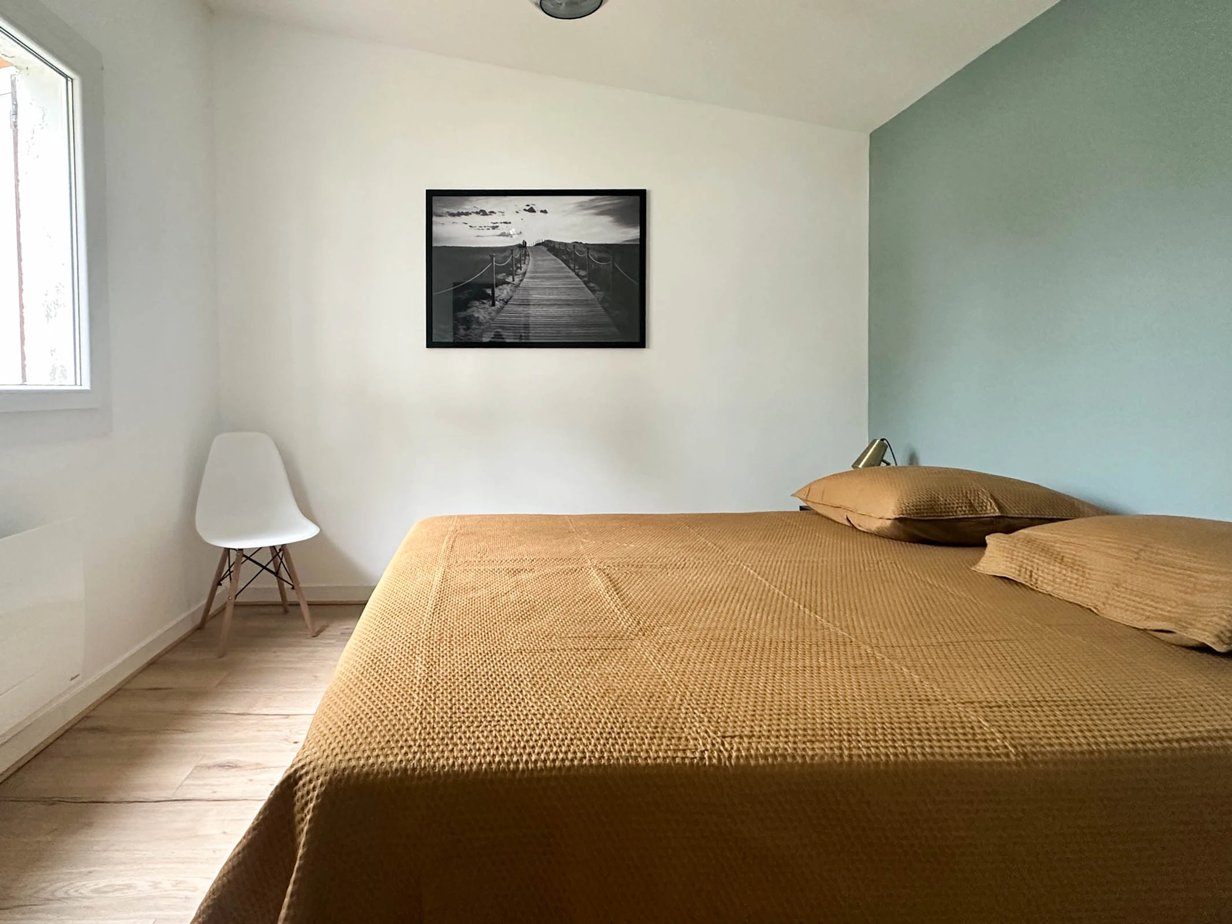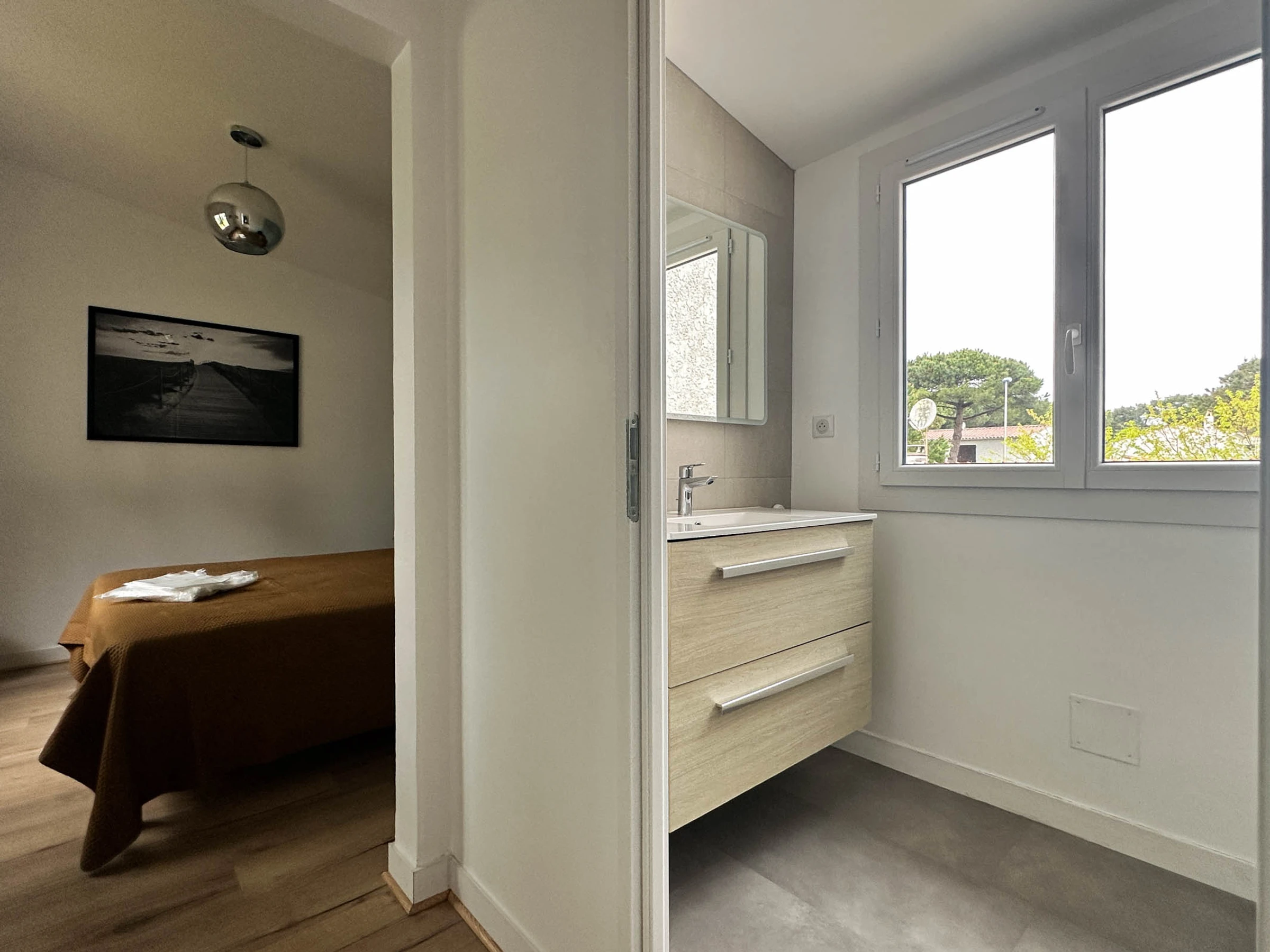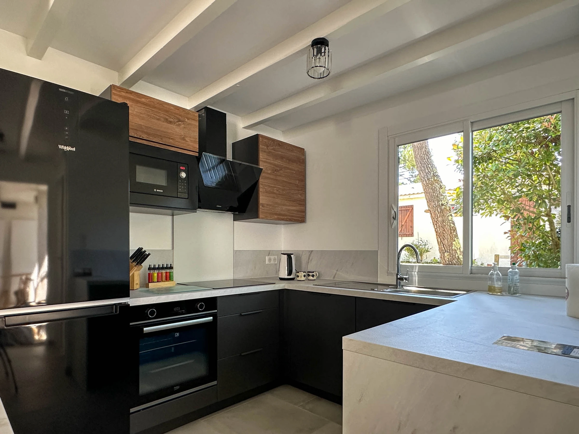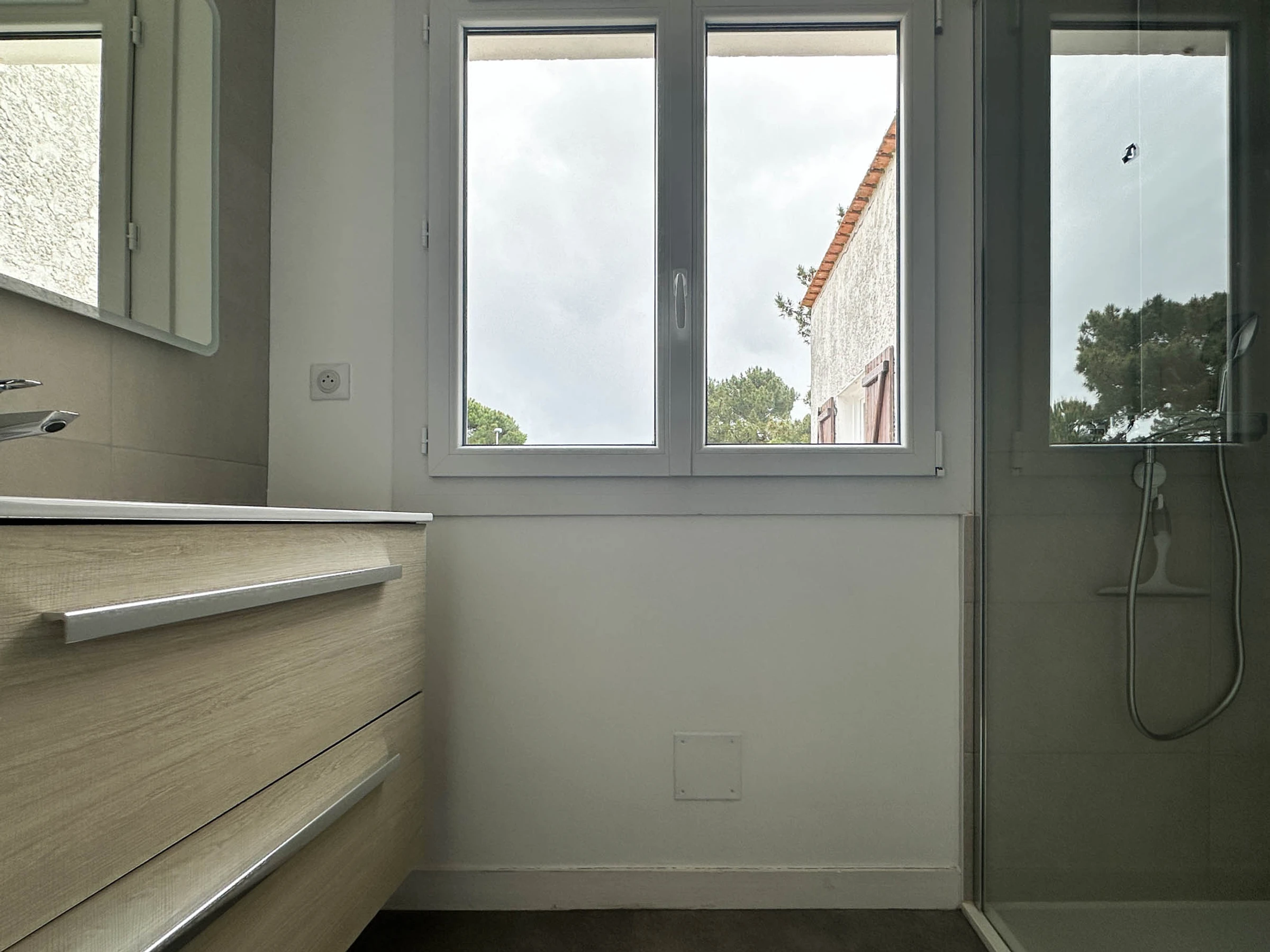 This fully renovated villa, ideally located halfway between the beach and the town center, is located in the Les Trémières family residence in La Palmyre. It offers 95 m² of living space and can accommodate up to 7 people. It includes: