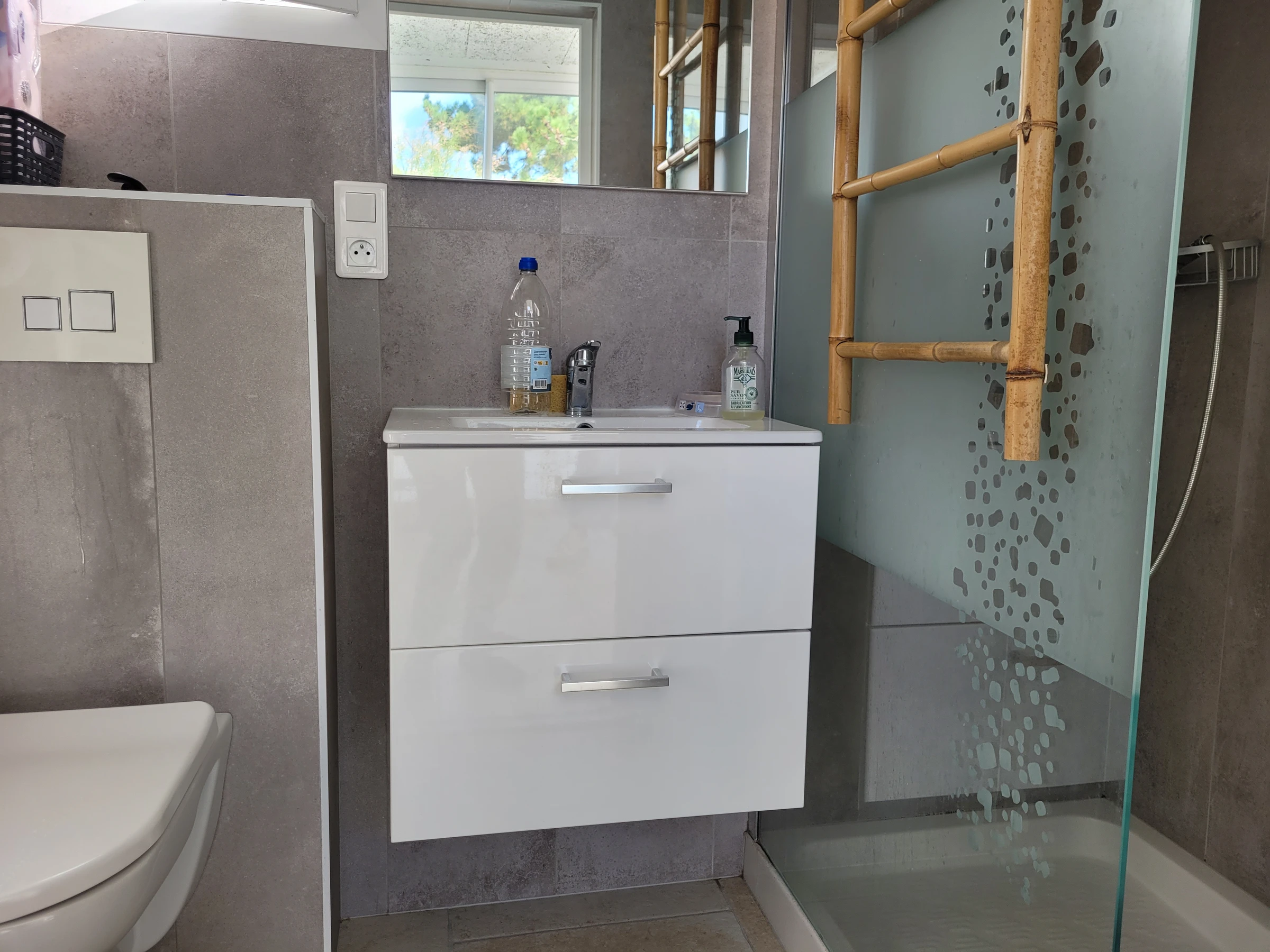 Upstairs: a bathroom with shower and VMC, separate toilet