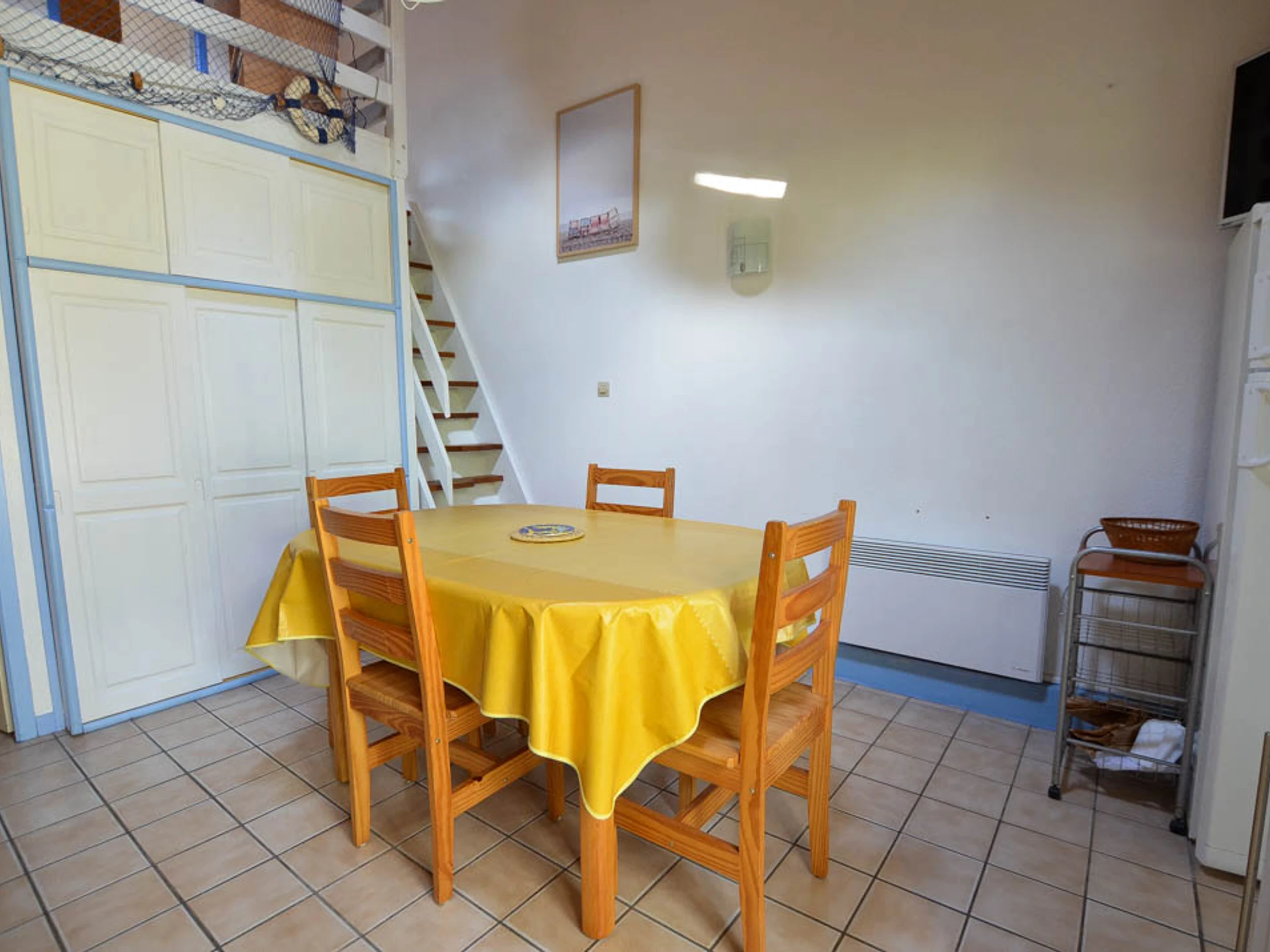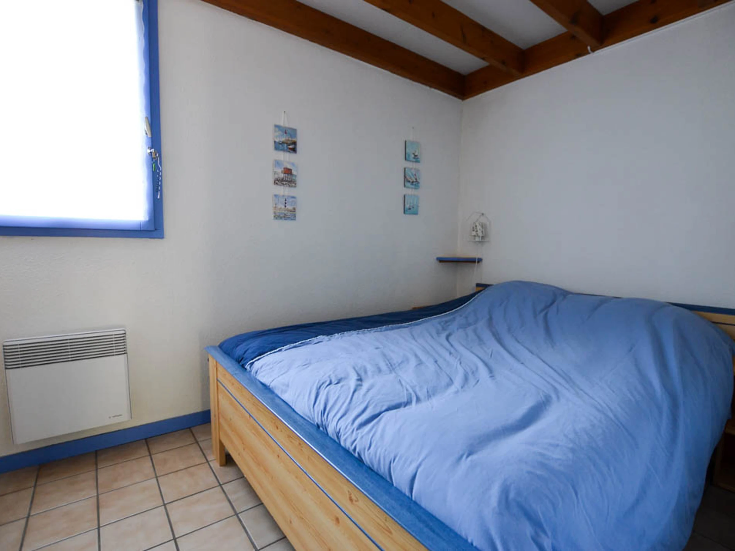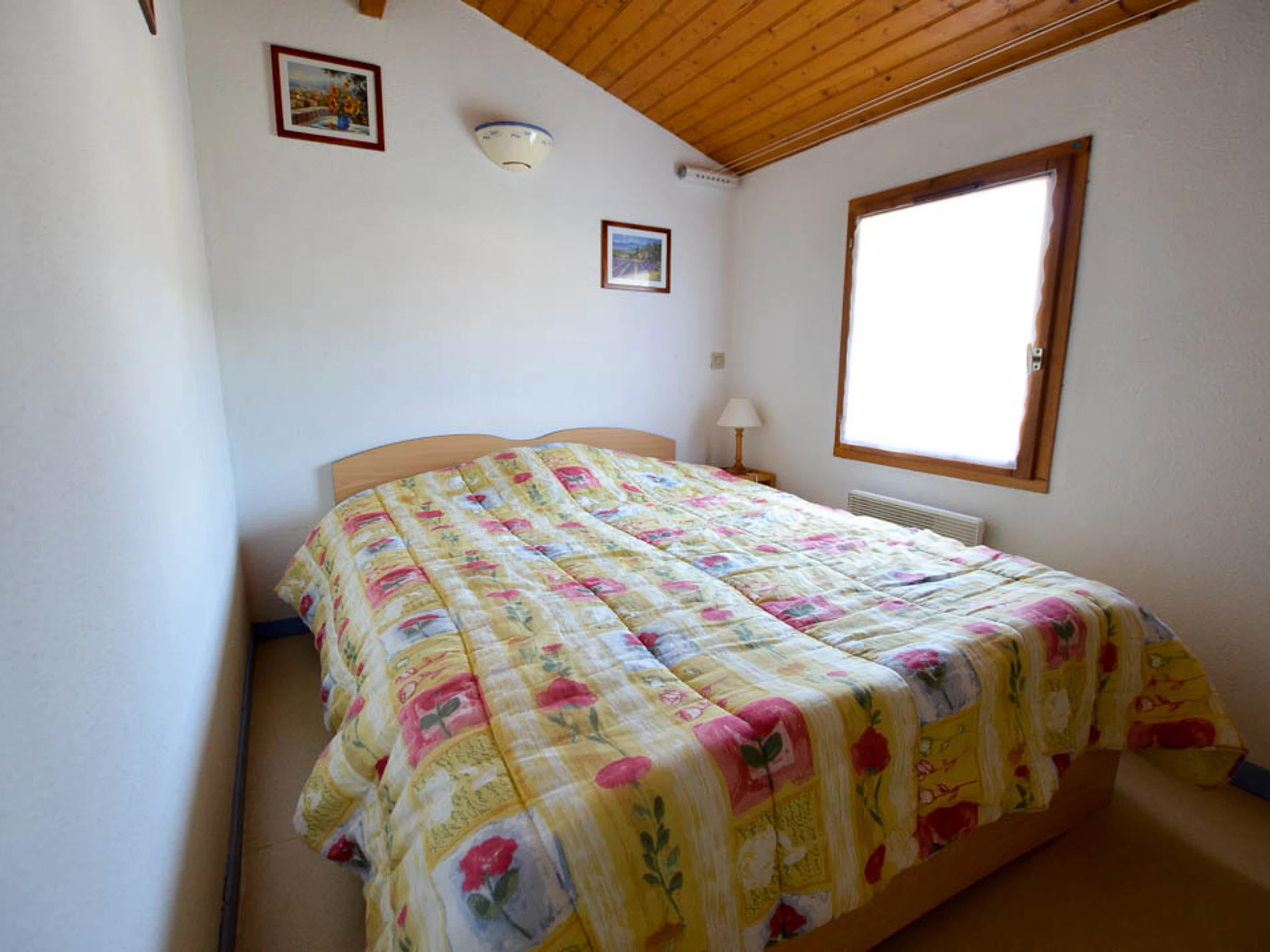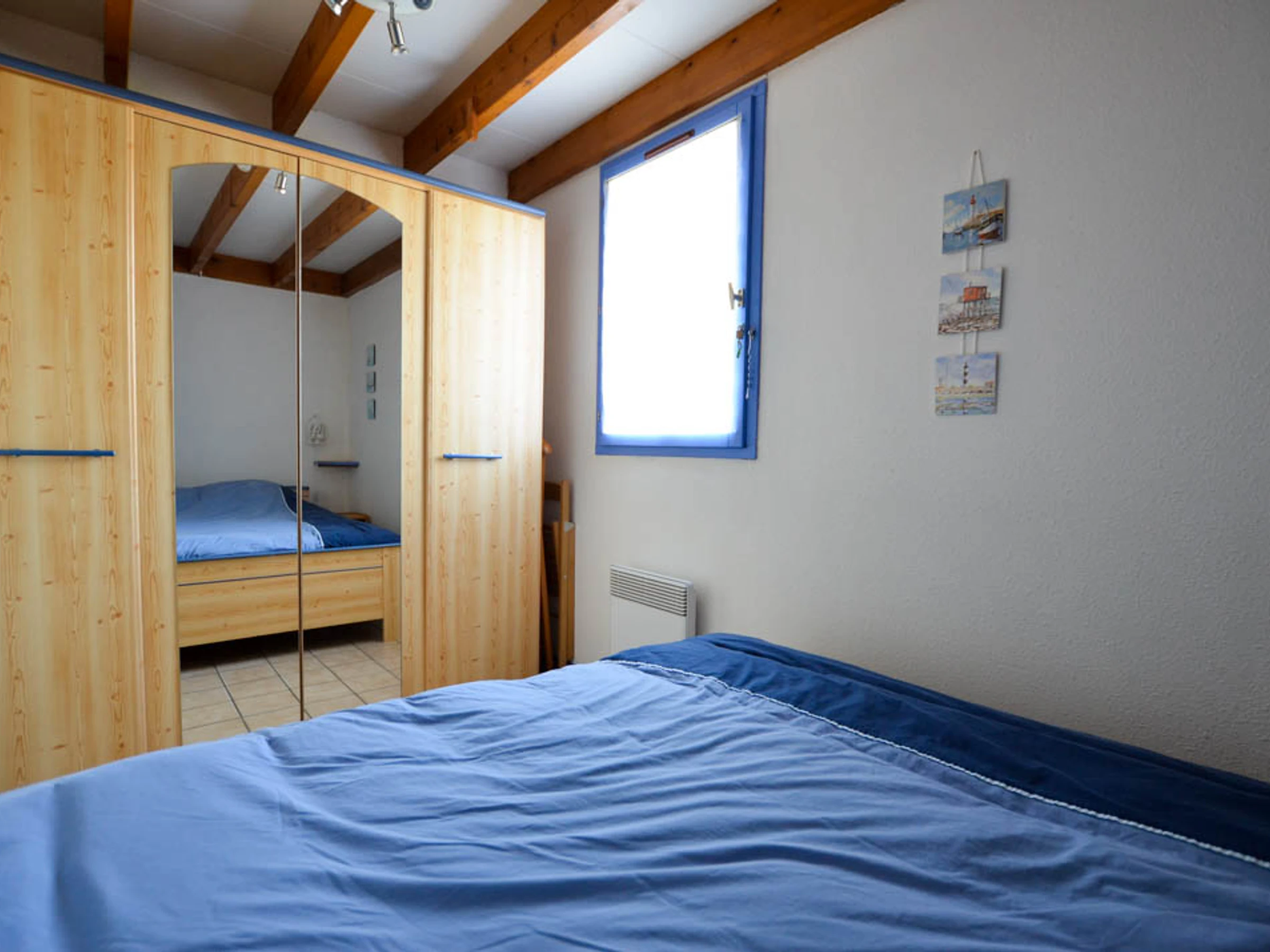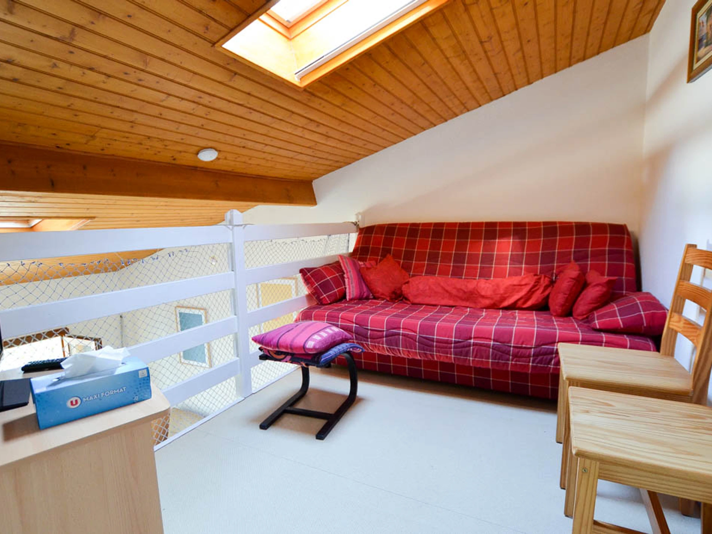 Upstairs: Mezzanine with TV area (skylight) - Bedroom with 1x140 bed (window)