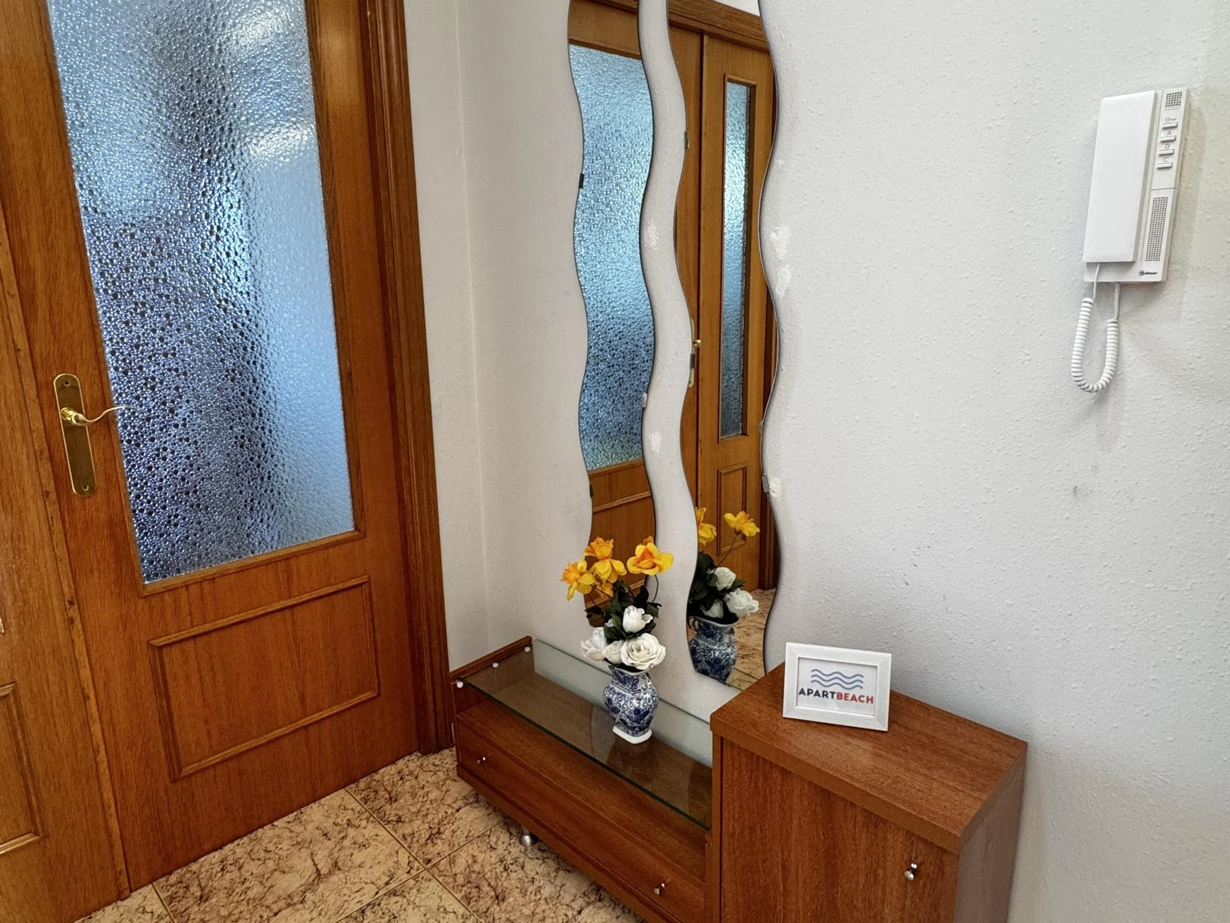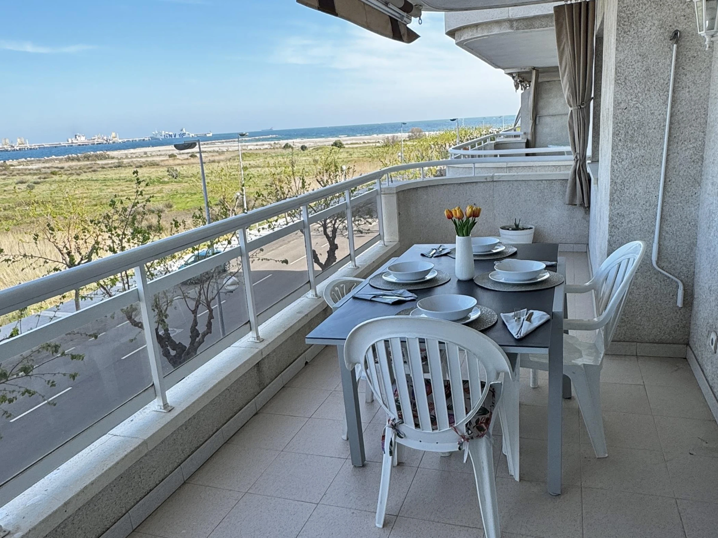 Beautiful beachfront apartment, ideal for your beach vacation. The apartment has two bedrooms, one with a double bed (for 2 people), and the other with two single beds, a fully equipped kitchen, and a living room with a sofa bed. From the living room, you can access a large terrace with a beautiful view of the beach.