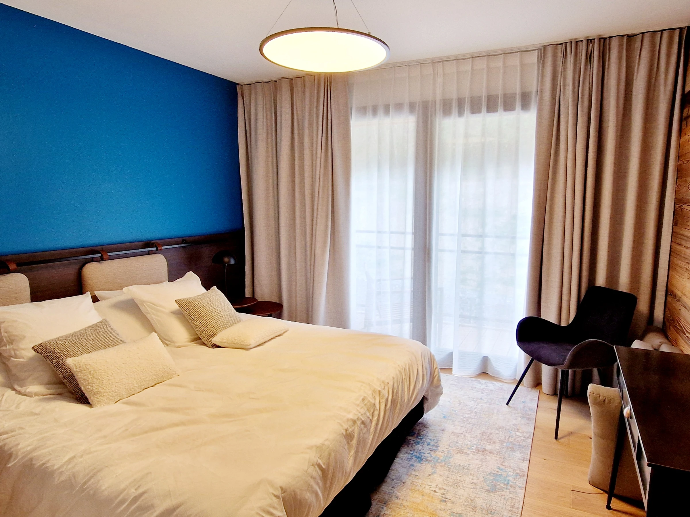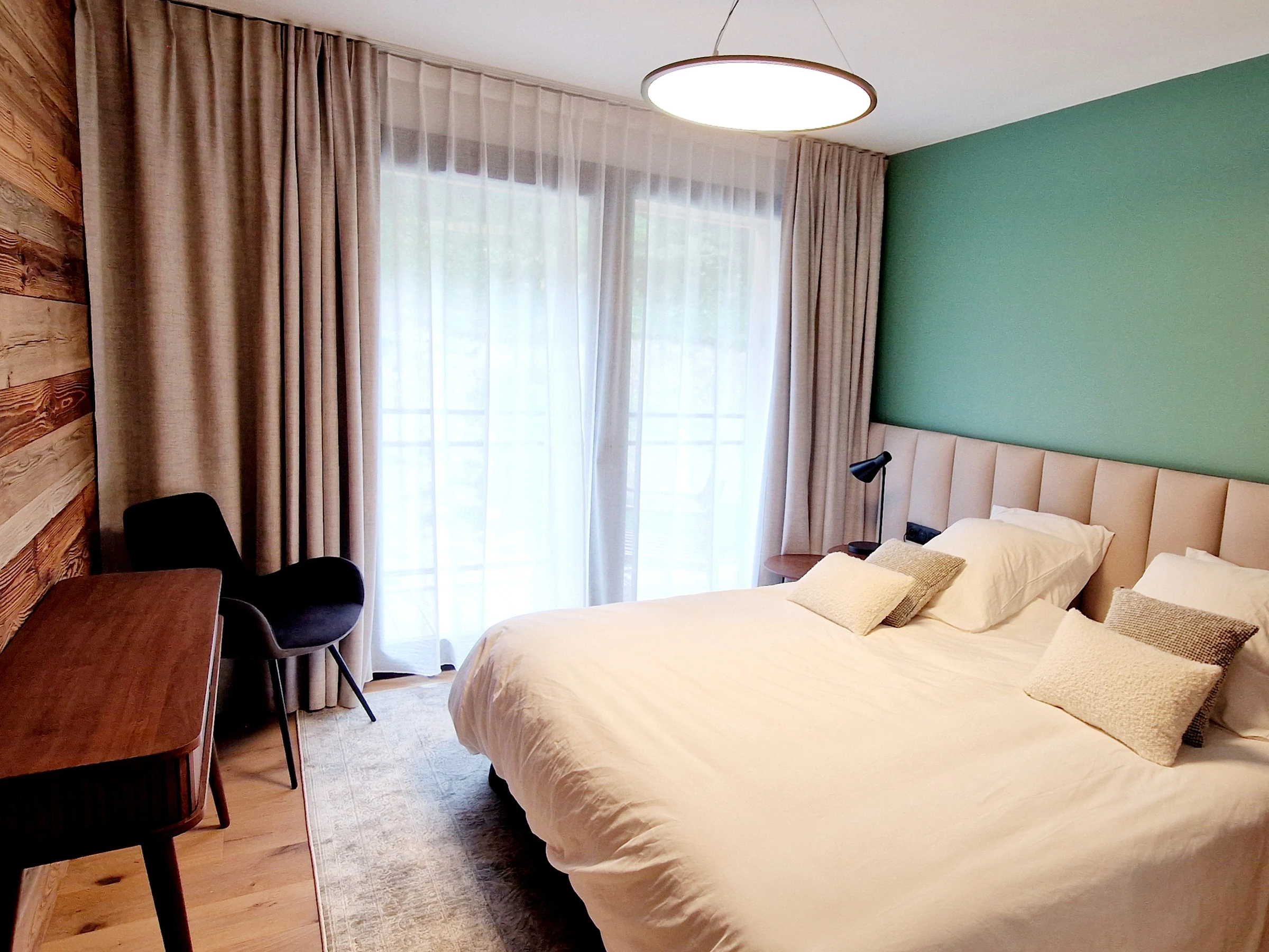 A Master Room with a 160cm bed, its private shower room and its independent WC, access to the terrace with a panoramic view of the mountains.