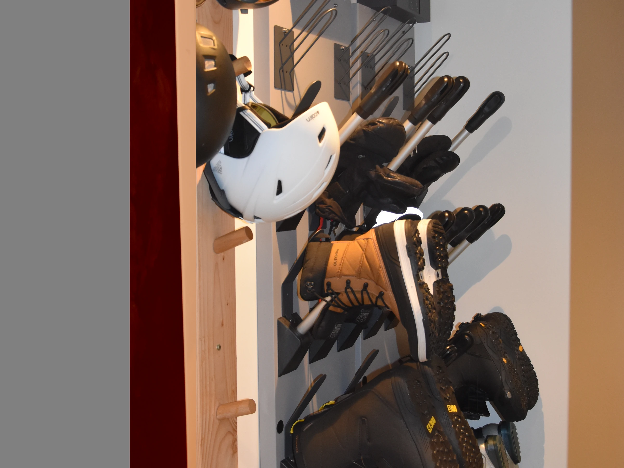 An entrance with a ski room including boot dryers and glove dryers for greater comfort.