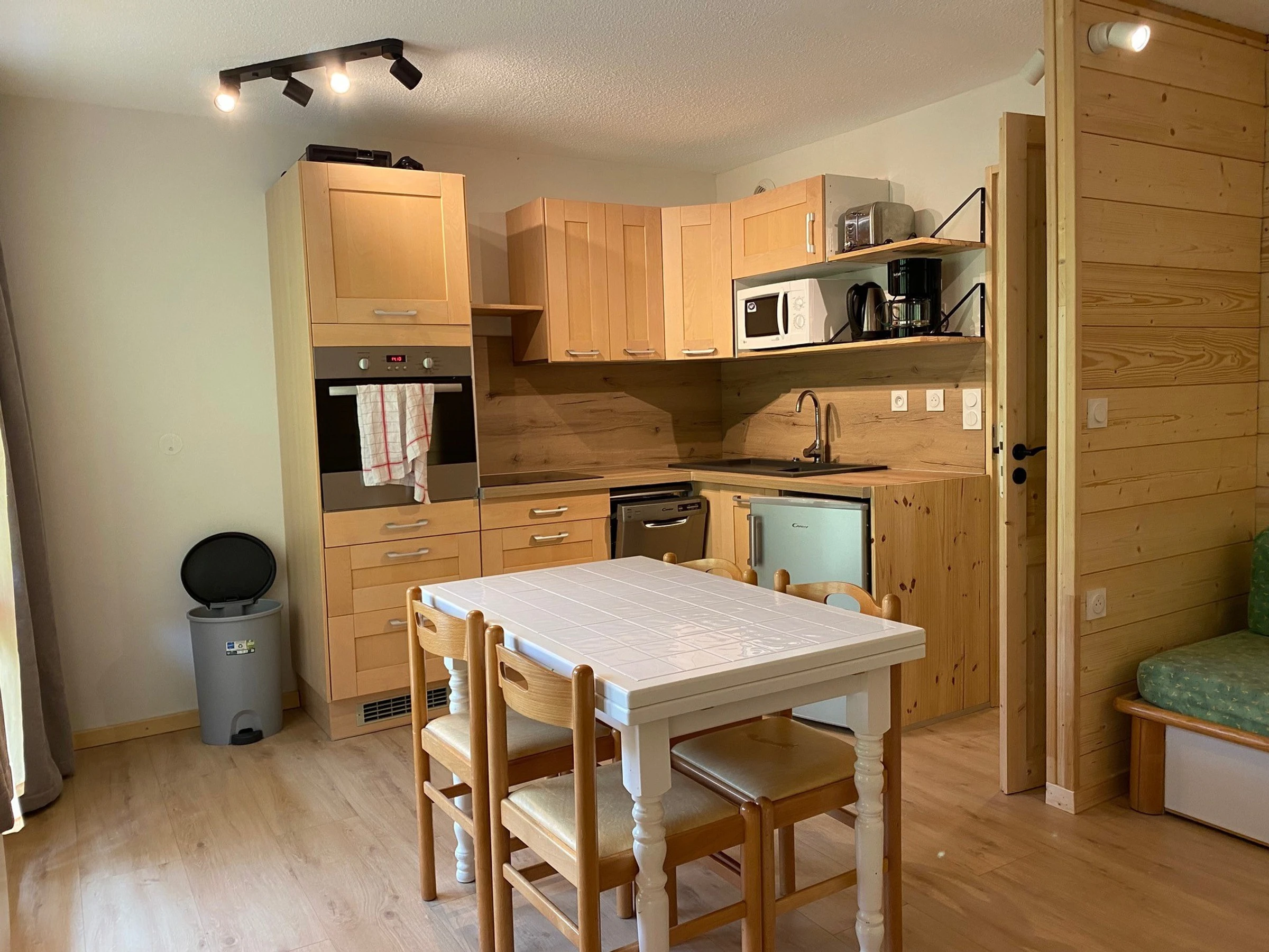 Located in the 3DE residence in Les Coches, 200m from the shops and slopes. A 25m2 studio cabin for 4 people on the ground floor with an enclosed cabin and a small terrace.