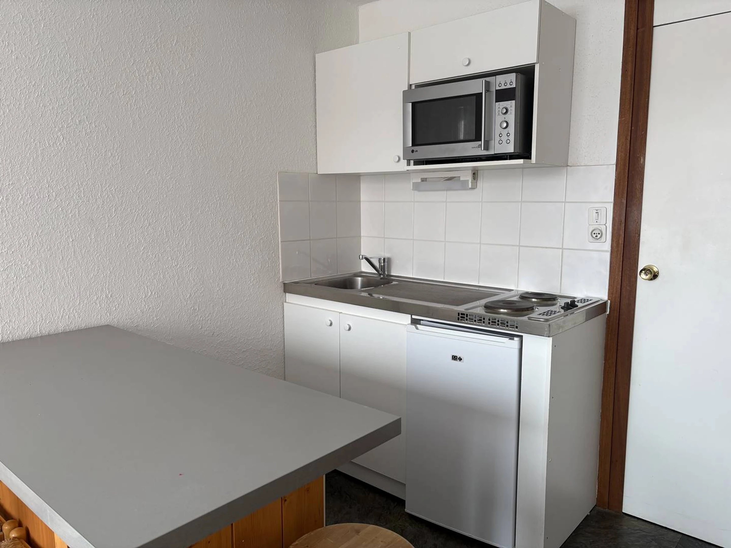 PLAGNE CENTRE – Residence Mont Blanc. Studio apartment, facing West, with a view of the slopes and the resort. The residence is ideally located close to the slopes and ski lift. You'll have a direct access through the commercial gallery where you' ll find all the necessary services: shops, restaurants, ski lift.