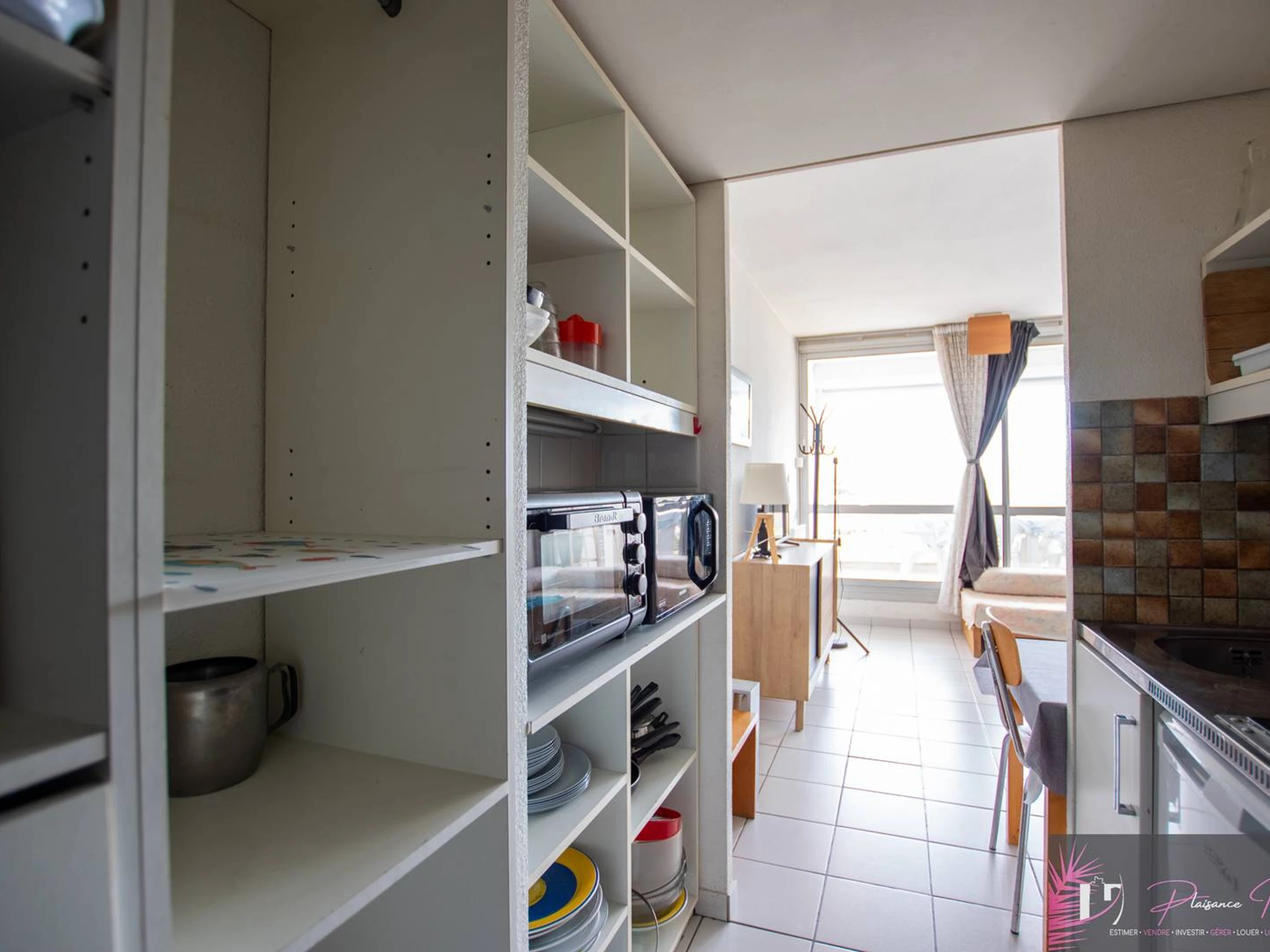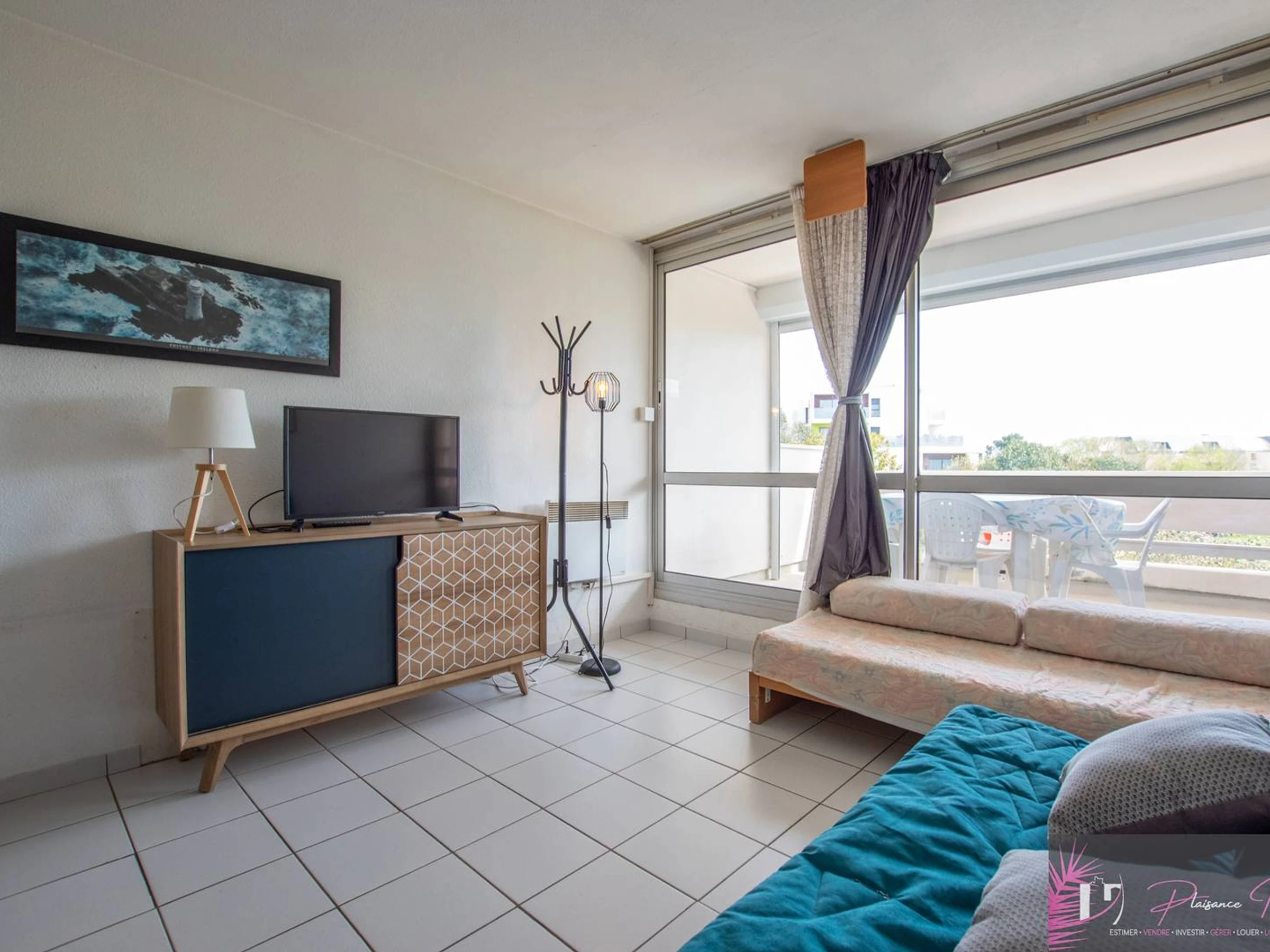 Studio equipped for 3 people on the 3rd floor of a residence on the Port of Plaisance. Balcony of 7m², facing South. It is about 200 m from the beach, with small shops in front of the residence.