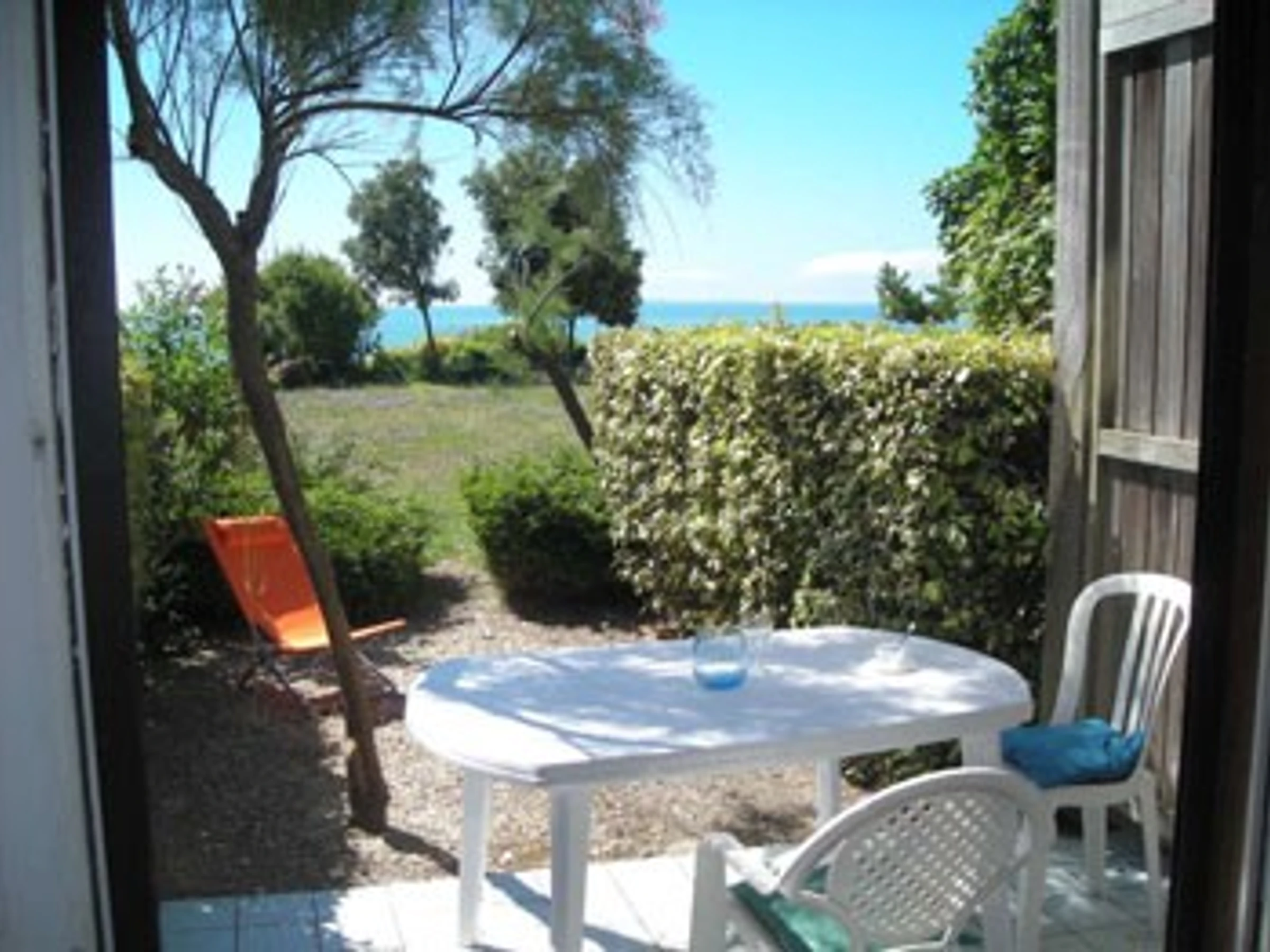 Beautiful studio on the ground floor facing south with terrace - garden furniture - facing the sea and the islands. Near Beach and Port of Plaisance.