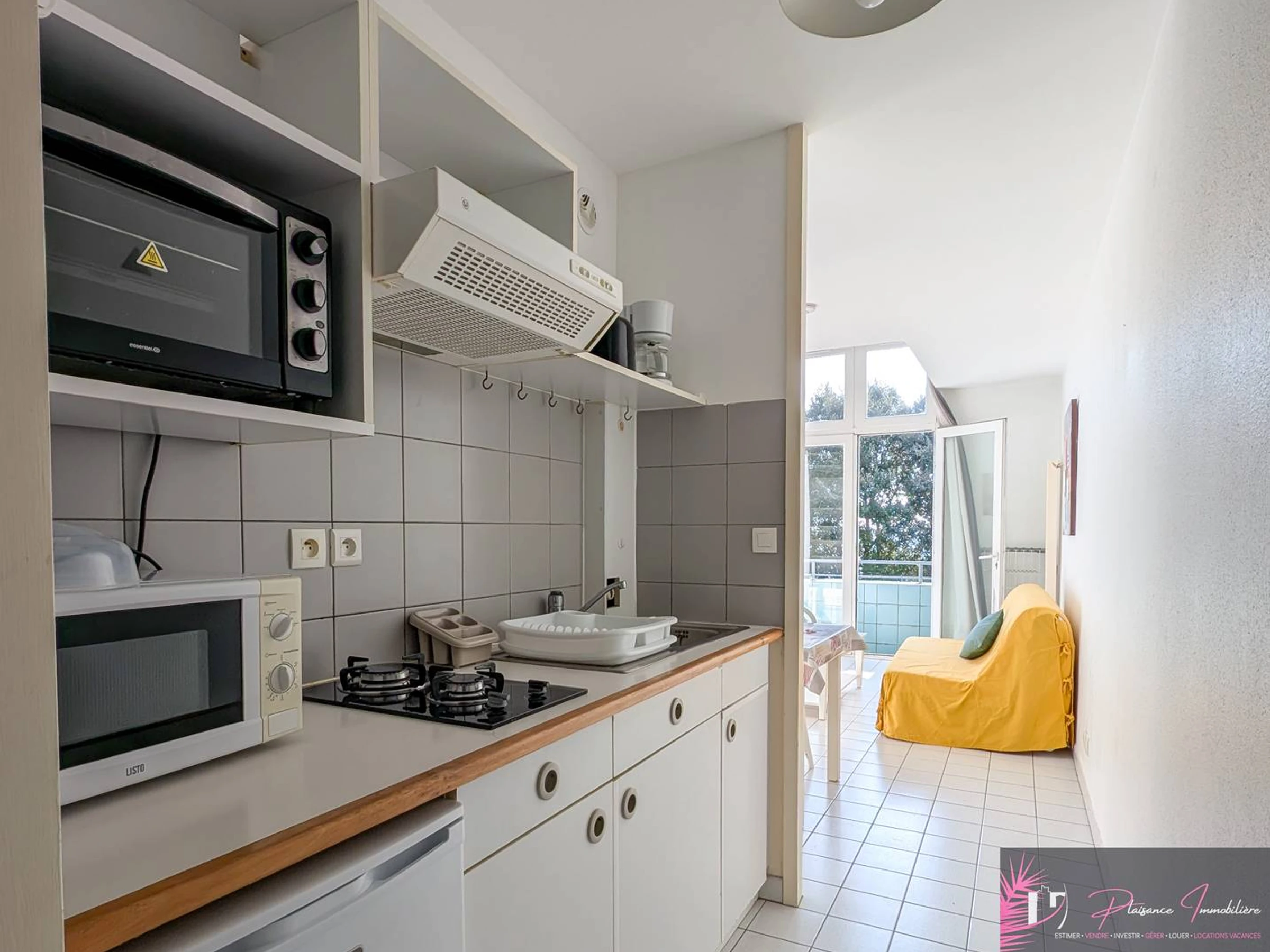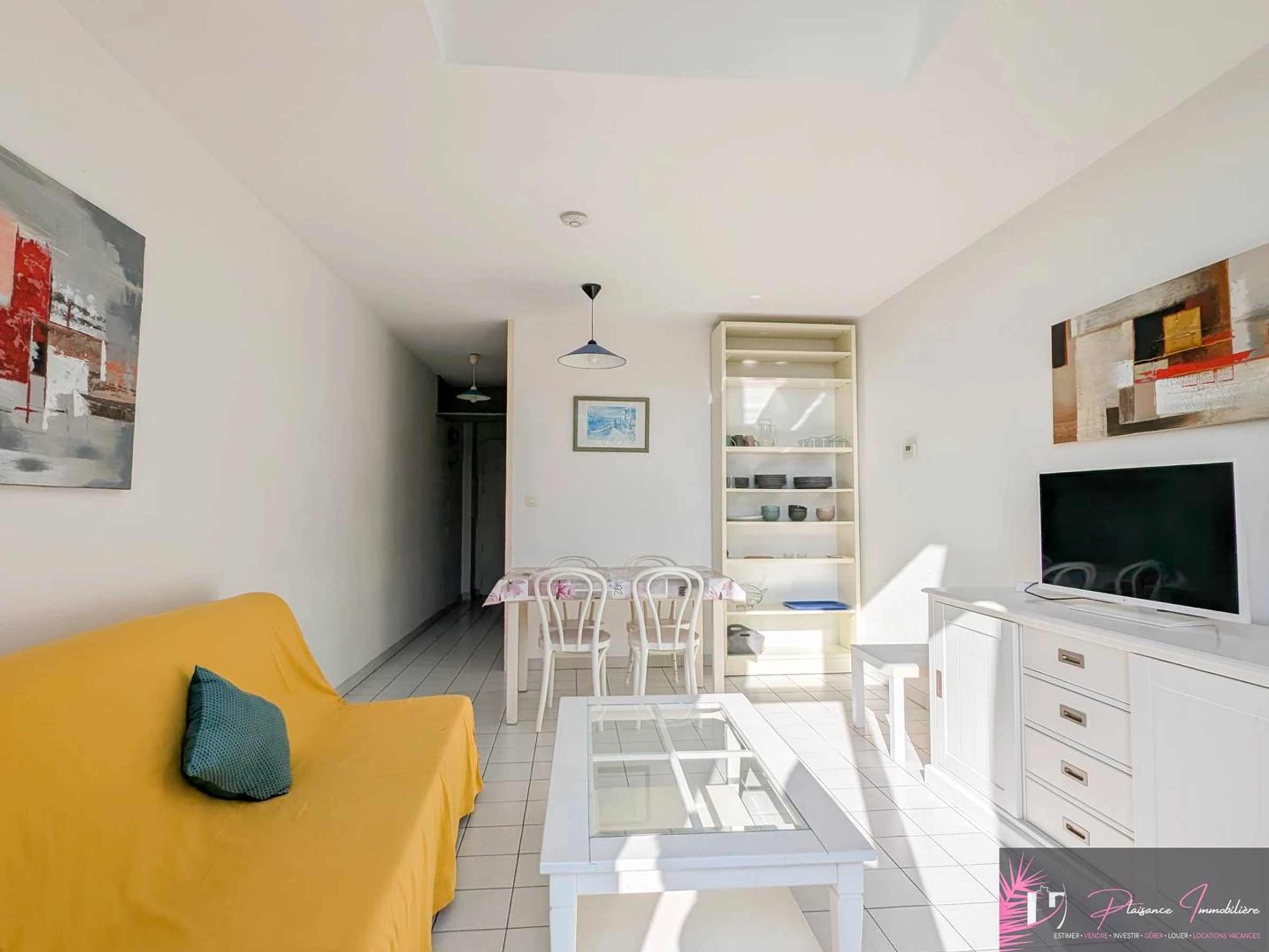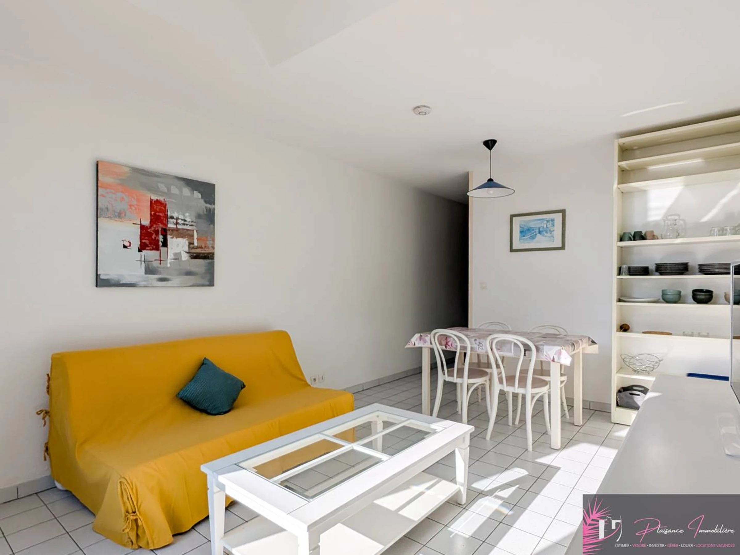 In a small residence on the seafront and 200 meters from the marina - Beautiful studio on the 1st floor facing south - facing the sea and the islands.Entrance, sleeping area with bunk beds, living room with a 2-seater sofa bed, equipped kitchenette (oven, fridge, 2 gas burners), bathroom/wc. Private parking, small shops nearby, about 50 m. Access to the beach can be done by a small coastal path.