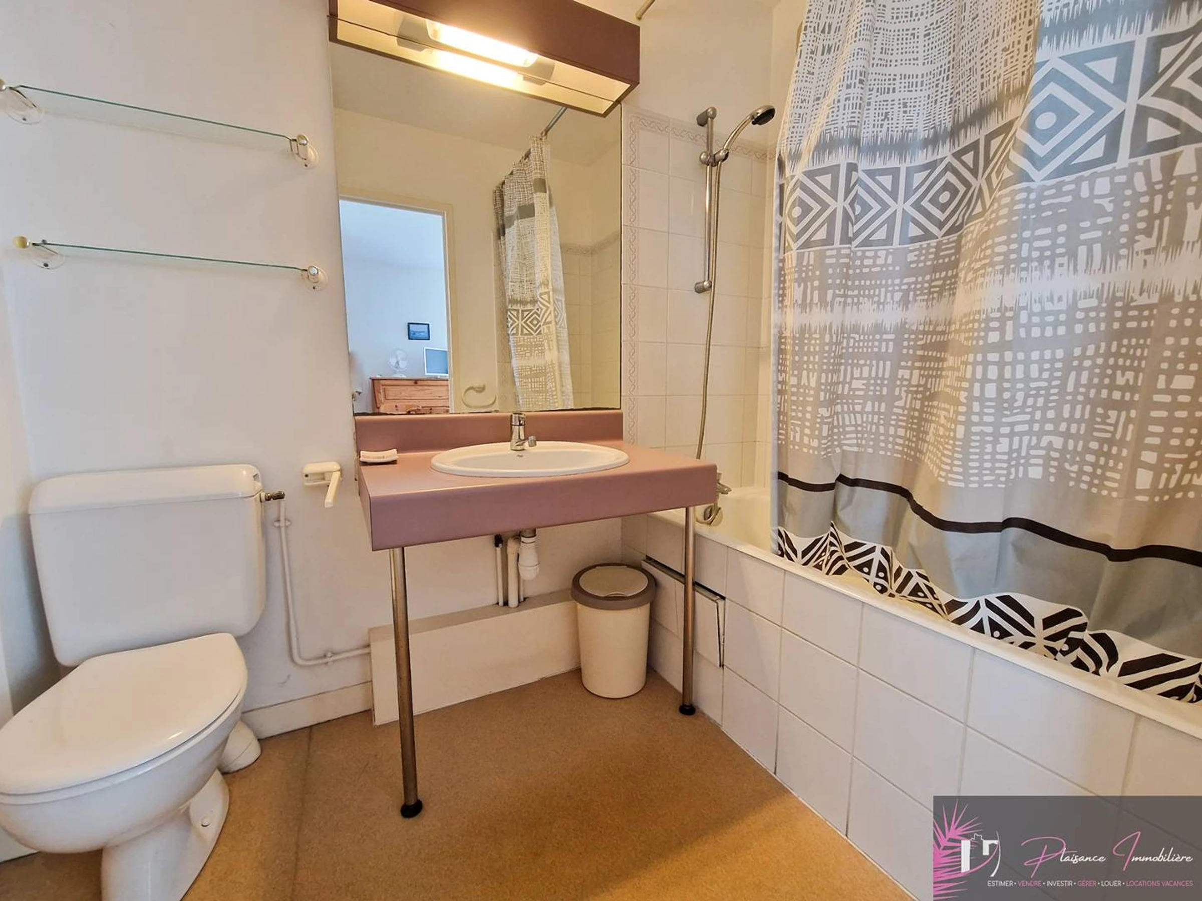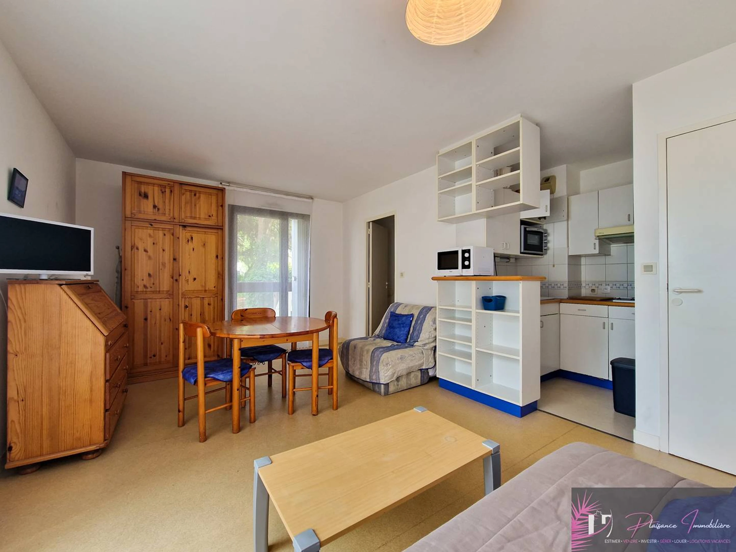Equipped for three people (a convertible 2 pers and a convertible 1 pers.). Entrance, living room, kitchenette (2 hotplates, oven, fridge), bathroom/wc. Beach located less than 500 m. Car park nearby. The center of the Old Town is about 2 km away, accessible by a pleasant walk along the Port de Plaisance or by a sea bus which will take you for a short sea trip and drop you off between the 2 Towers.