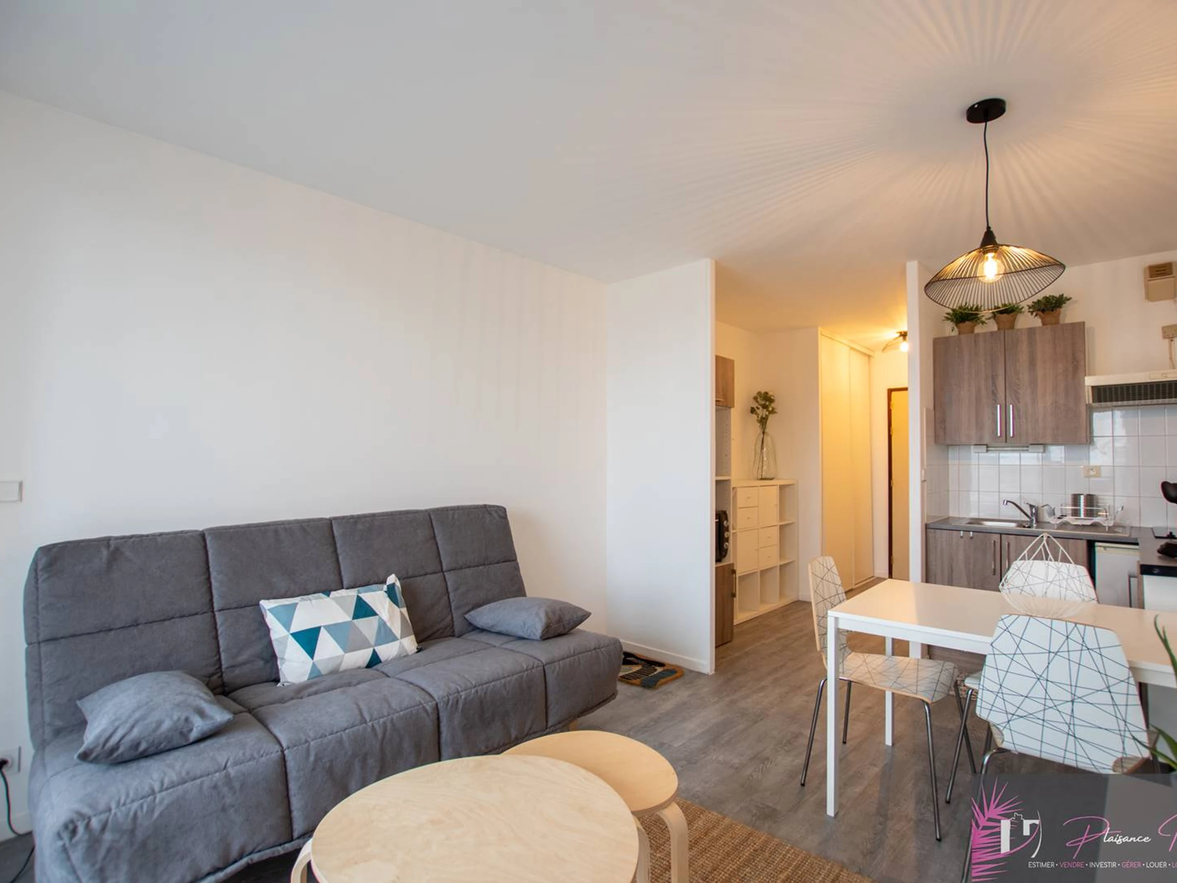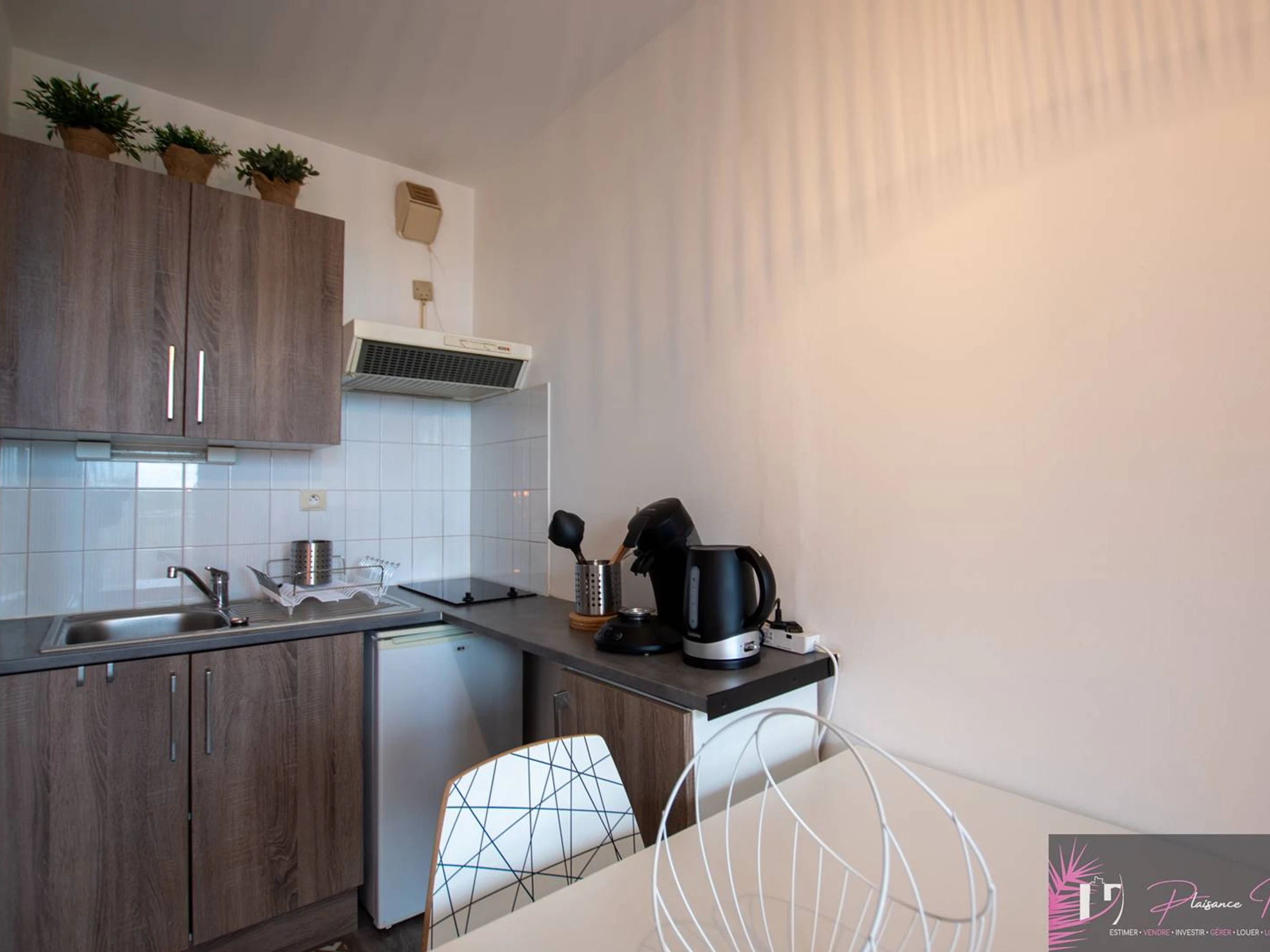 For rent a nice tastefully renovated studio in a residence literally at the foot of the beach. Entrance, living room (BZ for 2 people) kitchenette (oven, microwave, sink, fridge, 2 hotplates), bathroom (bath, washbasin) with WC, balcony with dining area.