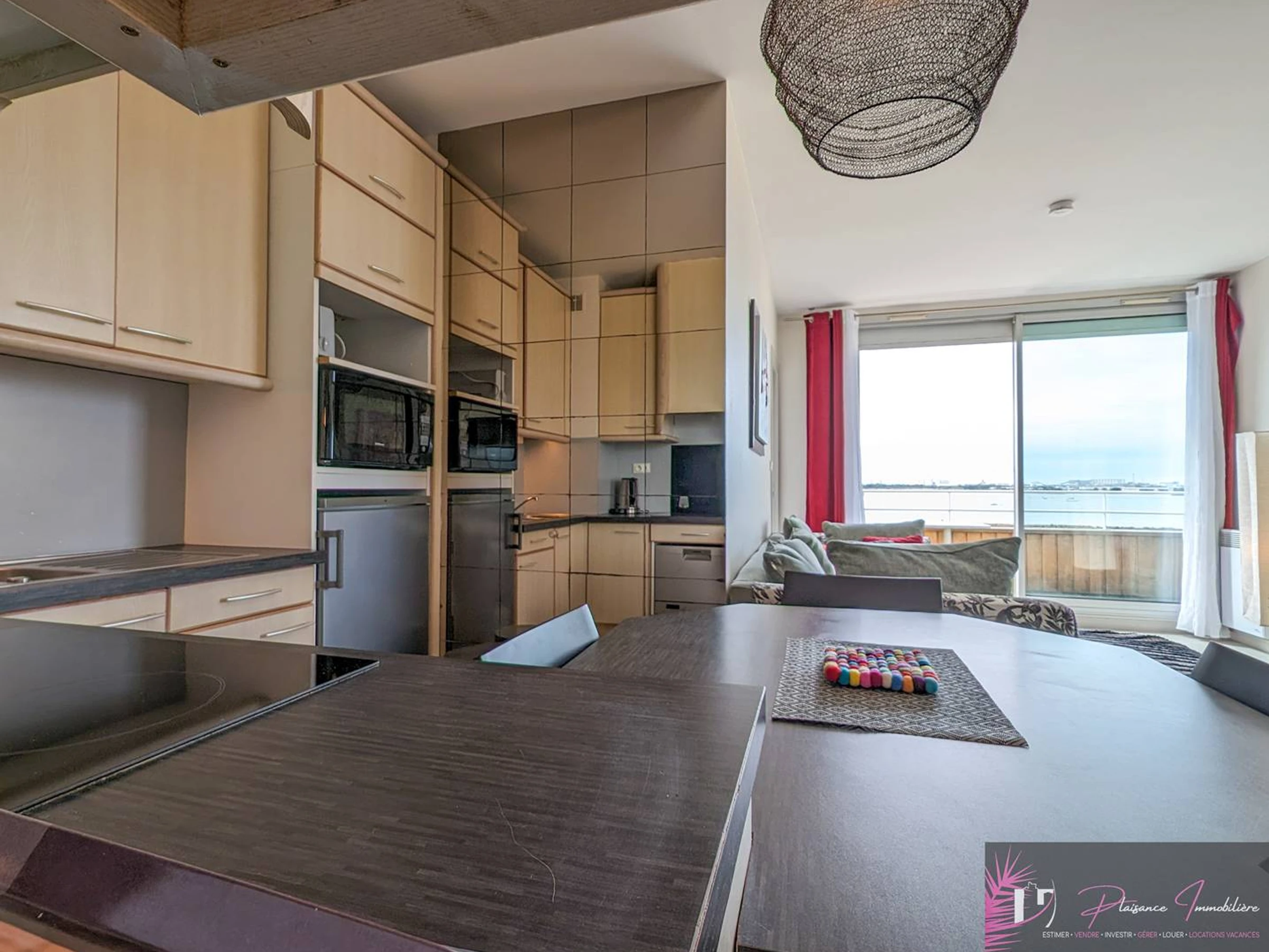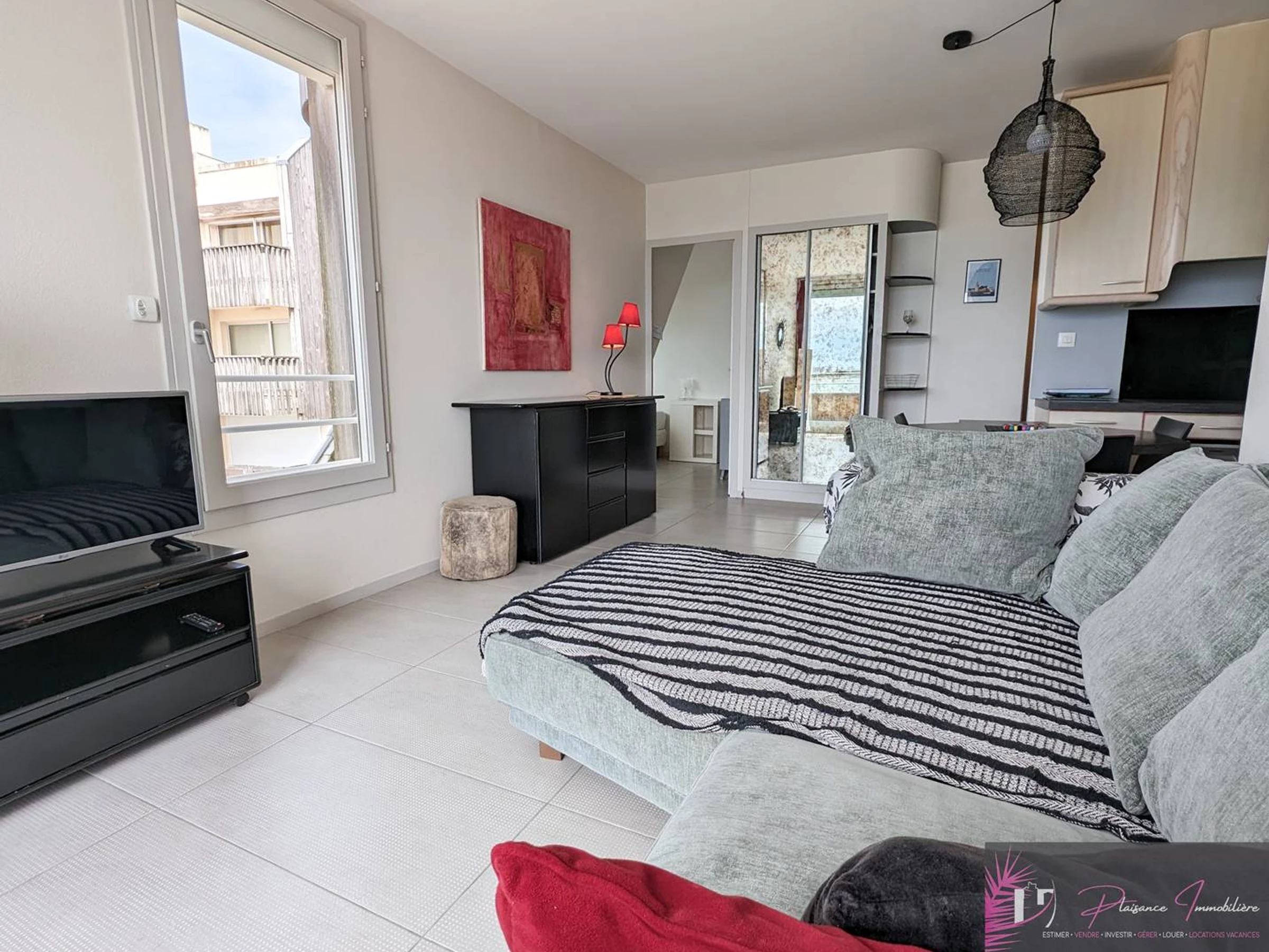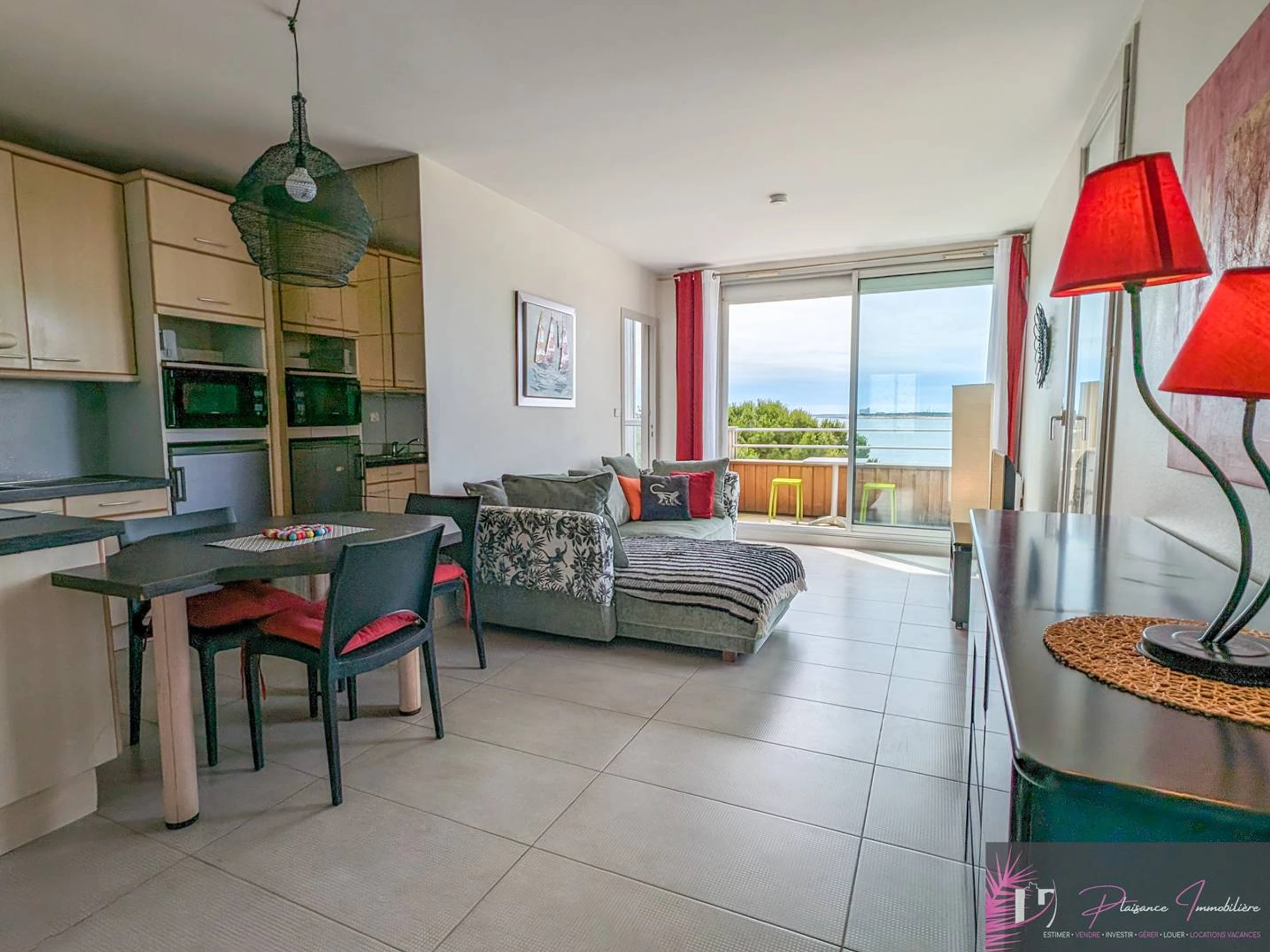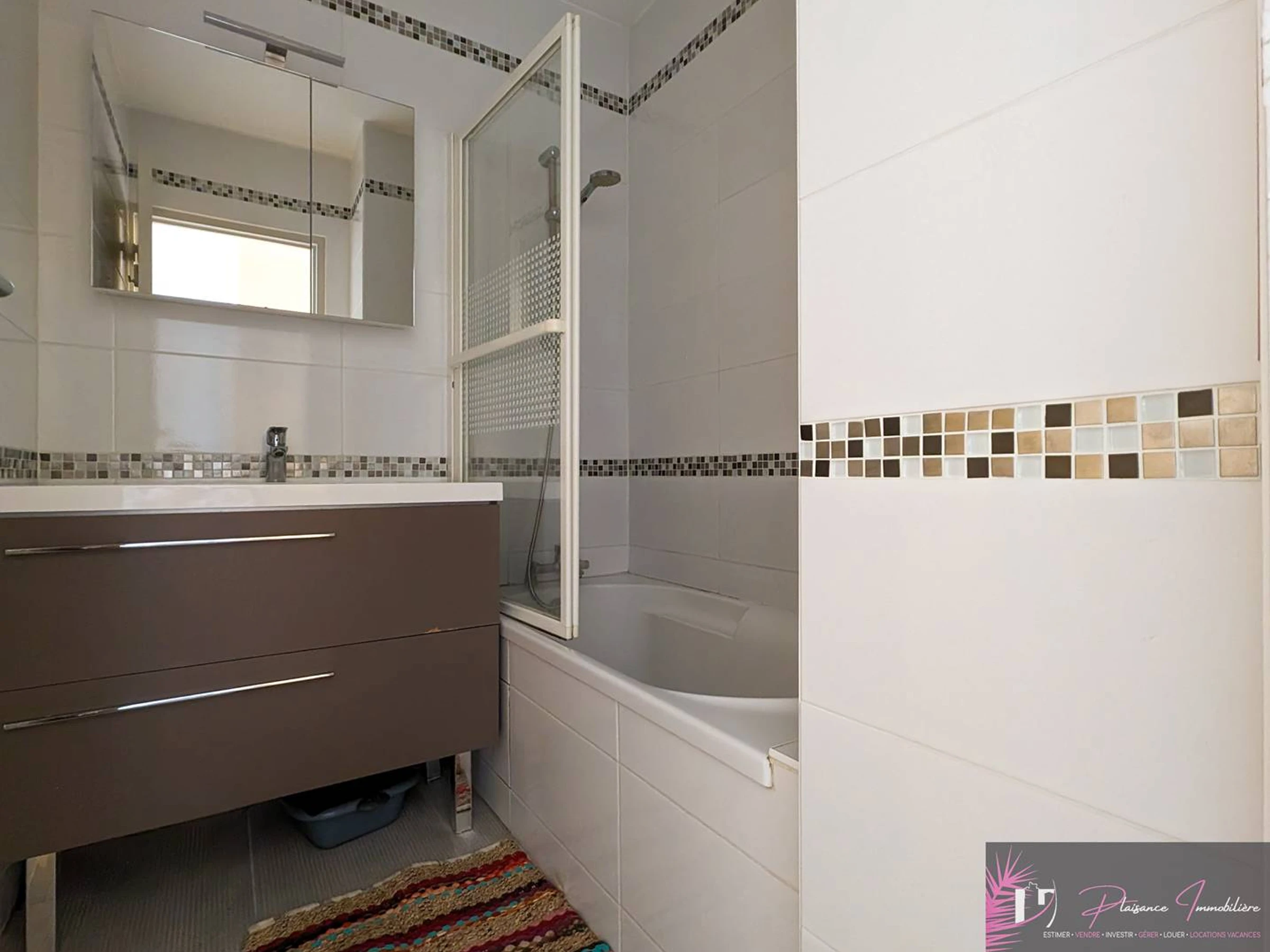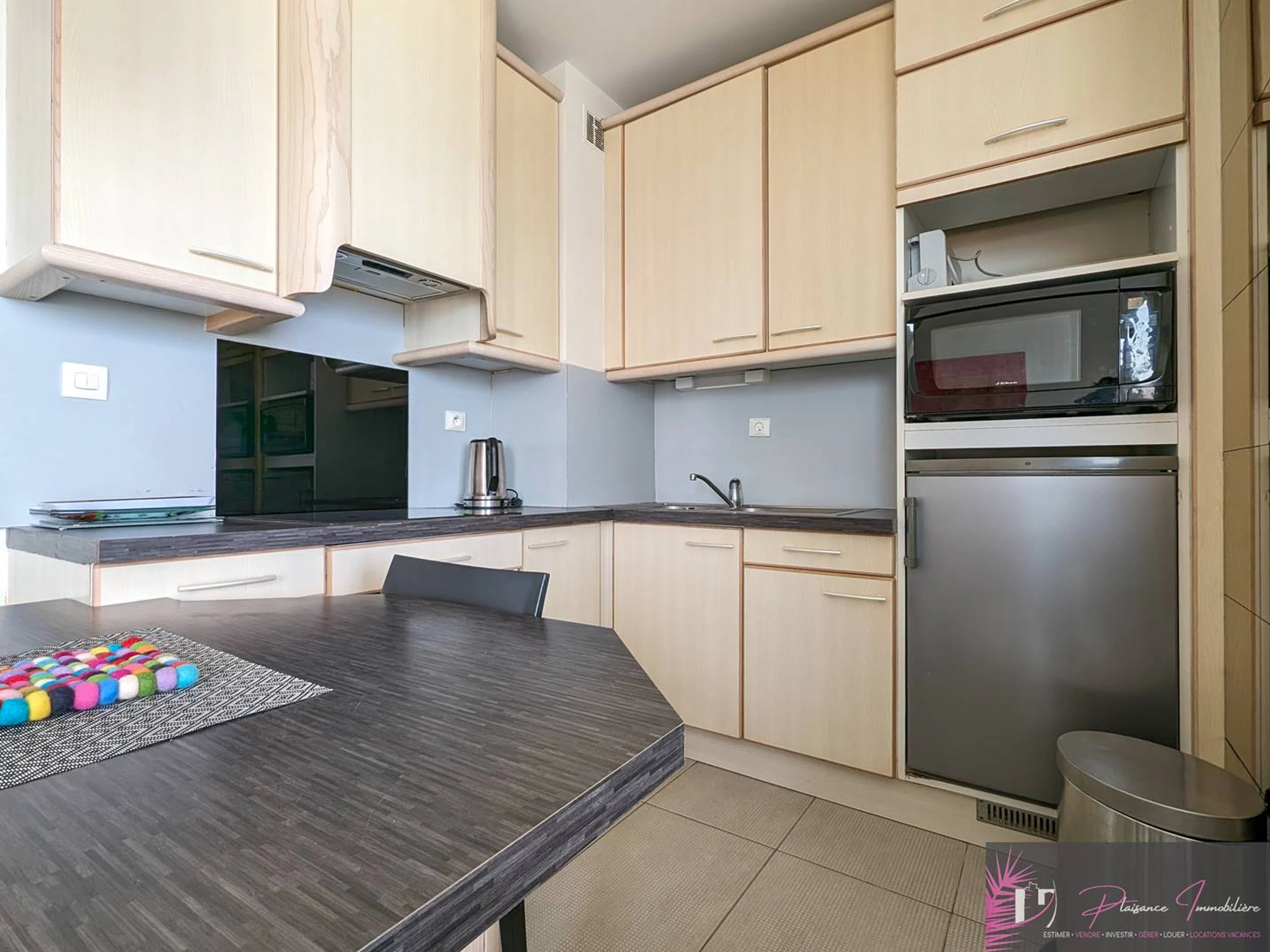 Very pleasant type 2 bis apartment with a beautiful sea and beach view - South-facing balcony - Living room with non-convertible sofa, television, dining area - Fitted and equipped kitchenette with 4 ceramic hobs, combined oven/ microwave, fridge- 2 bedrooms each with 1 bed 190/140.