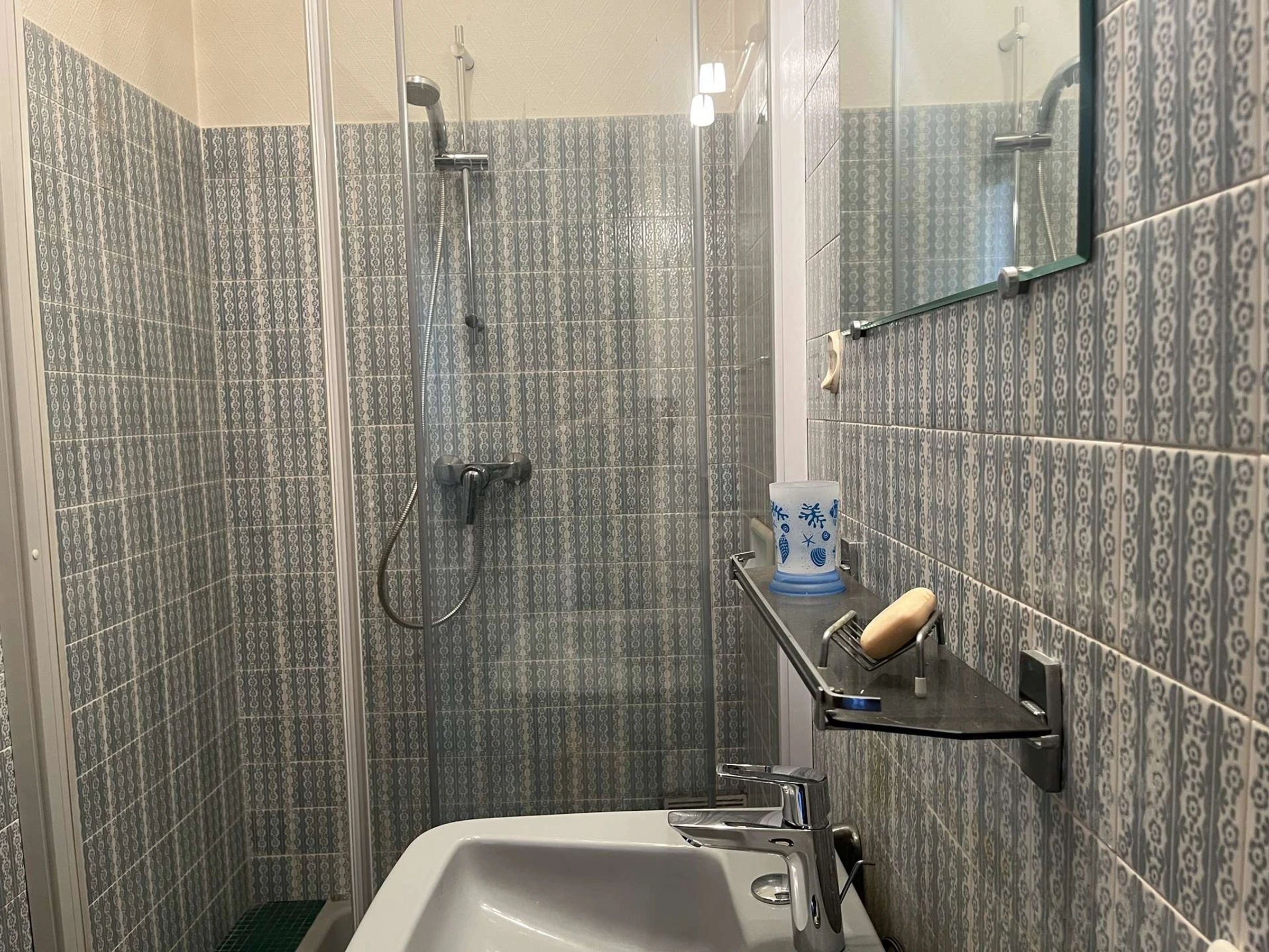 Situé au premier étage d'un immeuble sécurisé et équipé d'un ascenseur, il se compose d'une entrée, d'un grand séjour lumineux avec canapé, fauteuils et télévision. Vous pourrez trouver une cuisine fermée ainsi que deux points d'eau, une salle de bain et une salle d'eau.