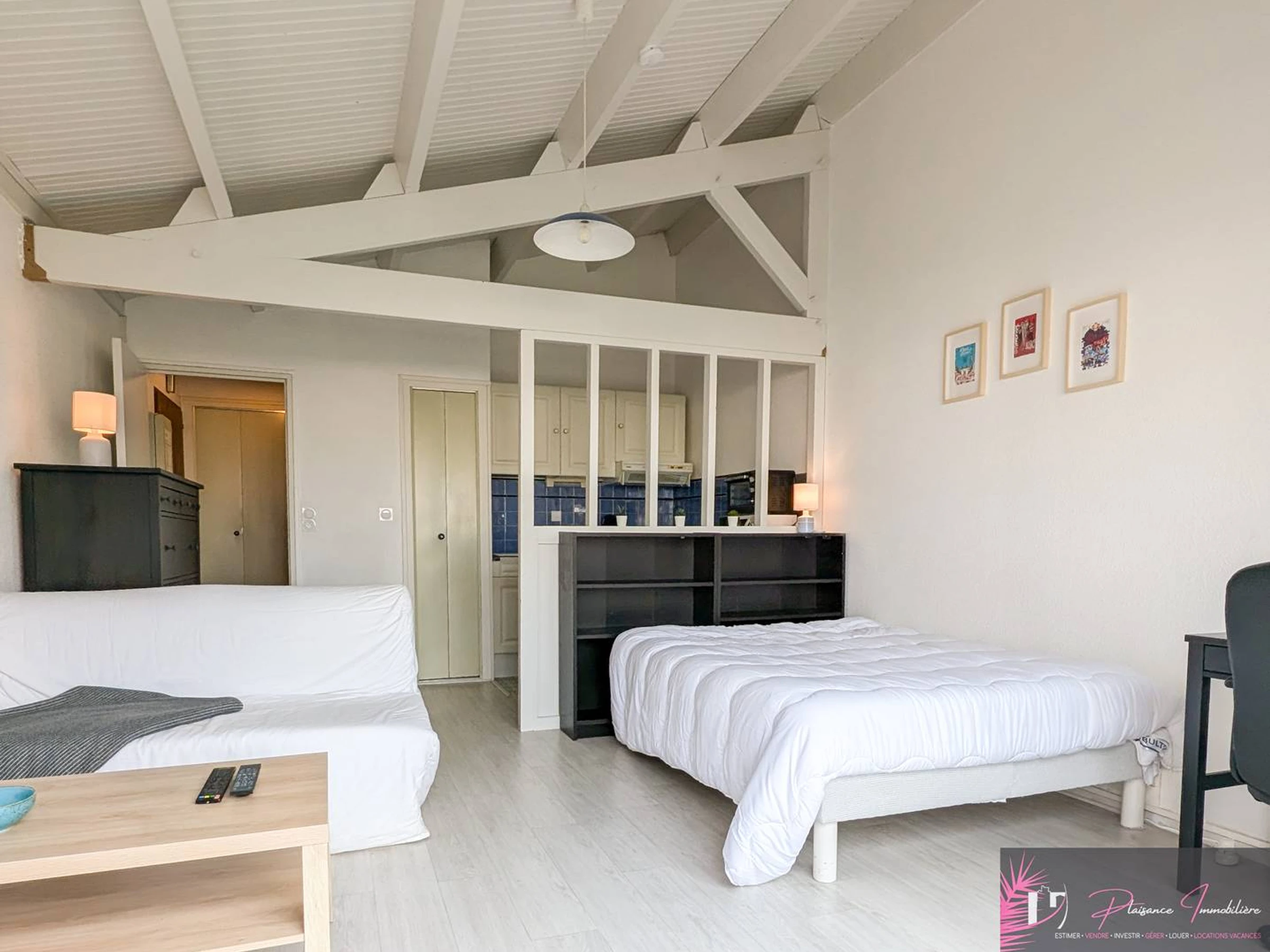Located on the 1st and top floor of a residence with a swimming pool, come and spend a stay in this apartment featuring an entrance hall, a living room with a kitchen (oven, microwave, washing machine, electric stove, refrigerator) opening onto the living room with a double bed and a sofa bed, a bathroom, and a balcony. This apartment is perfect for a pleasant vacation!
