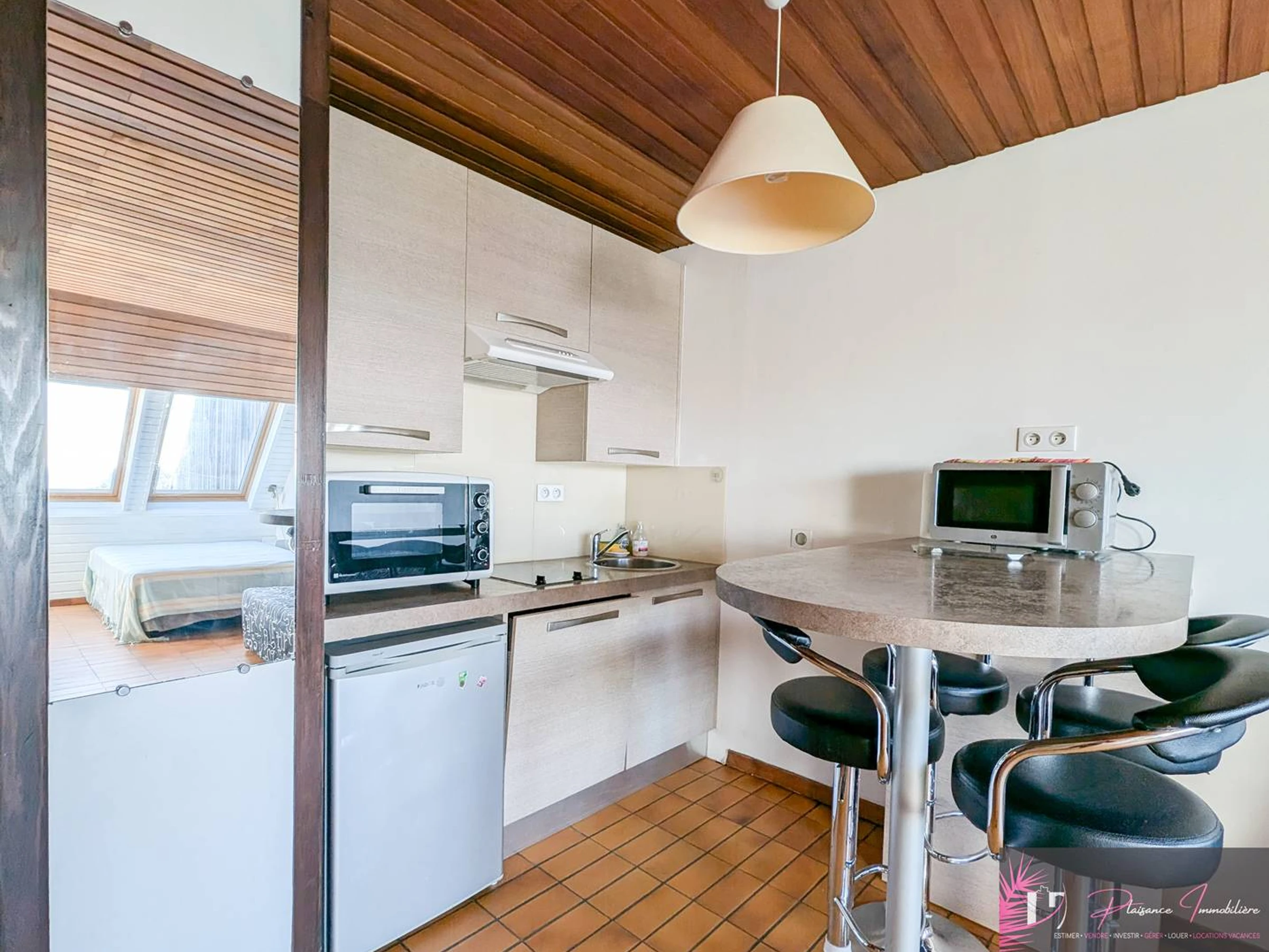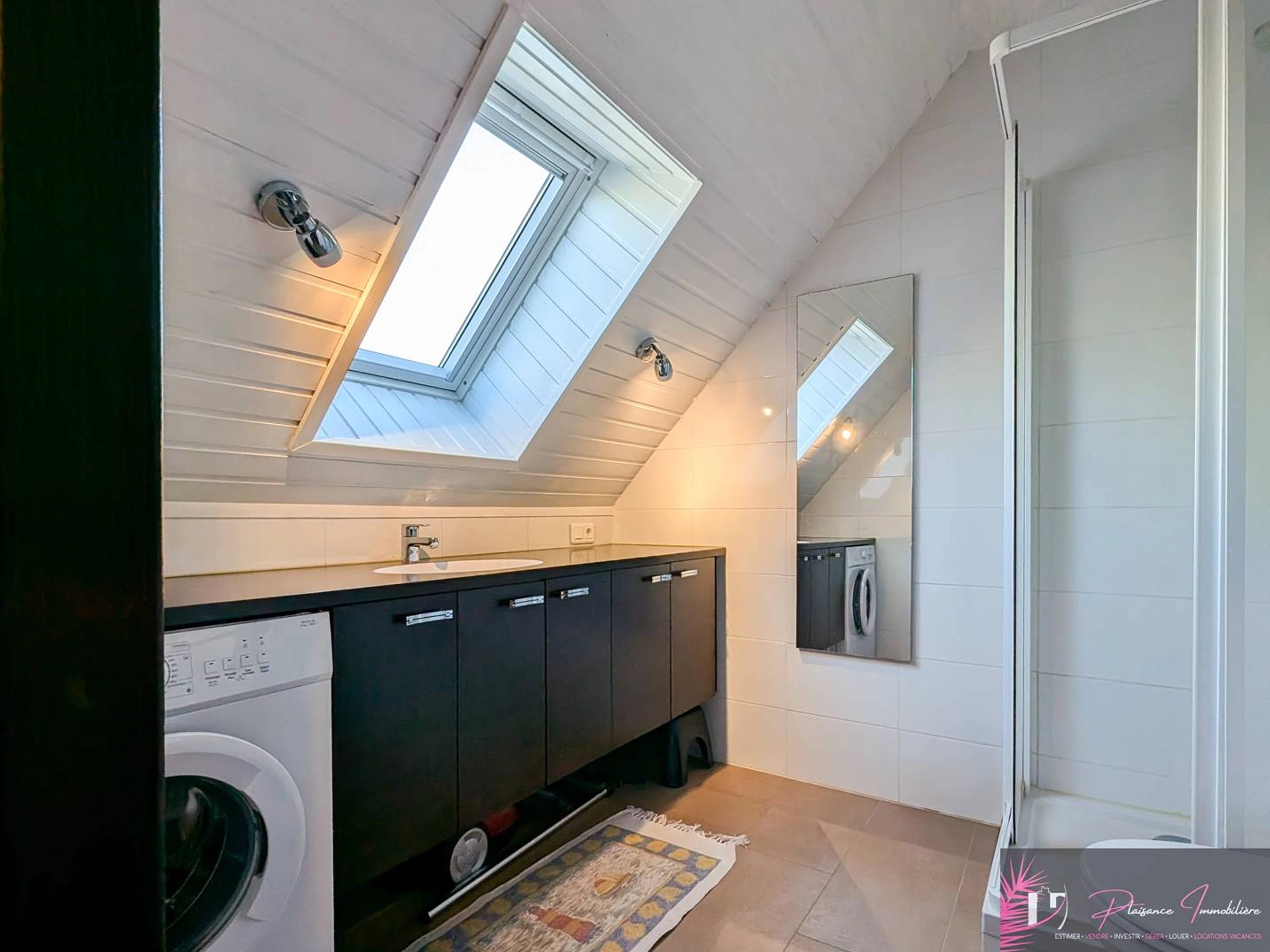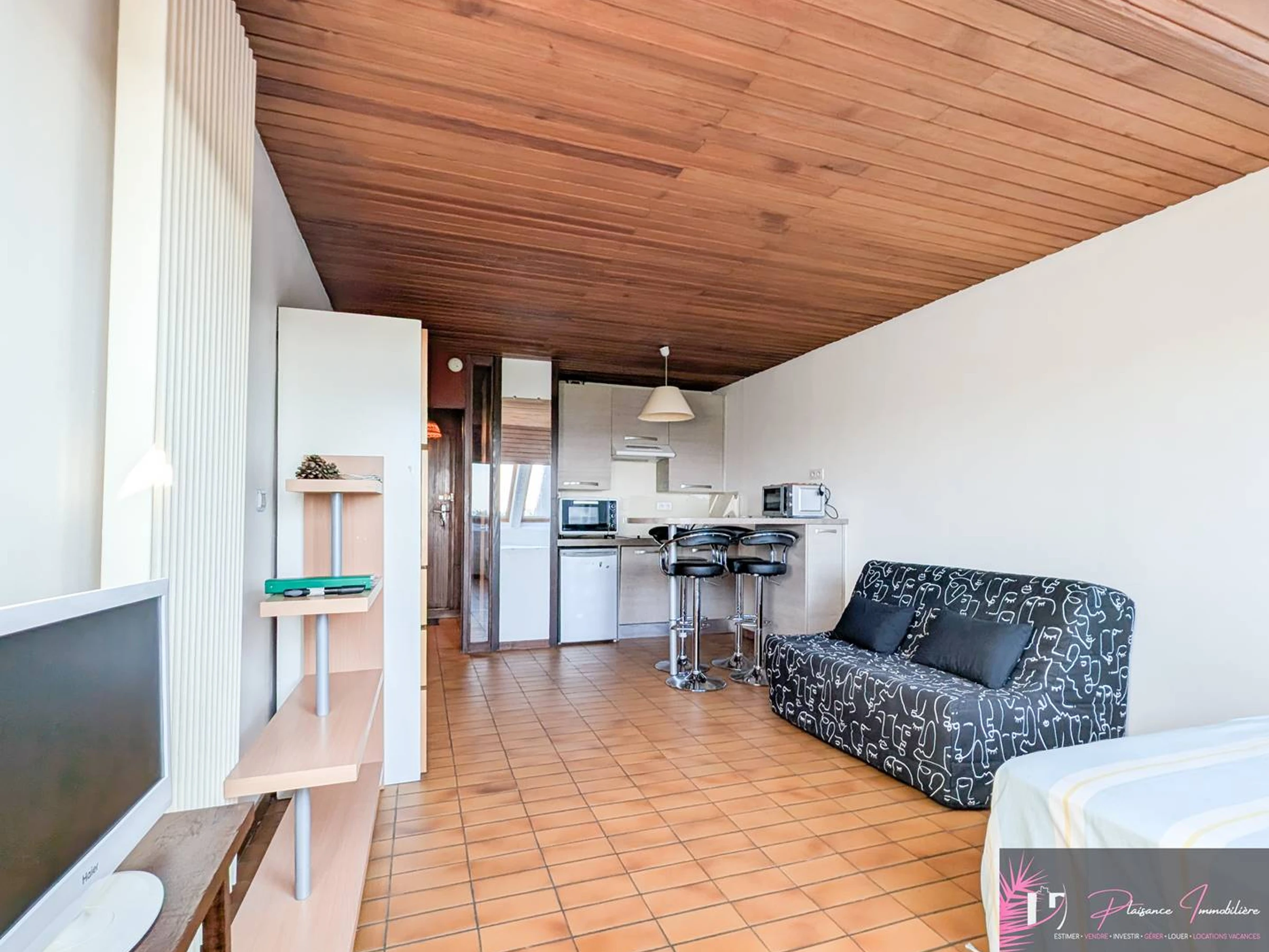 Equipped studio on the top floor of a residence located 50m from the beach. Beautiful sea and park views for this south-facing studio. Living room with sofa bed + double bed. Equipped kitchen area (oven / microwave, refrigerator, 2 ceramic hobs, dishwasher). Shower room (shower, washing machine, sink, WC) Close to small shops and the Marina. A few steps from the coastal path for beautiful walks along the sea and the Marina.