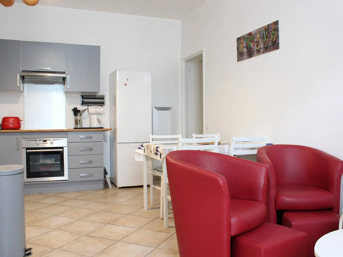 Il est au rez de chaussé et se compose : d'un séjour avec 2 fauteuils et télévision, une cuisine aménagée et équipée avec four encastré, frigo, plaques à induction et lave-linge, une première chambre avec un lit en 140cm pour deux personnes, une seconde chambre avec un clic clac en 130cm pour une personne et une salle d'eau et un WC.