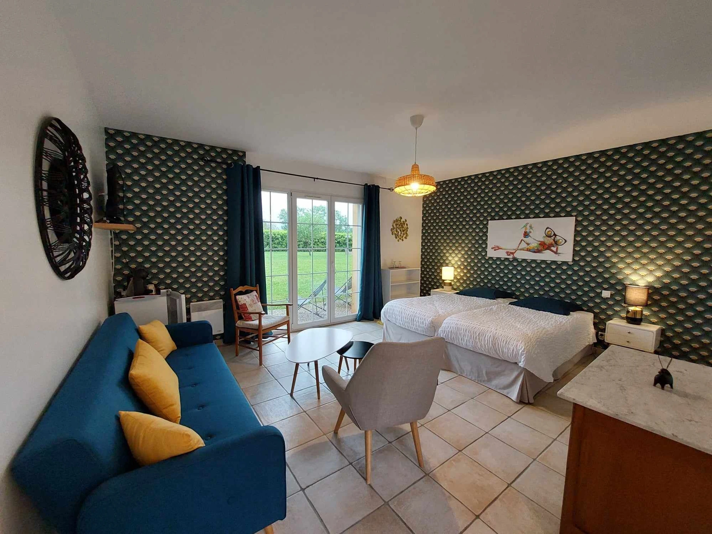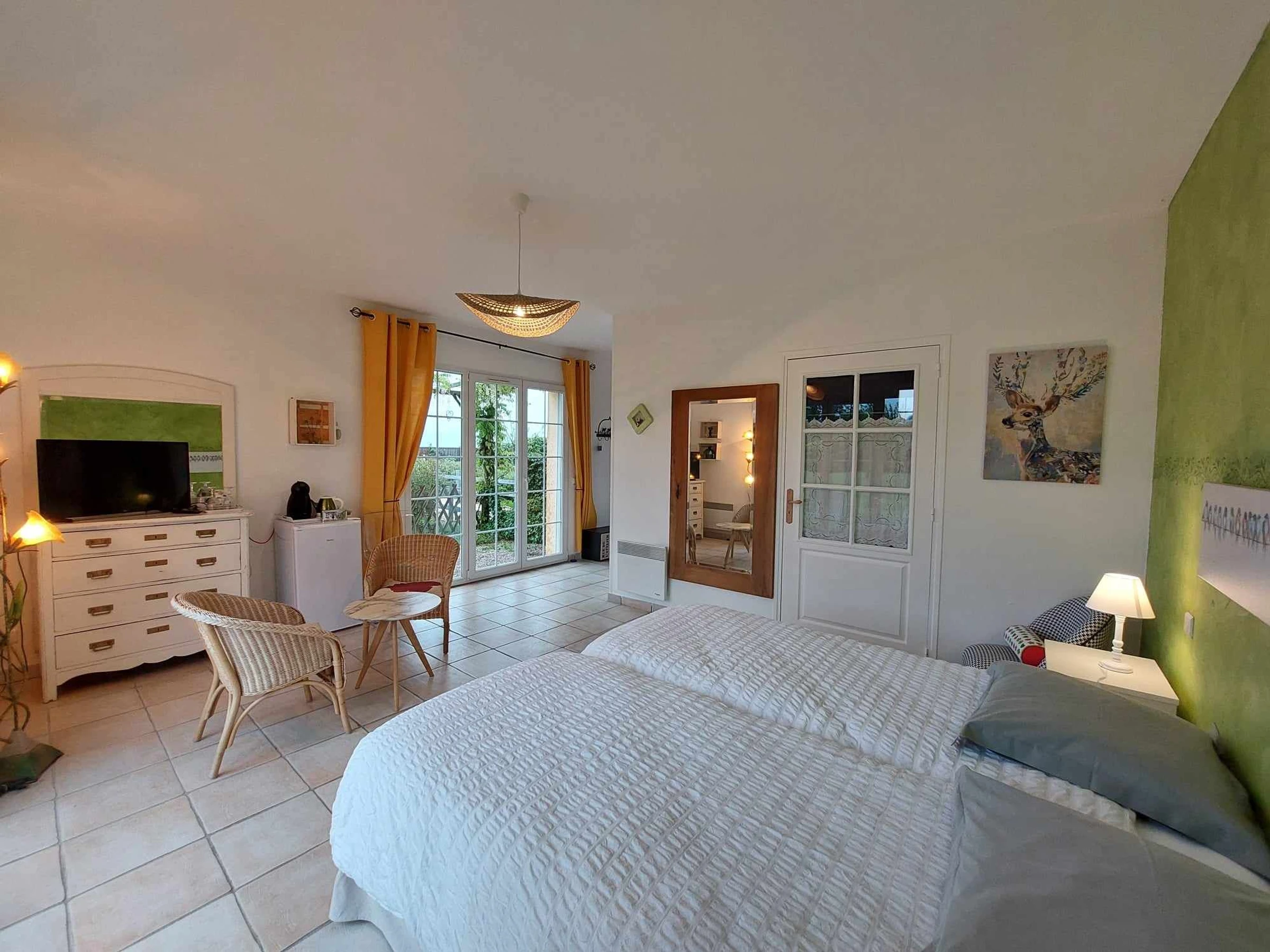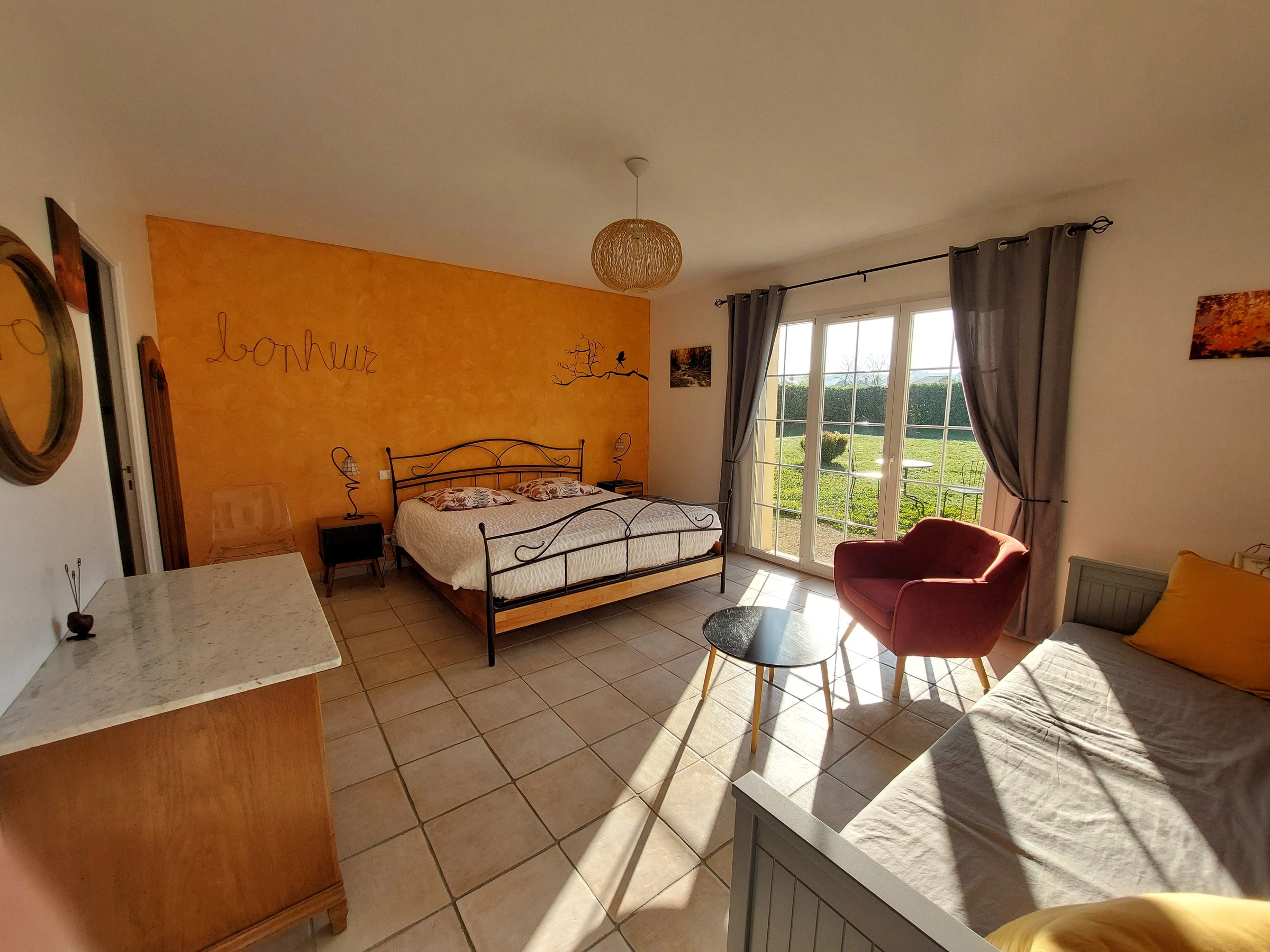Ideally located 60 km from Dijon and 18 km from Beaune and its Hospices, the Clos des 4 Saisons' location has everything you need: wine cellar tours and tastings nearby. Hiking trails, a greenway, a lake, cliffs, and more. The Santenay spa resort and its casino are 9 km away. Cultural discoveries are also rich and varied, with Autun and its Gallo-Roman past, Le Creusot and its industrial past, and the châteaux of Pommard, Couches, and Sully. This single-story room, overlooking the courtyard, has a private entrance for 3 people (one queen-size bed and one single bed), and an en-suite bathroom and separate toilet. The lounge area has a flat-screen TV. Additional bedding is available with a rollaway bed: €20.