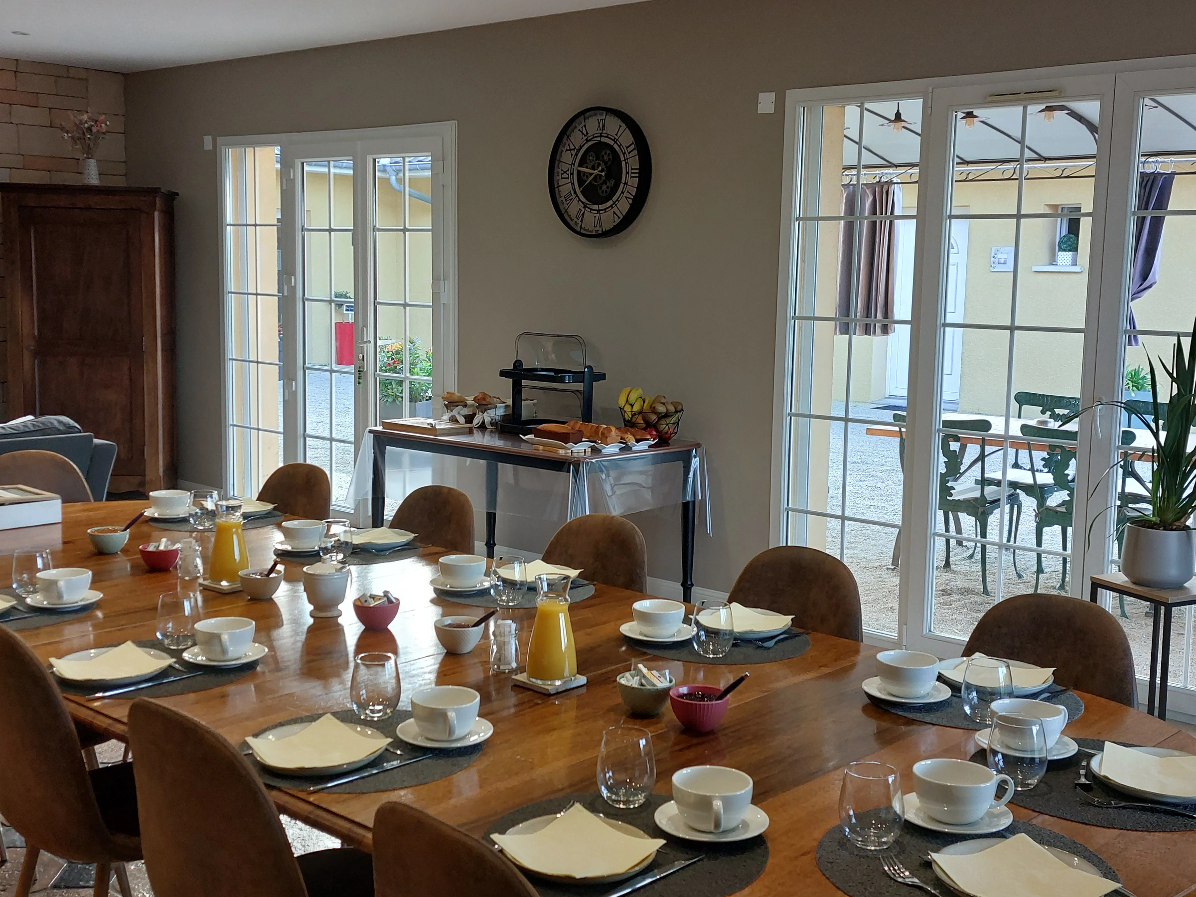 Breakfast and the table d'hôtes (€35/person: aperitif, starter, main course, cheeses, and dessert) are served at the communal table or, in fine weather, on the terrace to enjoy the setting and surrounding nature.