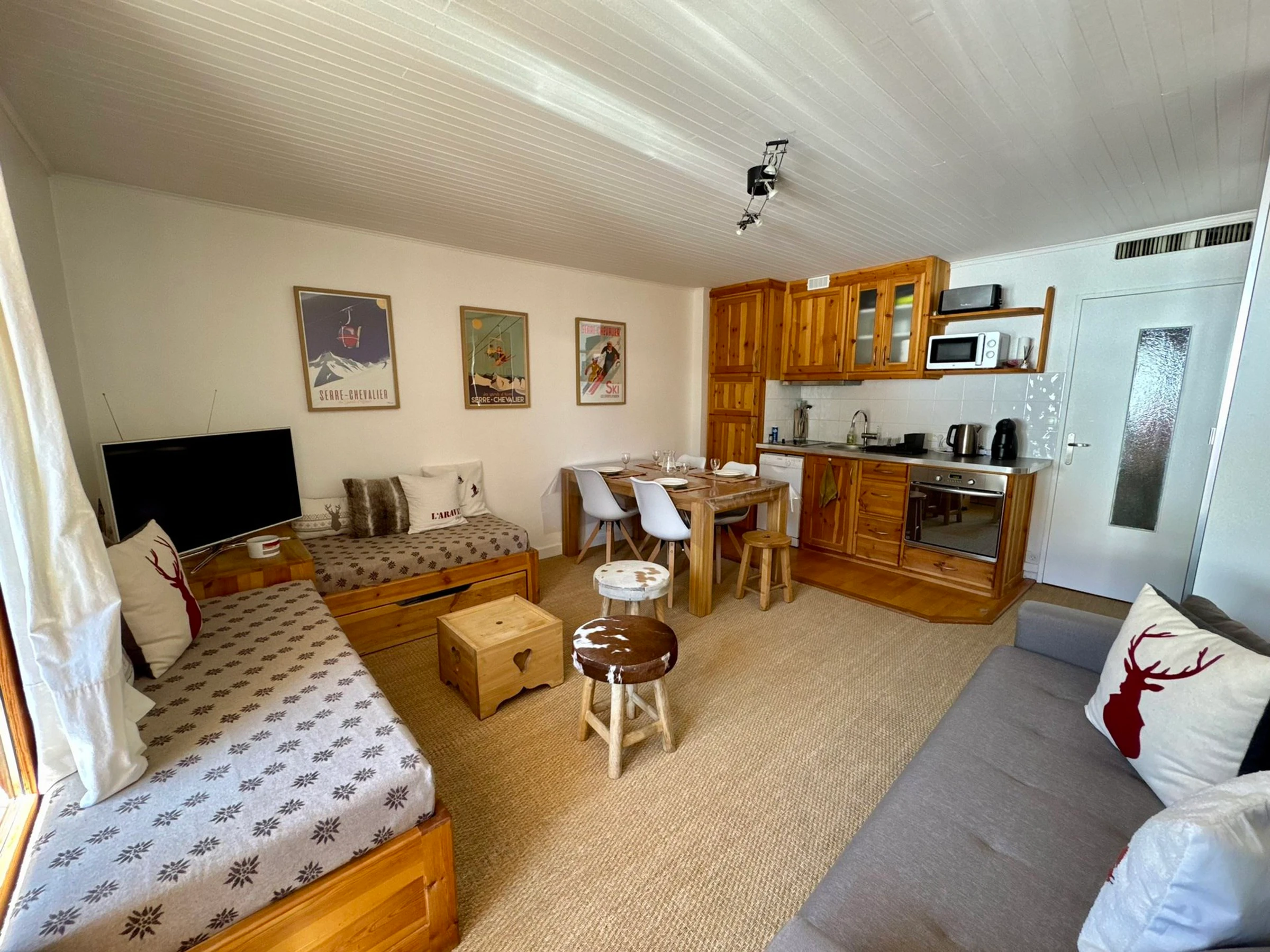 29m2 studio for 4 people, ideally located at the foot of the slopes in a quiet residence, 5 minutes from shops on foot and with a lovely view of the slopes and mountains.
