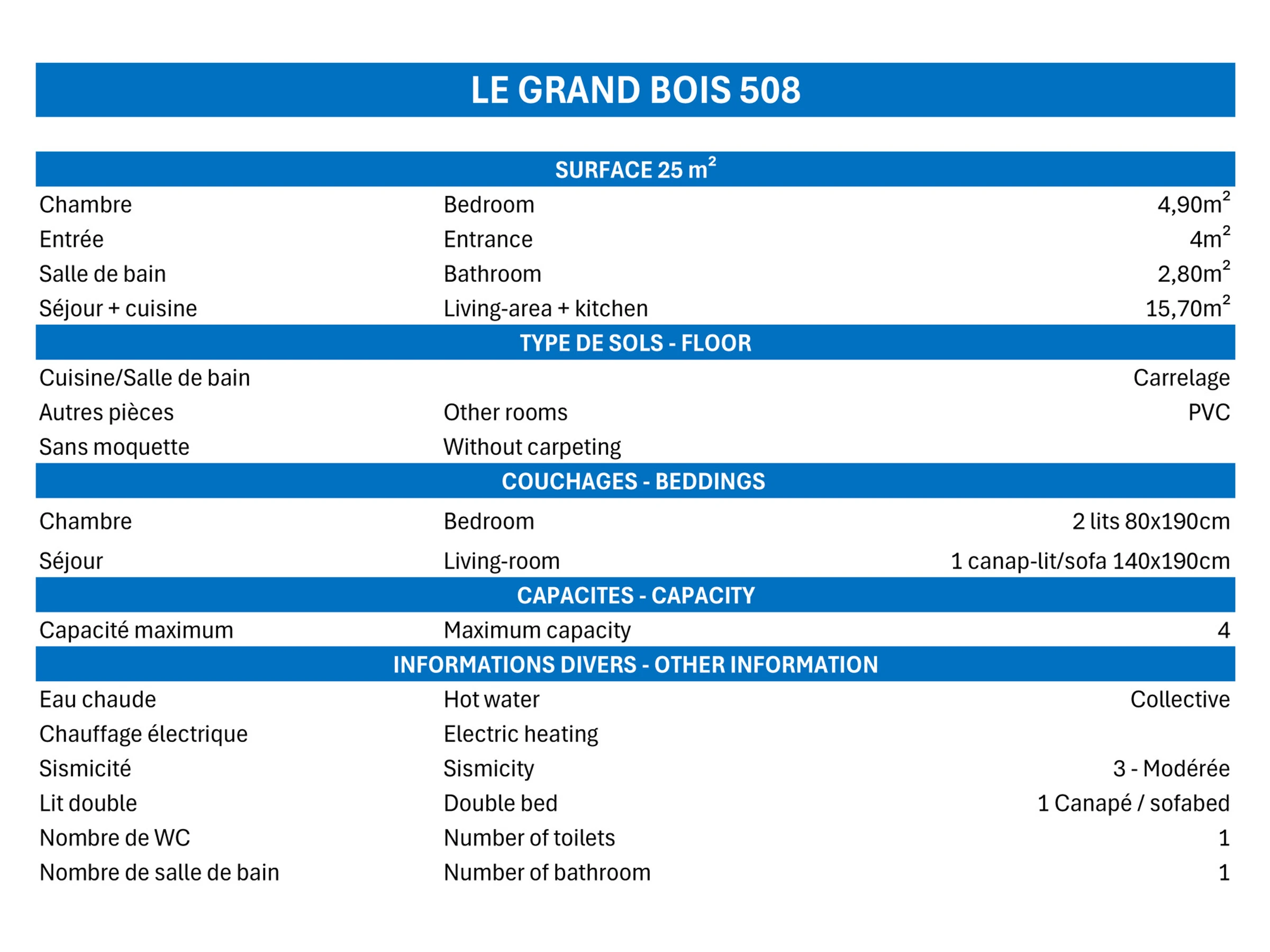 2 Rooms, 4 Personnes, 25m², West balcony, 5th floor