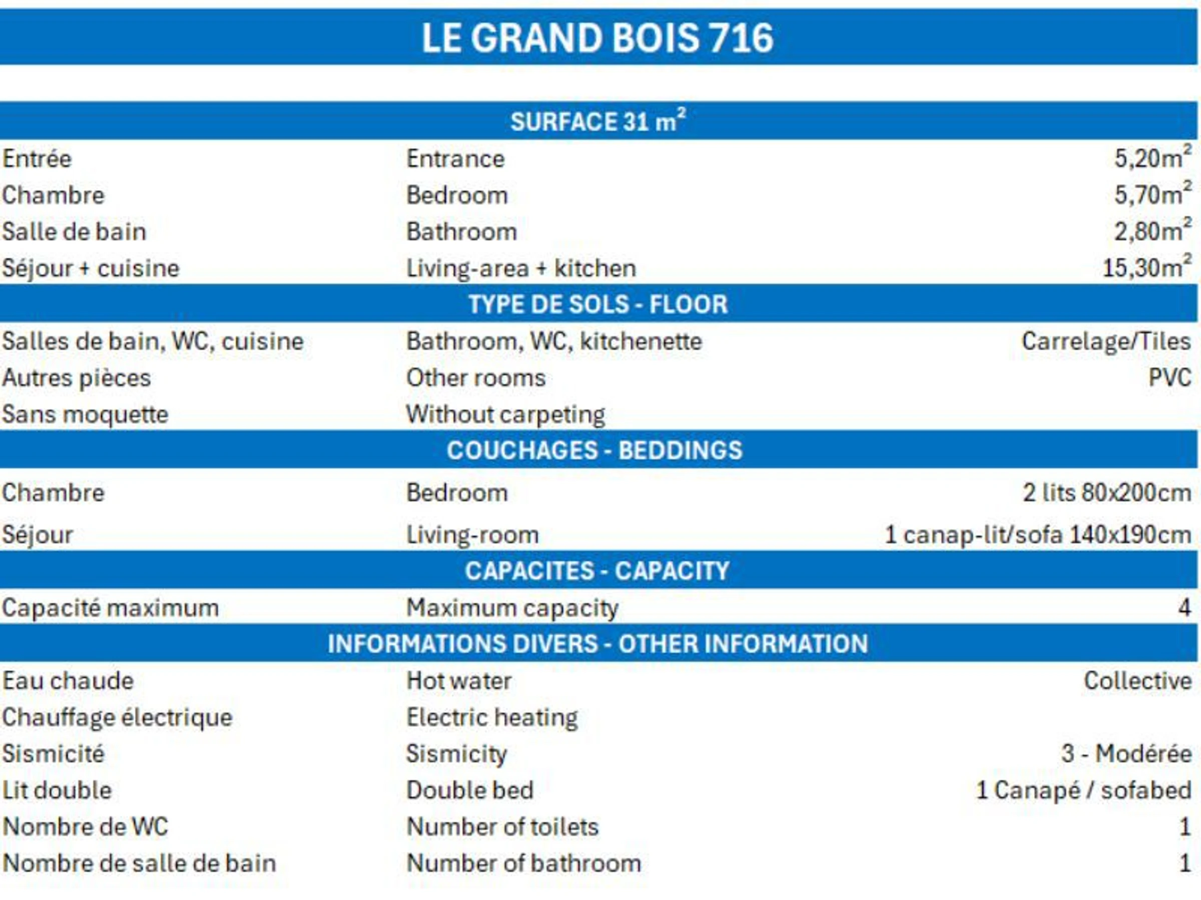 LA TANIA - RESIDENCE LE GRAND BOIS A N°716 - Type C2 - 2*