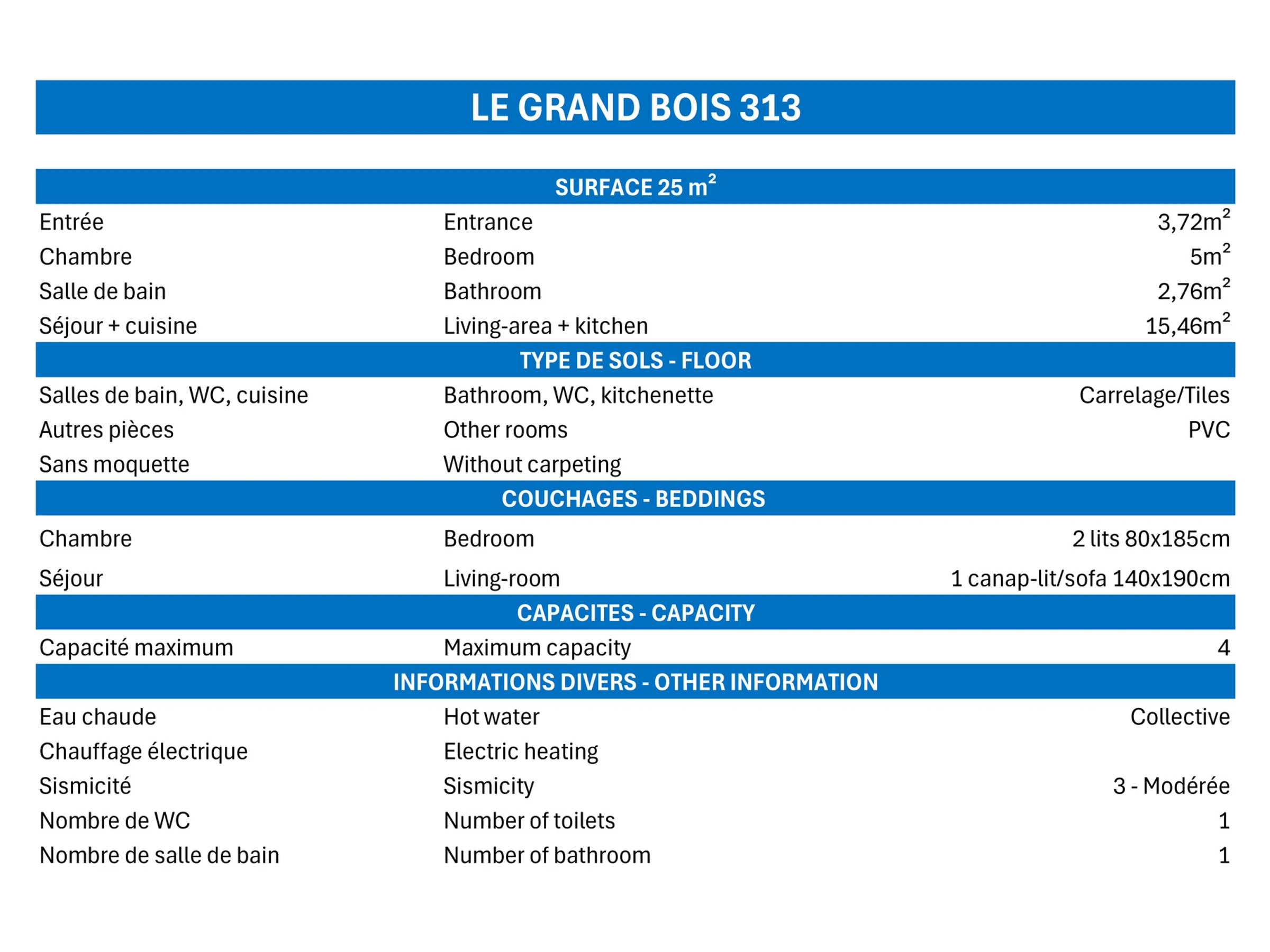 2 Rooms, 4 Personnes, 25m², West balcony, 1st floor