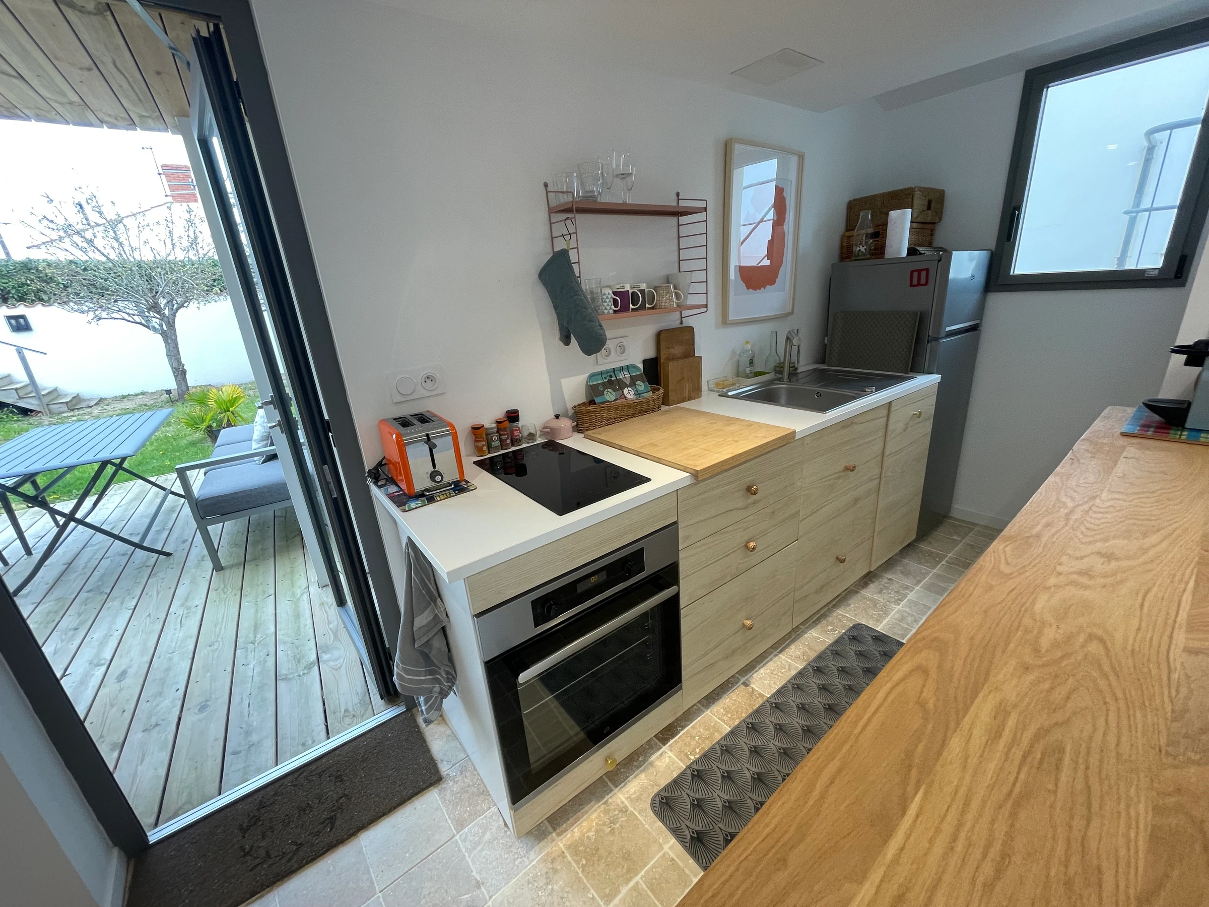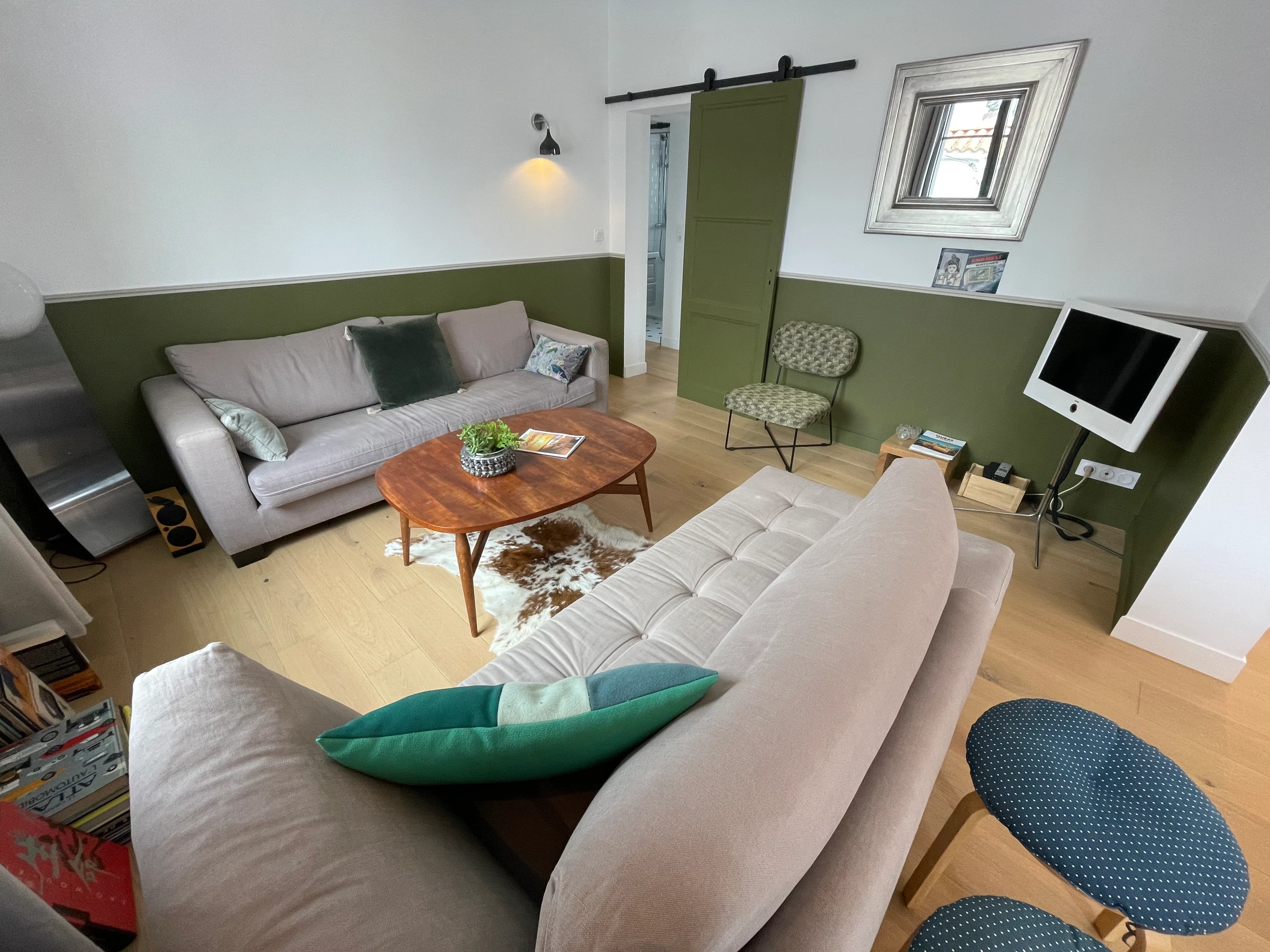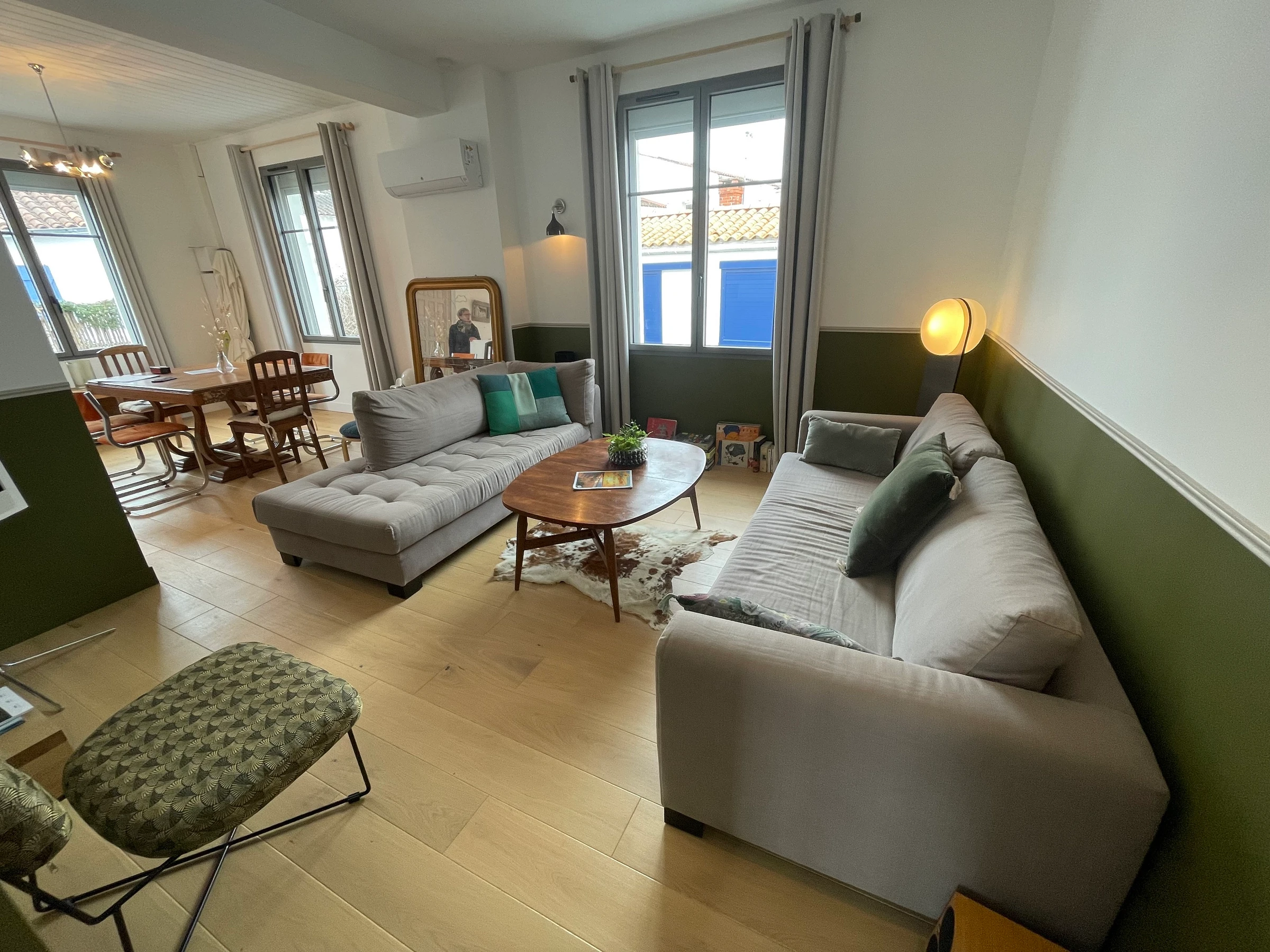 LA TRANCHE SUR MER, town center, on a small street in Tranche, this pretty seaside villa features a tasteful interior with delicate decor. Its proximity to the beach, shops, and private parking are great assets. Two terraces with garden furniture are perfect for enjoying the outdoors.