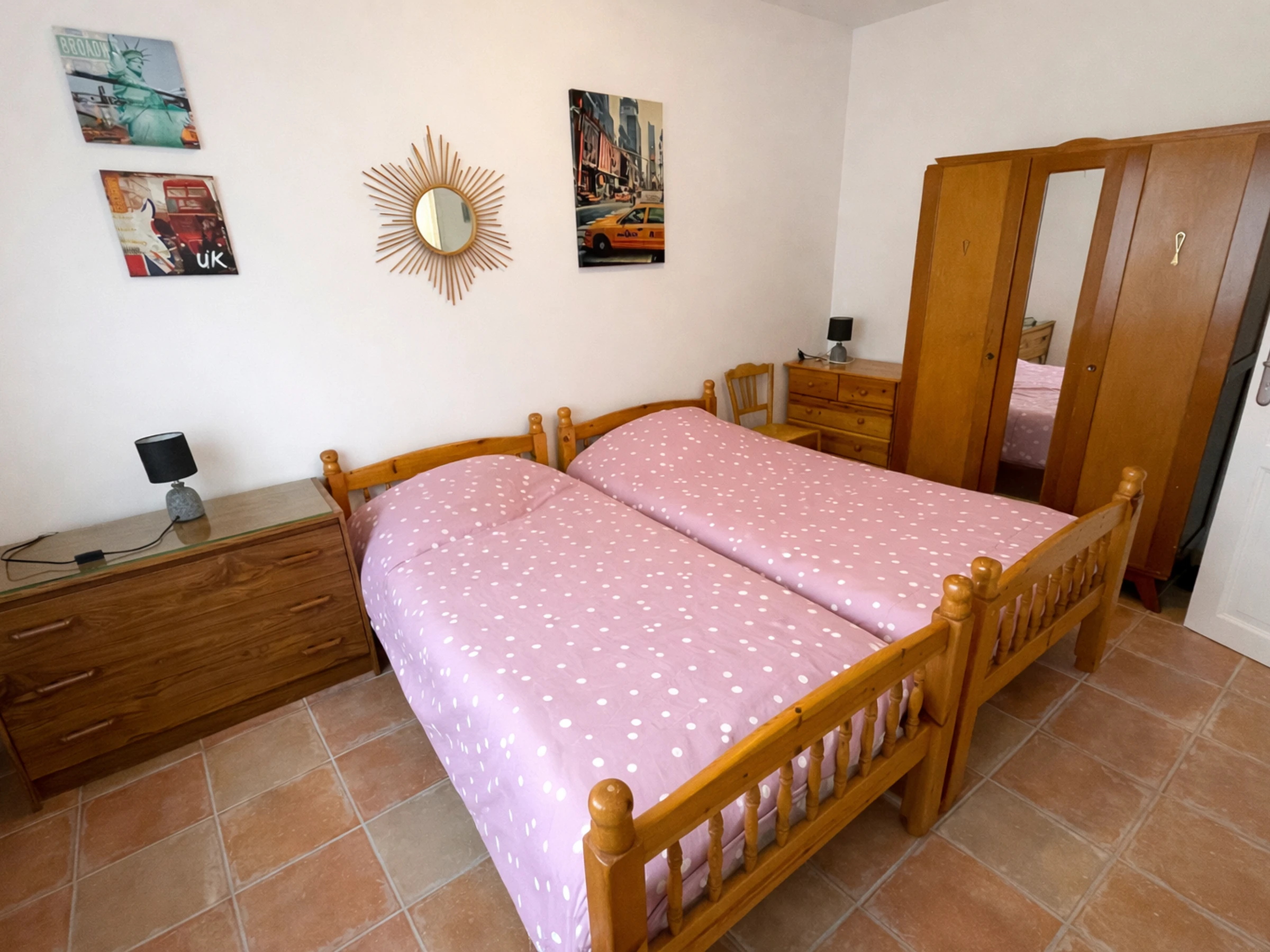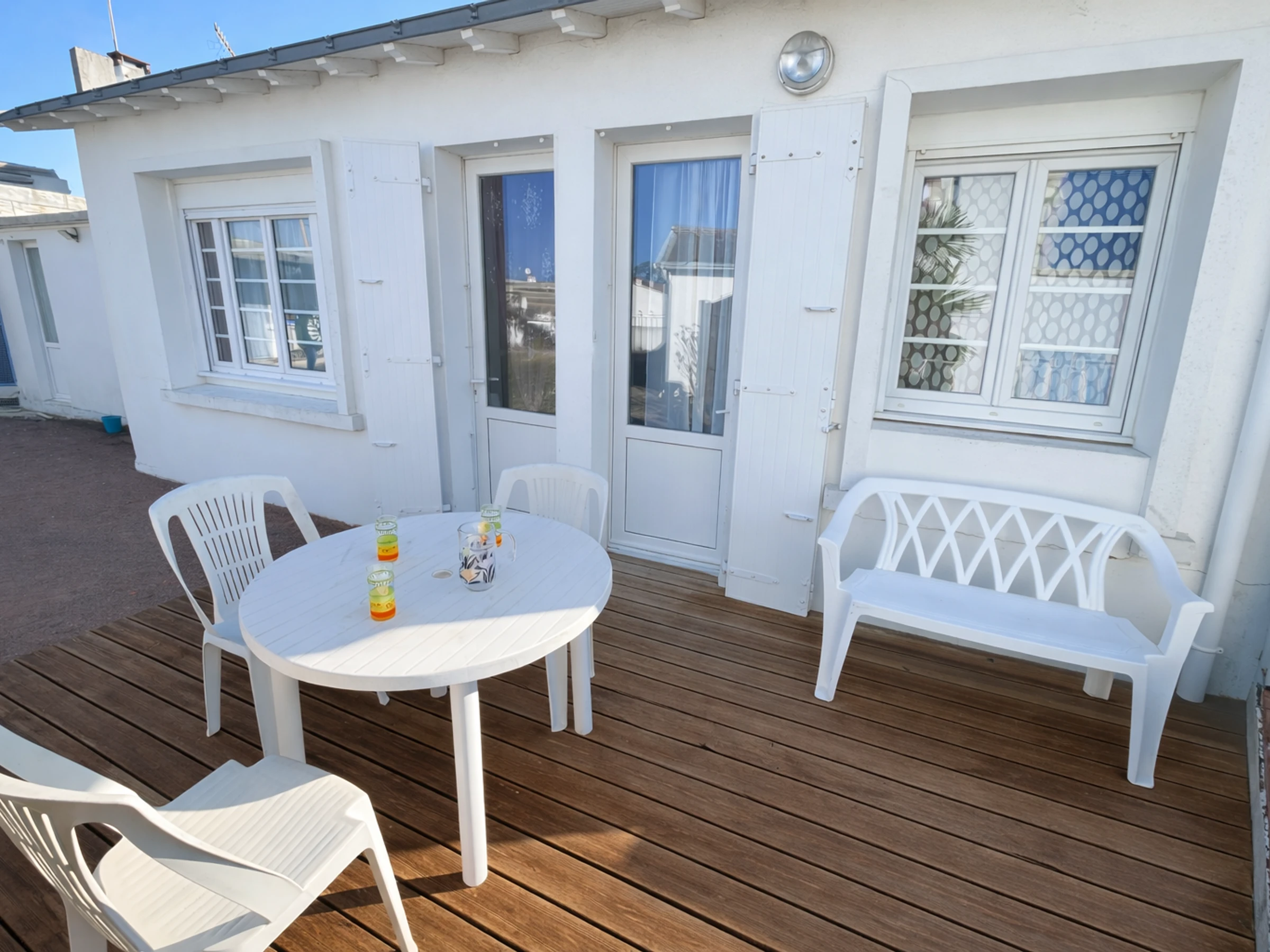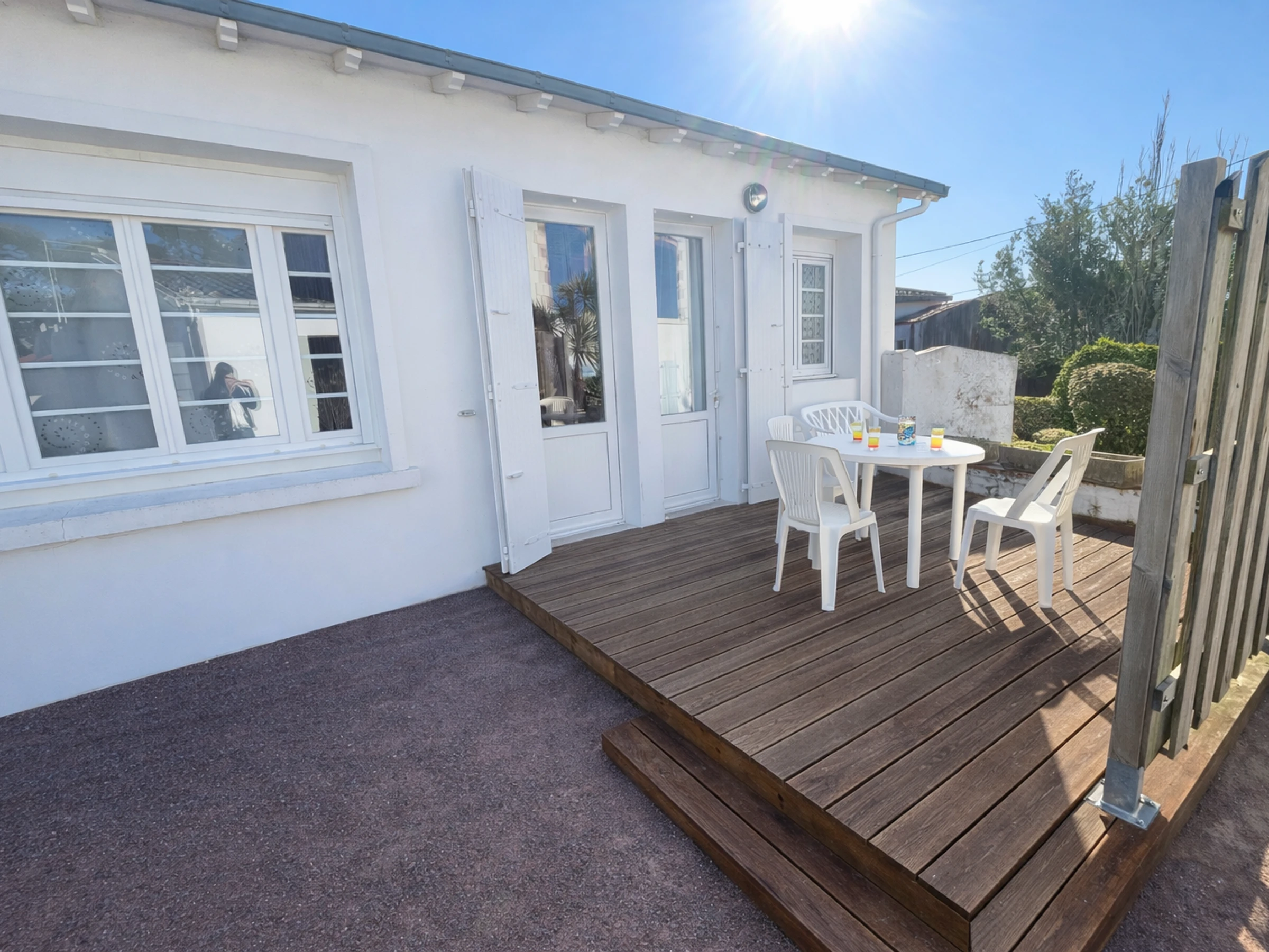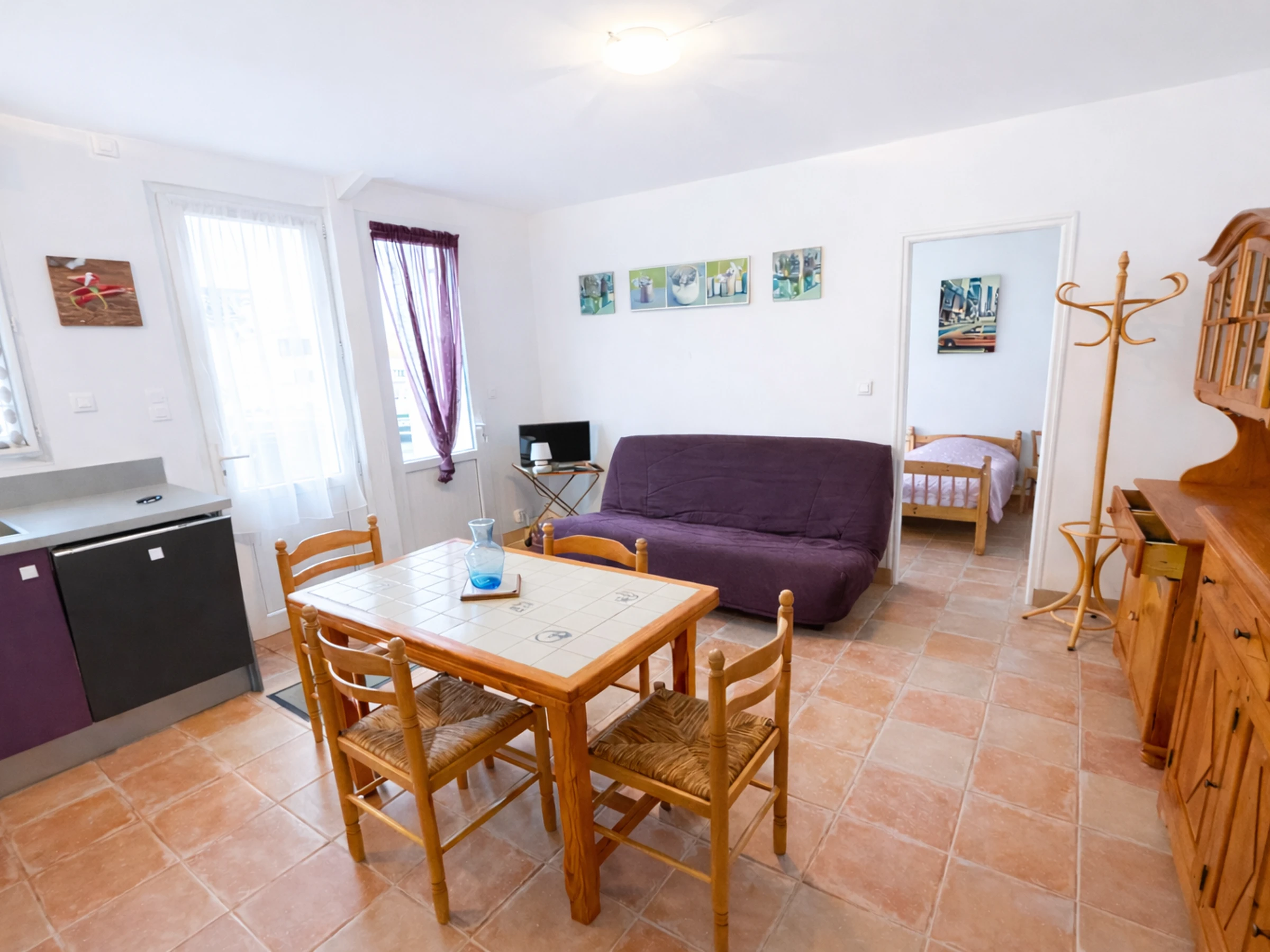 LA TRANCHE SUR MER, town center, single-story cottage in a small complex of 3 units, a few minutes from the town center with all amenities. Private parking space in the shared courtyard. Private terrace with garden furniture. One living room/kitchen with a sofa bed, one bedroom with two single beds, one bathroom (walk-in shower and sink), and one separate toilet.