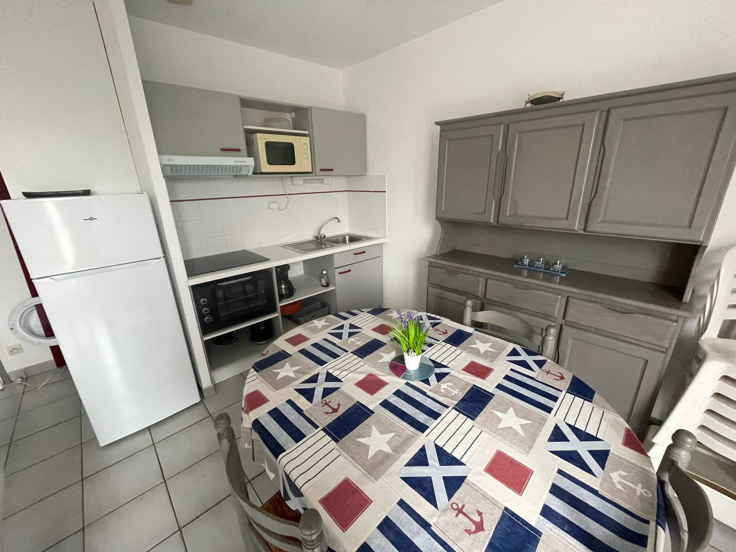 La Tranche sur mer, close to the city center, in a holiday residence, house with individual and enclosed garden, 1 garden furniture, enjoying a good location beach and shops. 1 car park n° 33 in the residence, 1 bedroom with 1 bed 140, 1 bedroom with 2 beds 0.90, 1 main room with kitchen area - living room, 1 bathroom (shower - sink) 1 toilet.
