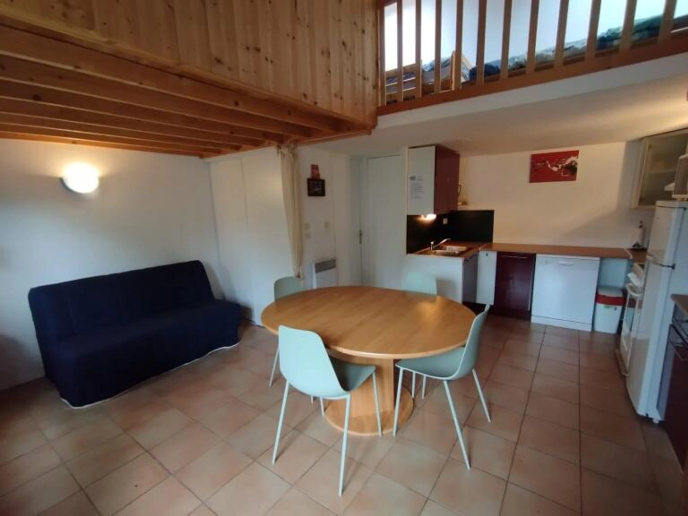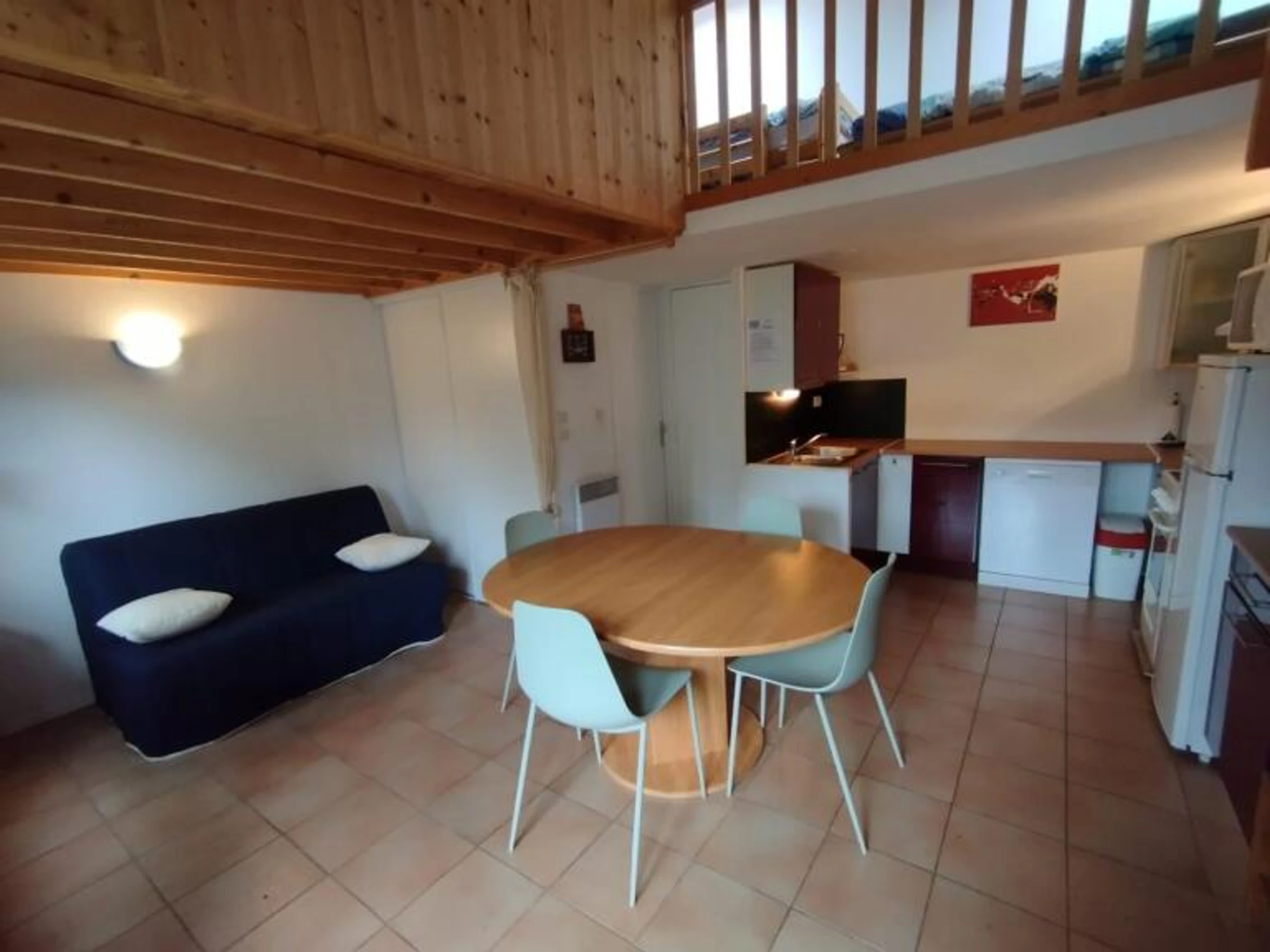 Pretty house in holiday residence with swimming pool (open July and August) with a parking space. The interior is pleasant and well decorated. The living room opens onto the terrace with garden furniture - kitchen area, bathroom (shower, sink), toilet. Upstairs: 1 mezzanine (lower height 1.80) with skylight: 1 bed 140, 2 bunk beds for 1 person, 1 bed 90.