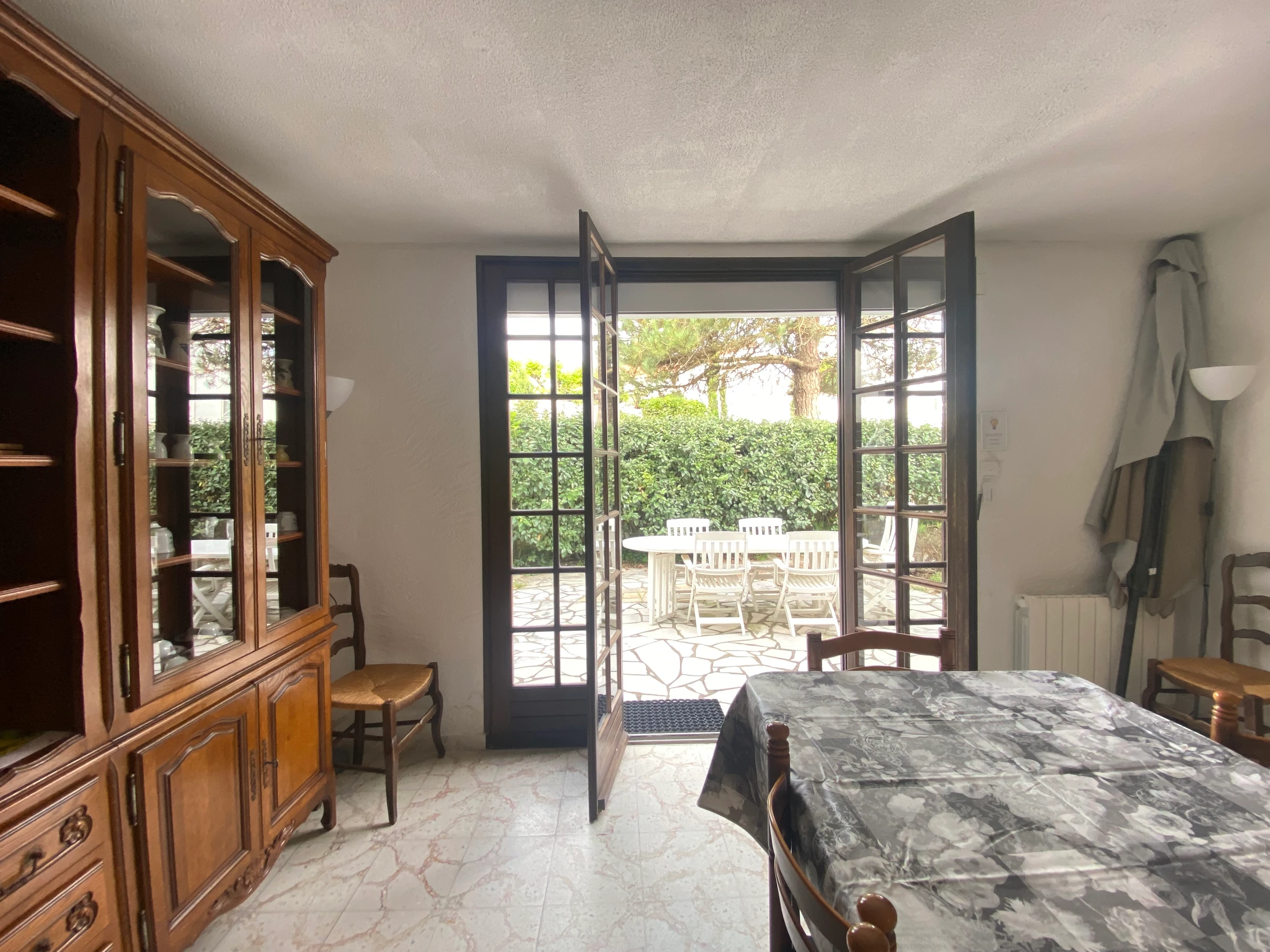 House for family holidays, a few minutes walk from the beach and shops. 1 courtyard for outdoor meals and 1 parking space. - On the ground floor (overlooking the courtyard): 1 kitchen, 1 dining room (with decorative fireplace only), 1 living room, 1 bedroom with 1 double bed, 1 bathroom and 1 WC, - on the ground floor -street: 3 bedrooms each with 1 double bed (including 1 directly overlooking the street and not suitable for young children), 1 bathroom, 1 WC and 1 garage. Several levels with steps.