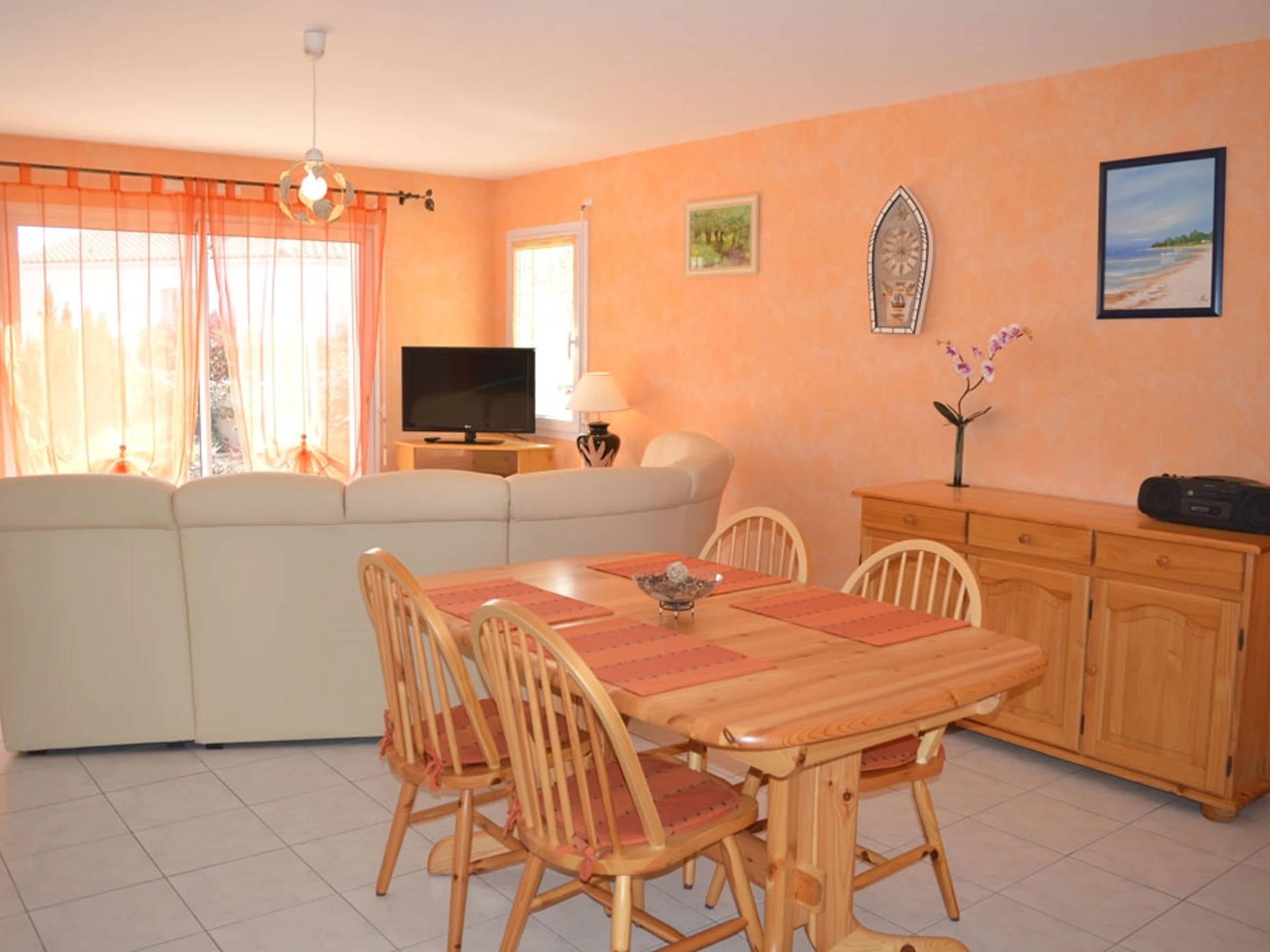 Situation: detached house (2007 - single storey) with two gravelled courtyards (1 at the front with flowerbeds and the other at the back); 500 m from the first shops in the city center ("Chocolatine" bakery, "Dorie" fruit and vegetables, etc.) and 1,100 m from the Central beach, in a residential area. Not far from the shopping center "Les Joncs" (Super U, pharmacy, hairdresser, [hidden] at about 1,200 m.