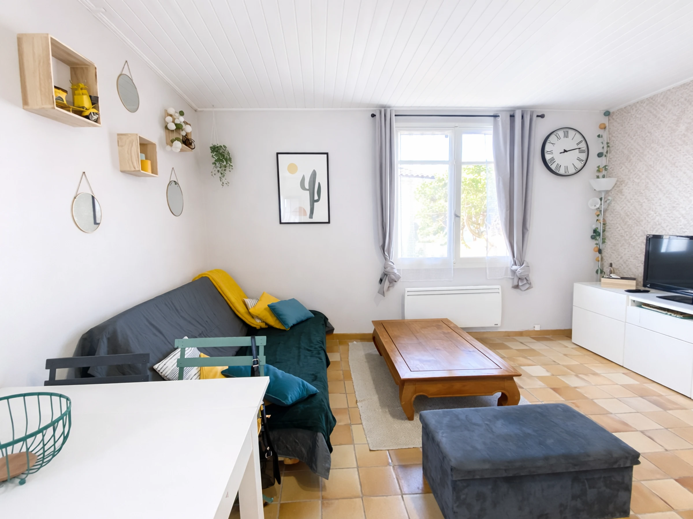 LA TRANCHE SUR MER, la Grière, in a residence near the beach and seasonal food shops. an apartment on the first floor, tastefully renovated, comprising a living room with its kitchen area, 1 cabin bedroom with a window, with 2 bunk beds, 1 bathroom with shower, sink, 1 toilet.