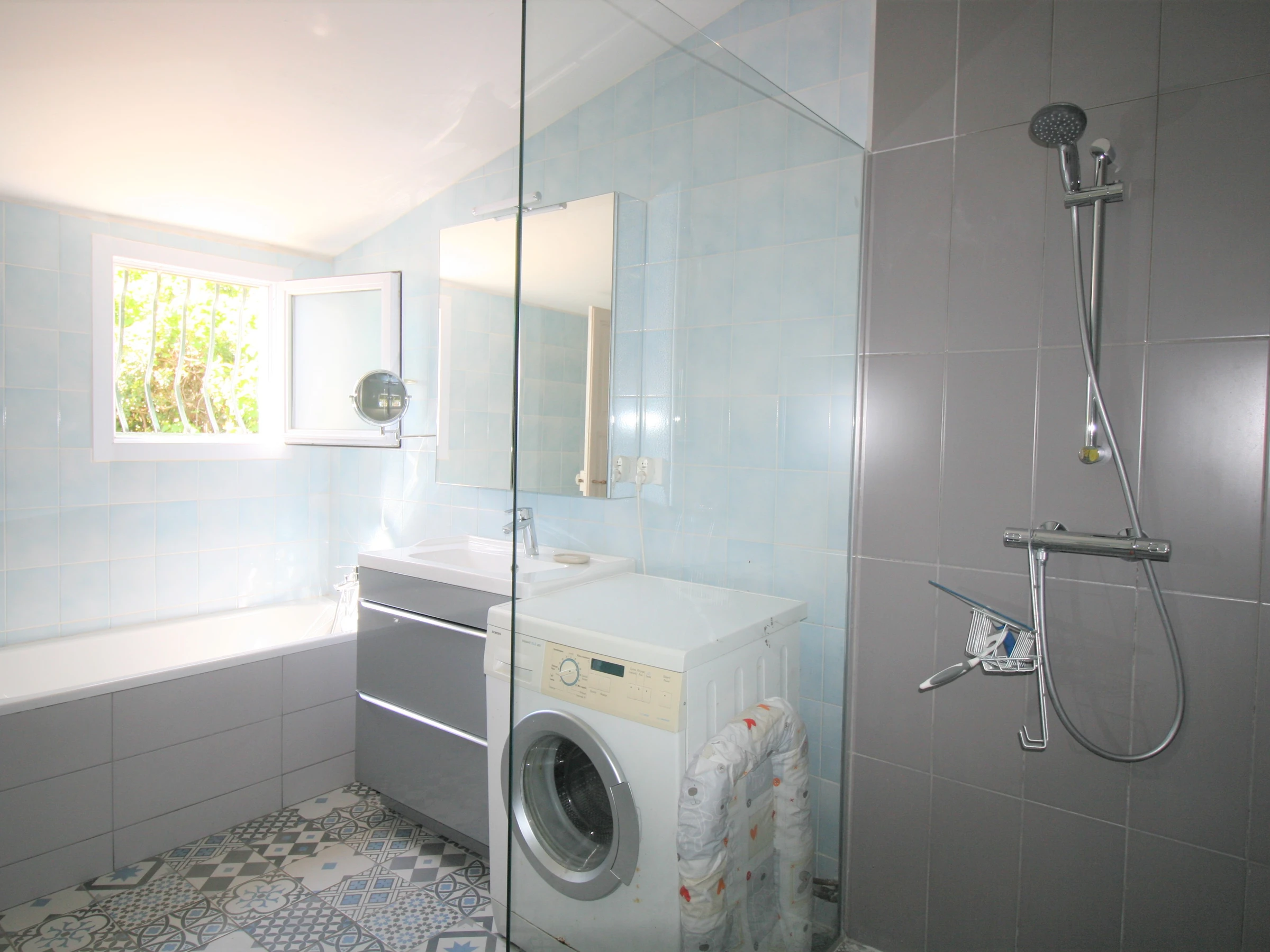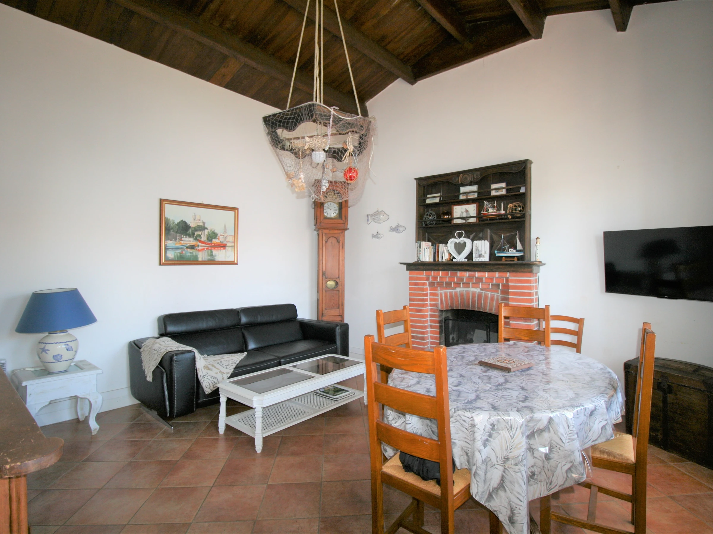 1 main room with lounge - living room, 1 fireplace for decoration, 1 kitchen, 1 bedroom with 1 double bed, bathroom with bath, sink, shower, 1 toilet. 2 bedrooms in a row, the first with 2 beds of 0.90 and the second with 1 bed of 160 cm. 1 second bathroom and wc. 1 garage.