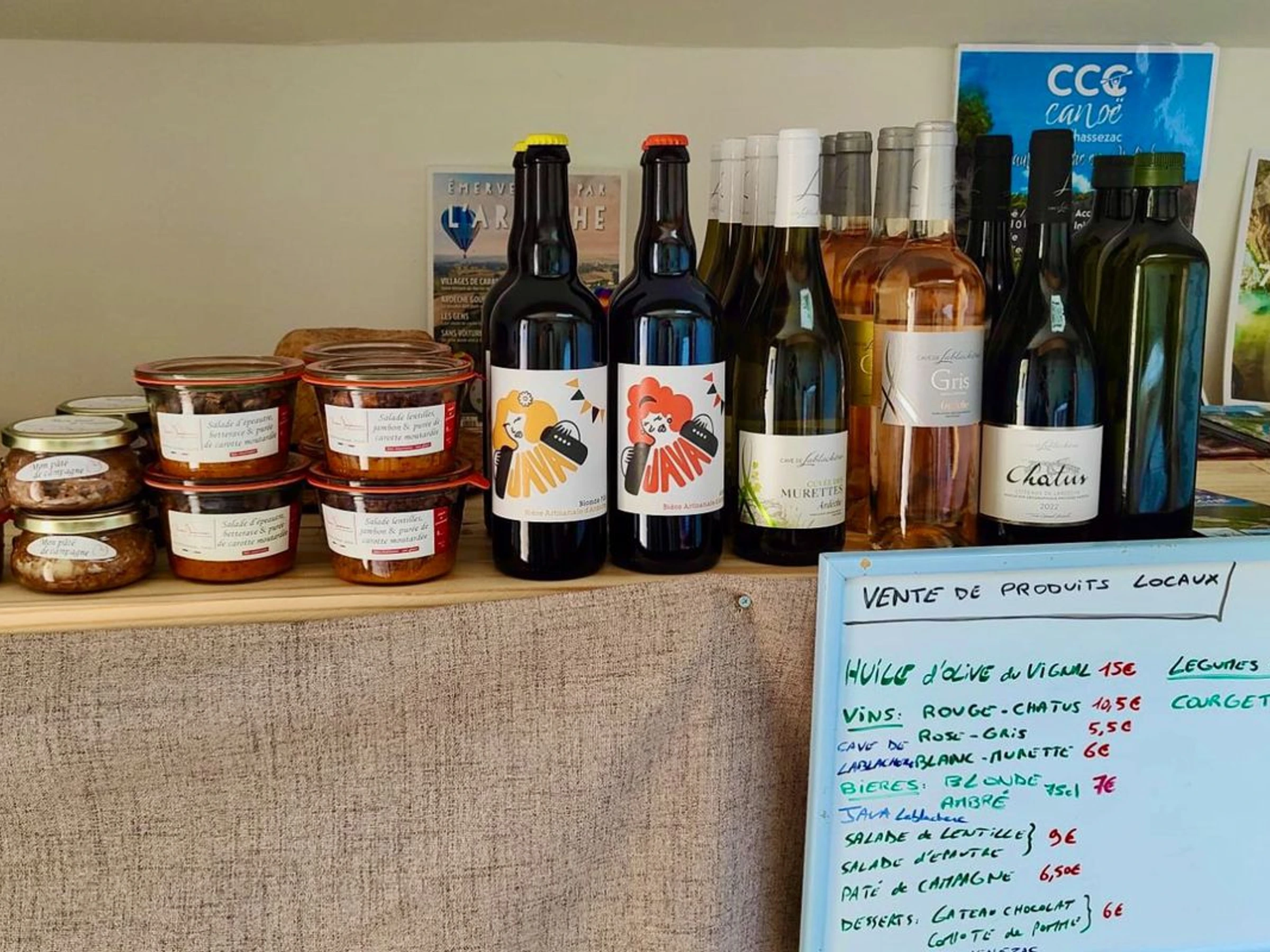- Local products are available for sale - directly from Vignal: garden vegetables: mainly tomatoes and zucchini, and olive oil. Other local products are available for sale: wine from the Lablachuère winery - chilled rosé and white, as well as red wine, and snacks: terrines, prepared dishes, and canned desserts for emergencies - from Vinezac.