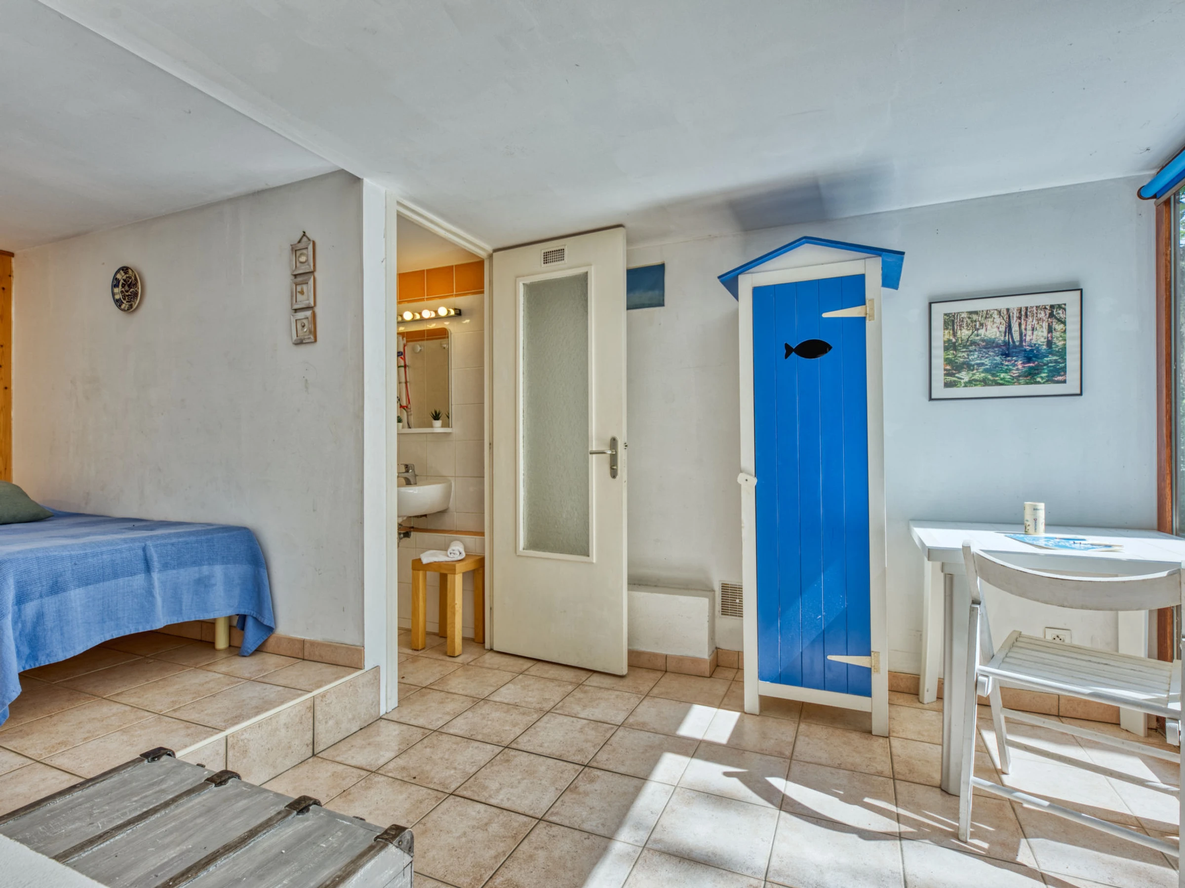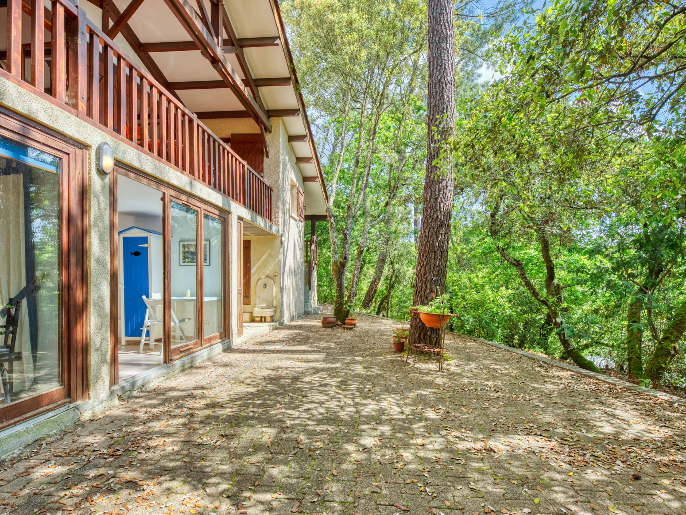 Carreyre 6 km from Lacanau Océan: Single-family house "Villa Moutchic". In a quiet position, 6 km from the sea, from the lake, 600 m from the beach. Private: natural state property, parking. Shop 6 km, supermarket 6 km, restaurant 1 km, sandy beach "Lacanau Océan" 6 km, bathing lake "Moutchic" 600 m. Golf course (18 hole) 5 km, surf school 6 km, sailing school 4 km, indoor tennis centre 5 km, riding stable 5 km. Nearby attractions: Dune du Pilat 86 km, Bordeaux 53 km, Saint Emilion 94 km, Cap Ferret 52 km. Well-known lakes can easily be reached: Moutchic 600 m, Maubuisson 15 km. Hiking paths: Vélodyssée 5 km. The keys‘ handover takes place by the agency in Lacanau, 6 km.