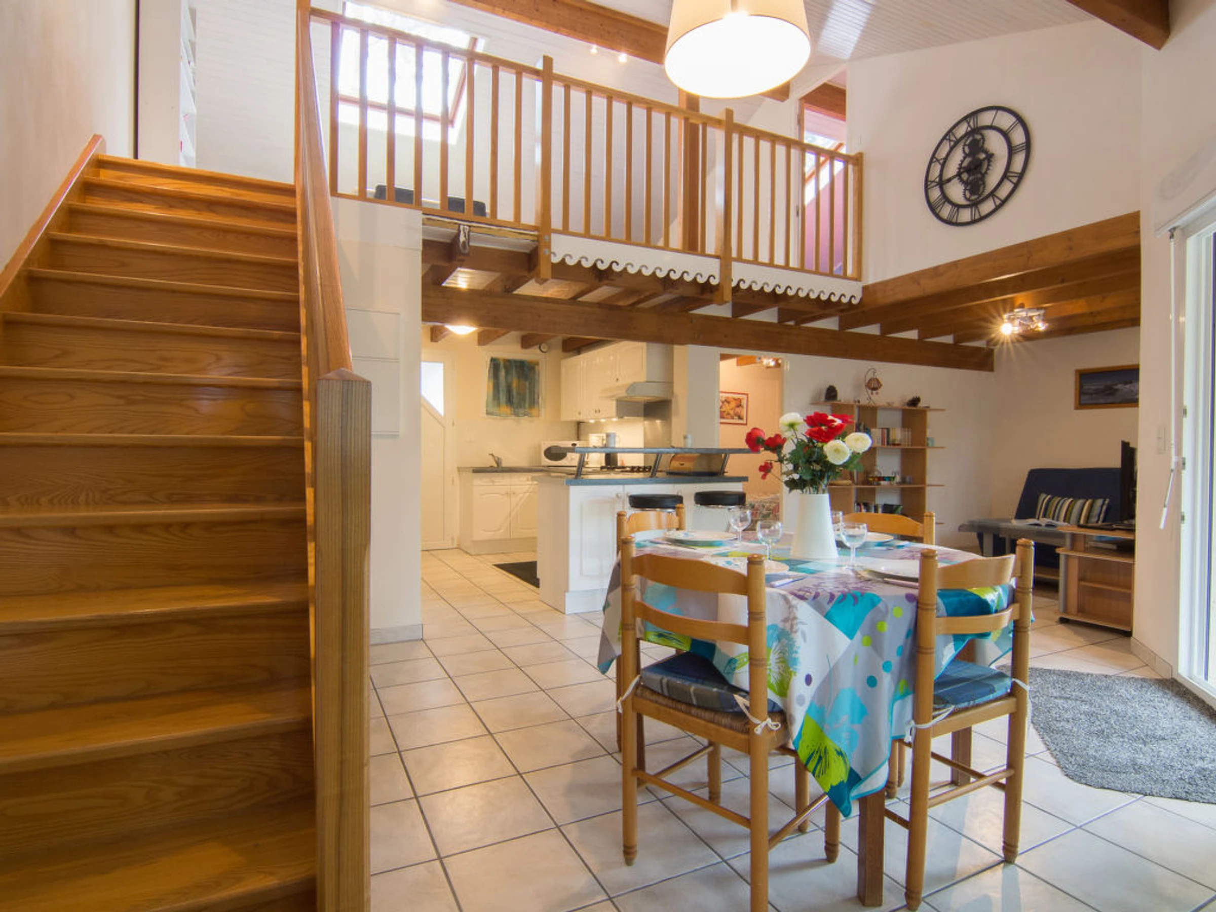 3-room terraced house 70 m2 on 2 levels. Living/dining room with TV. Exit to the terrace. 1 room with 1 french bed (160 cm). Open kitchen (4 hot plates, dishwasher, microwave, grill). Bathroom, sep. WC. Upper floor: 1 room with 1 french bed (140 cm), TV. Gallery with 1 double sofabed (140 cm). Terrace 12 m2, west facing position, patio. Terrace furniture, deck chairs (2). Facilities: washing machine. Internet (WiFi, extra). Reserved parking space n 29. Please note: smoke alarm.