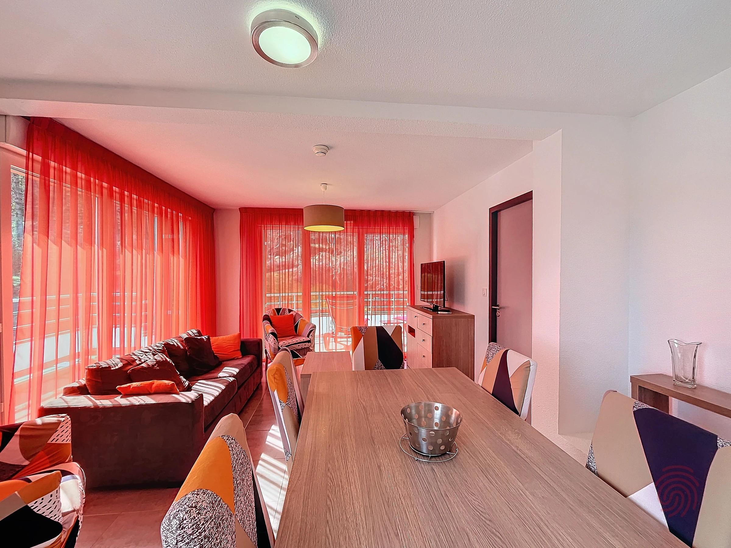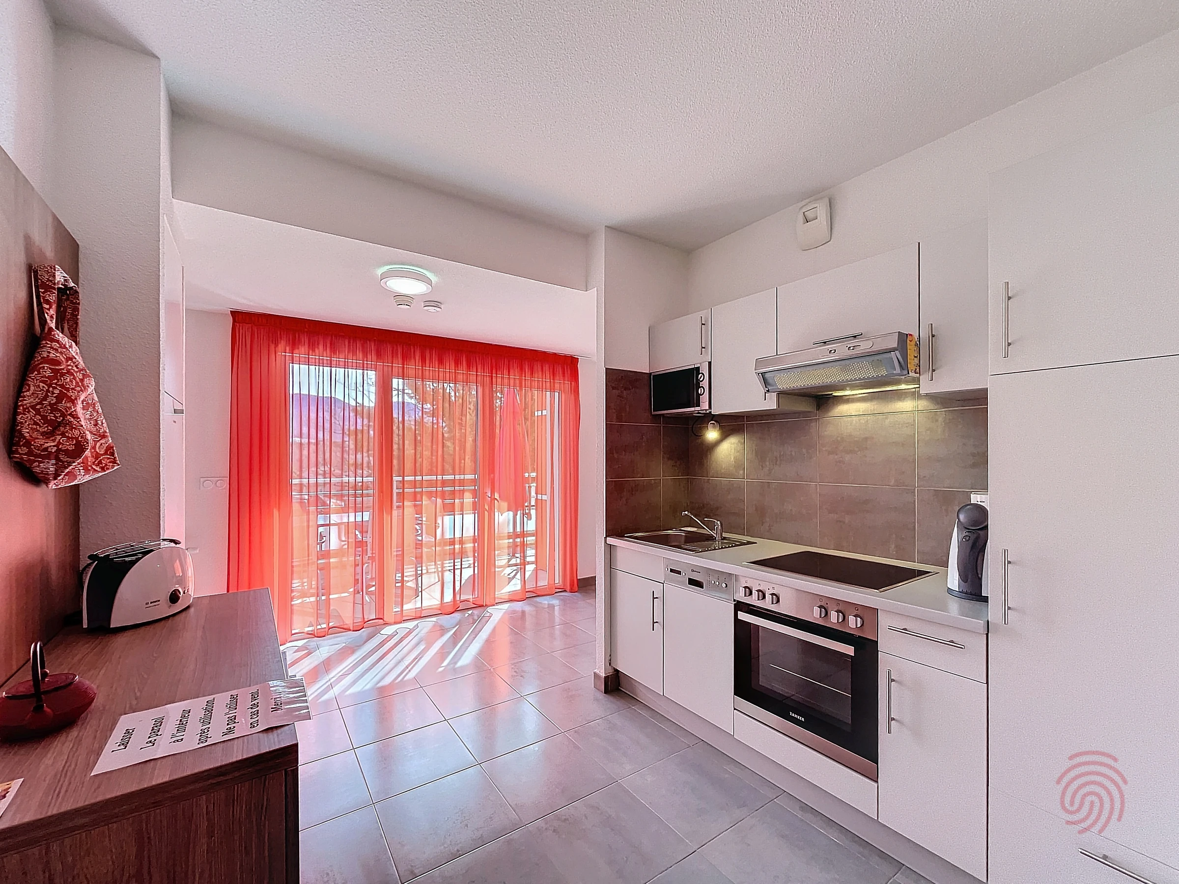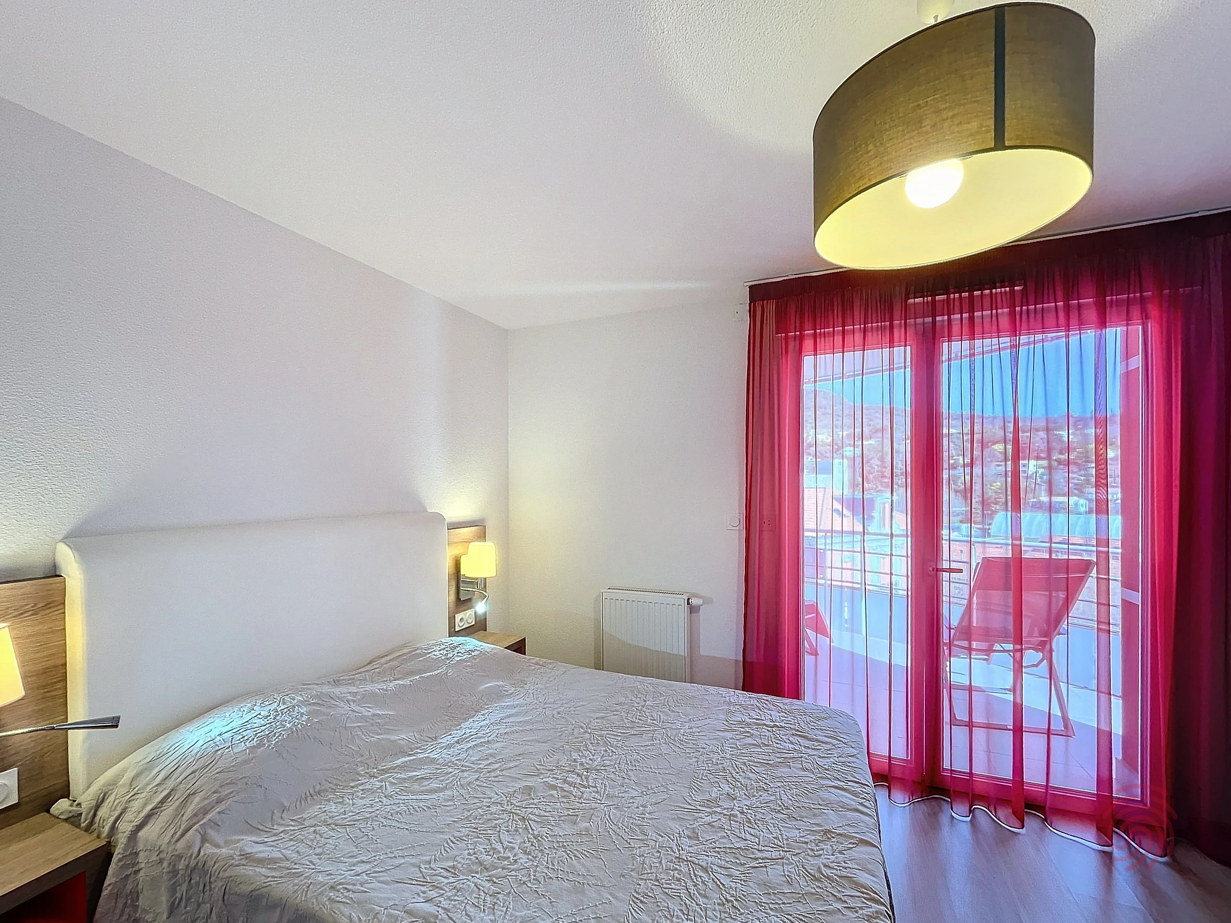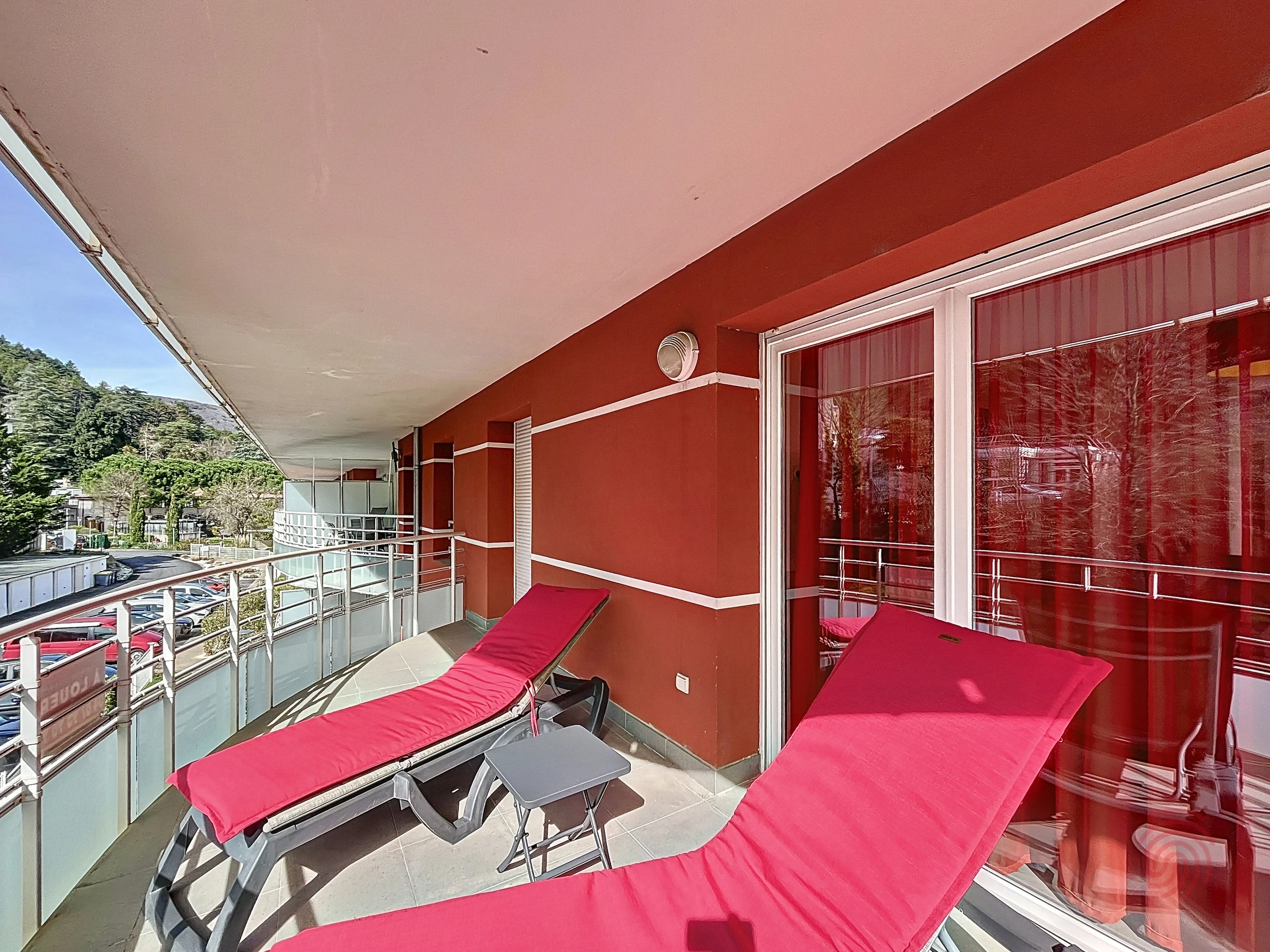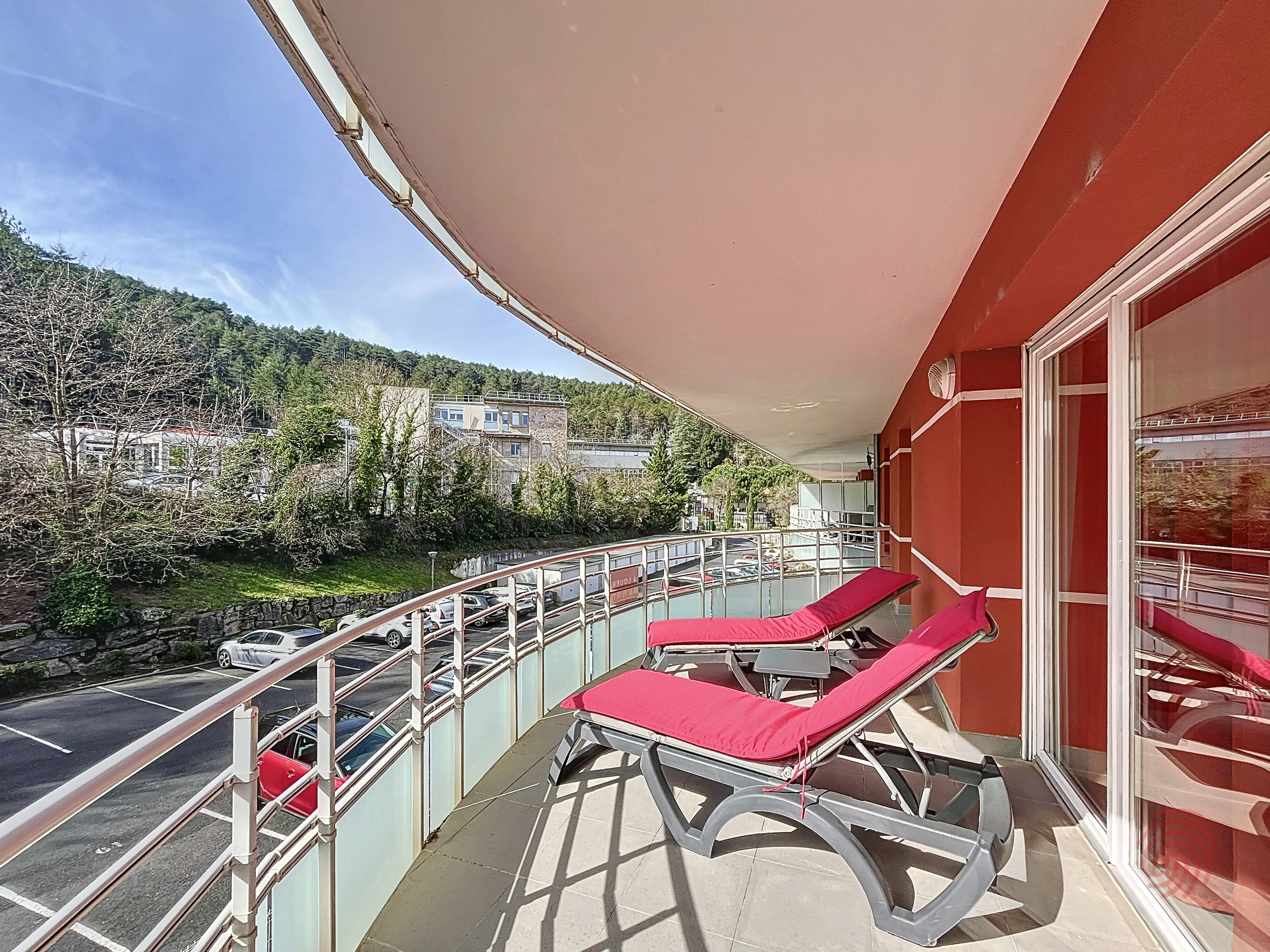 Very nice F3 apartment, air-conditioned, 65 m² in a recent residence on the fourth floor with elevator and 2 private parking spaces (one in the basement and one outside). A terrace with table and garden chairs, two sun loungers, with a southern exposure and a magnificent view of the mountains. It is 50 meters from the city center and the thermal baths. A fitted kitchen equipped with a fridge/freezer, an oven, a microwave, a four-burner induction hob, a hood, a dishwasher, a filter coffee maker. The kitchen opens onto a main room with a sofa bed, a flat screen TV, a table and four chairs. A separate bedroom with 1 bed 160, a storage cupboard with access to the terrace. Another bedroom with a bed 140 + 2 storage cupboards with access to the terrace. A bathroom with a walk-in shower, a sink, a hair dryer and a separate toilet. There is a laundry room in the residence with washing machines. Wifi is functional in the accommodation or in the leisure room of the residence. Apartment classified 4**** in December 2024.