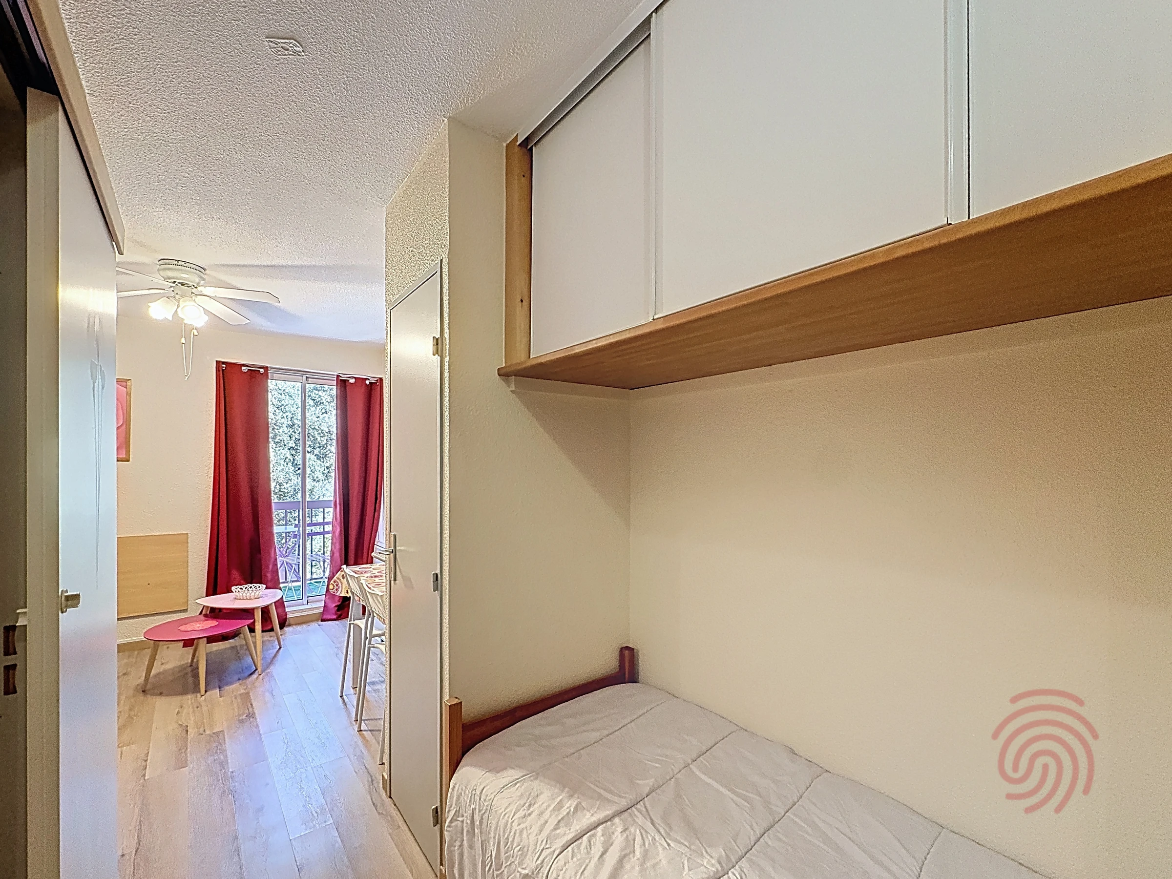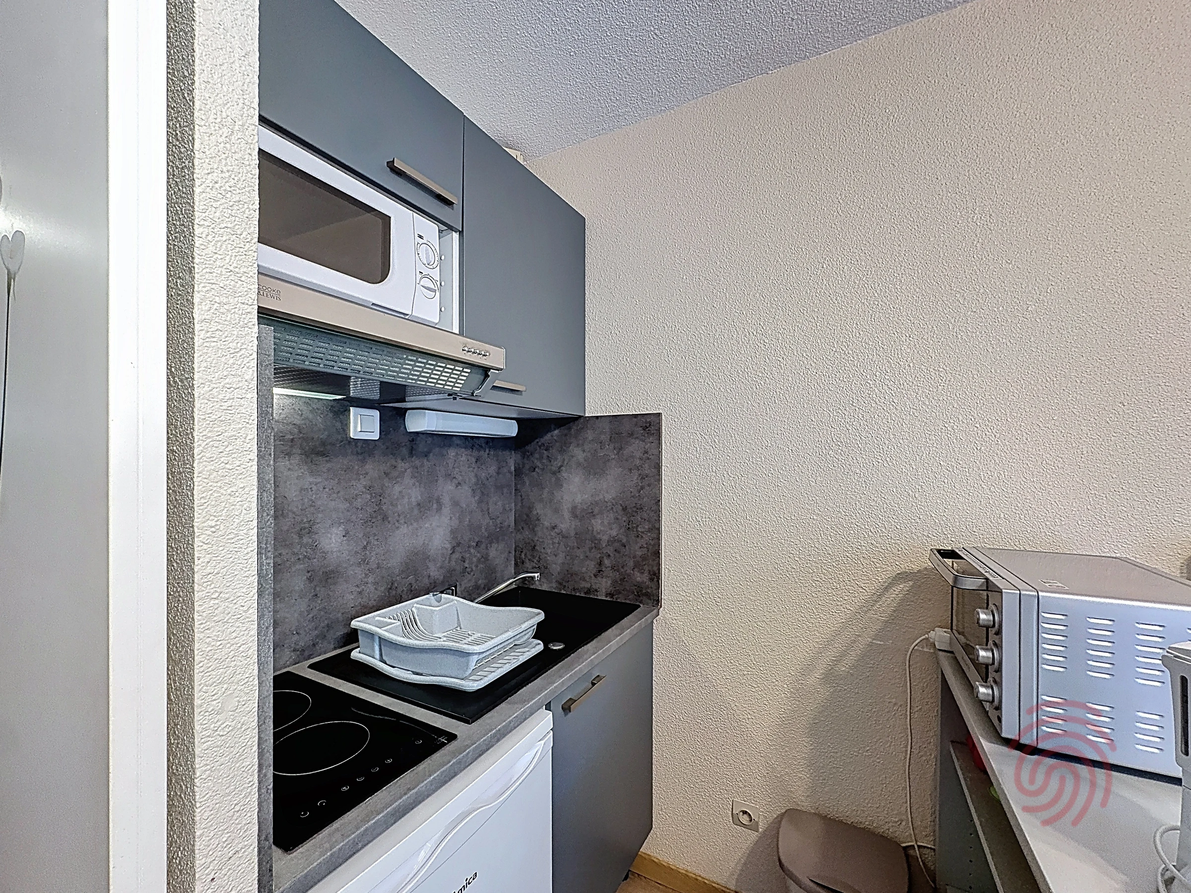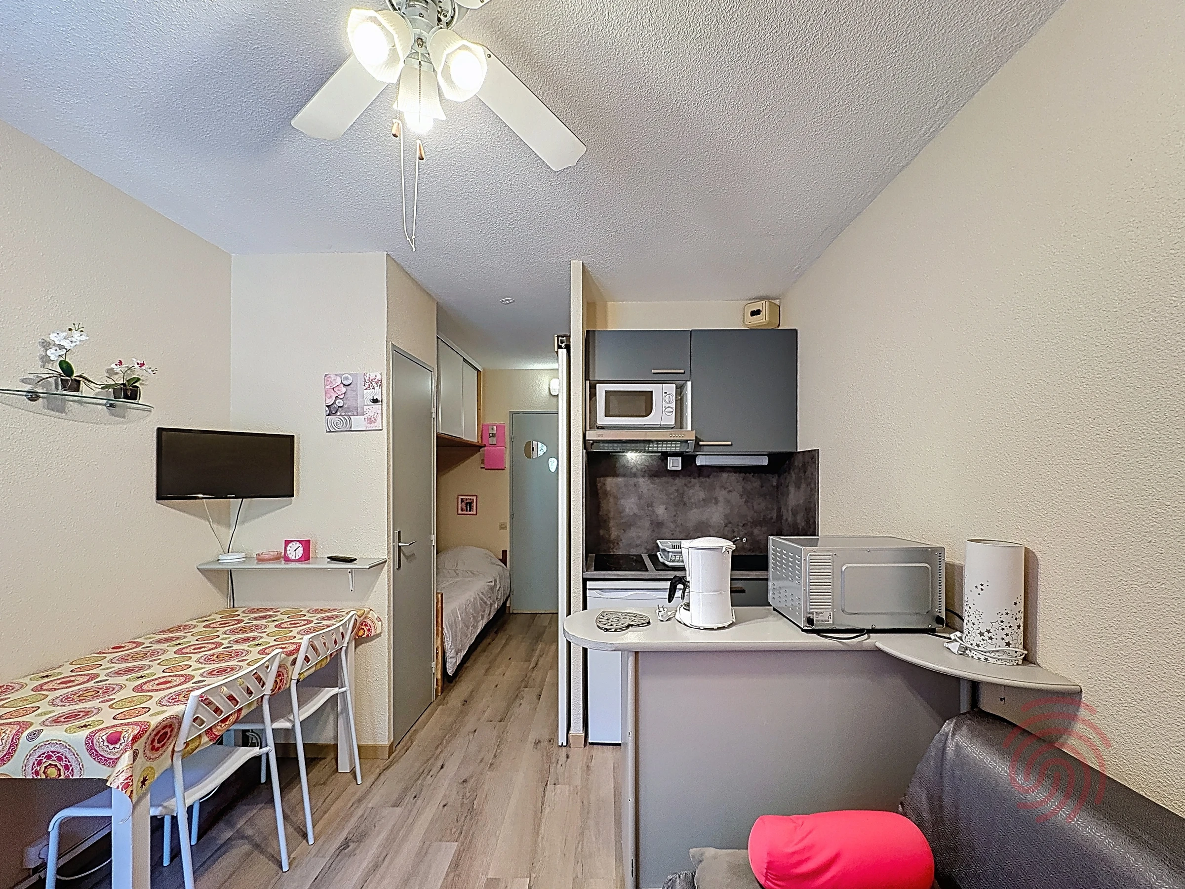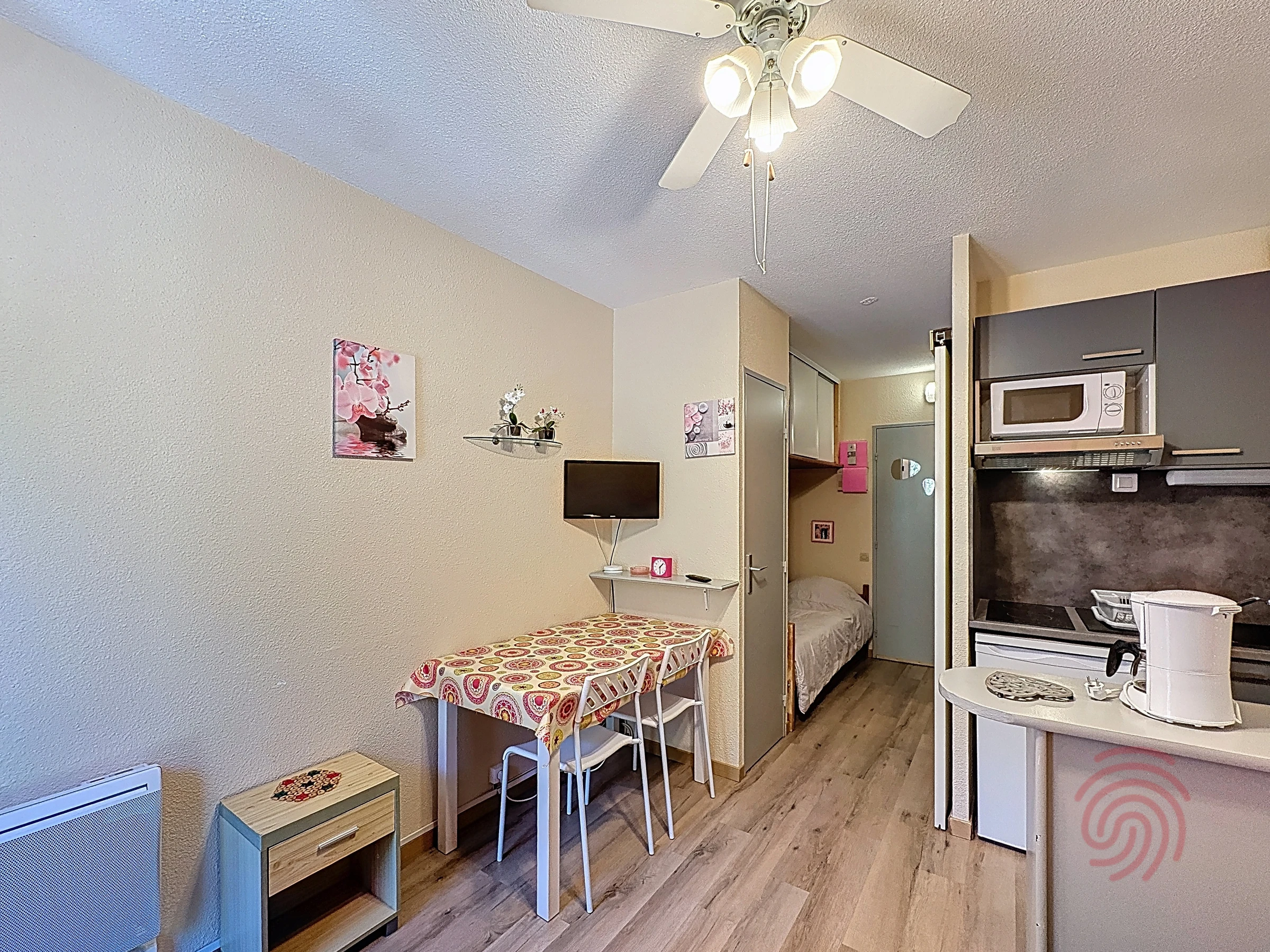 17sqm studio, located on the 3rd floor. Kitchenette with electric hob, oven, refrigerator top, microwave ... open to the main room which includes table, chairs, flat screen TV, sofa bed 2 places and a bed in 90 in the entrance.