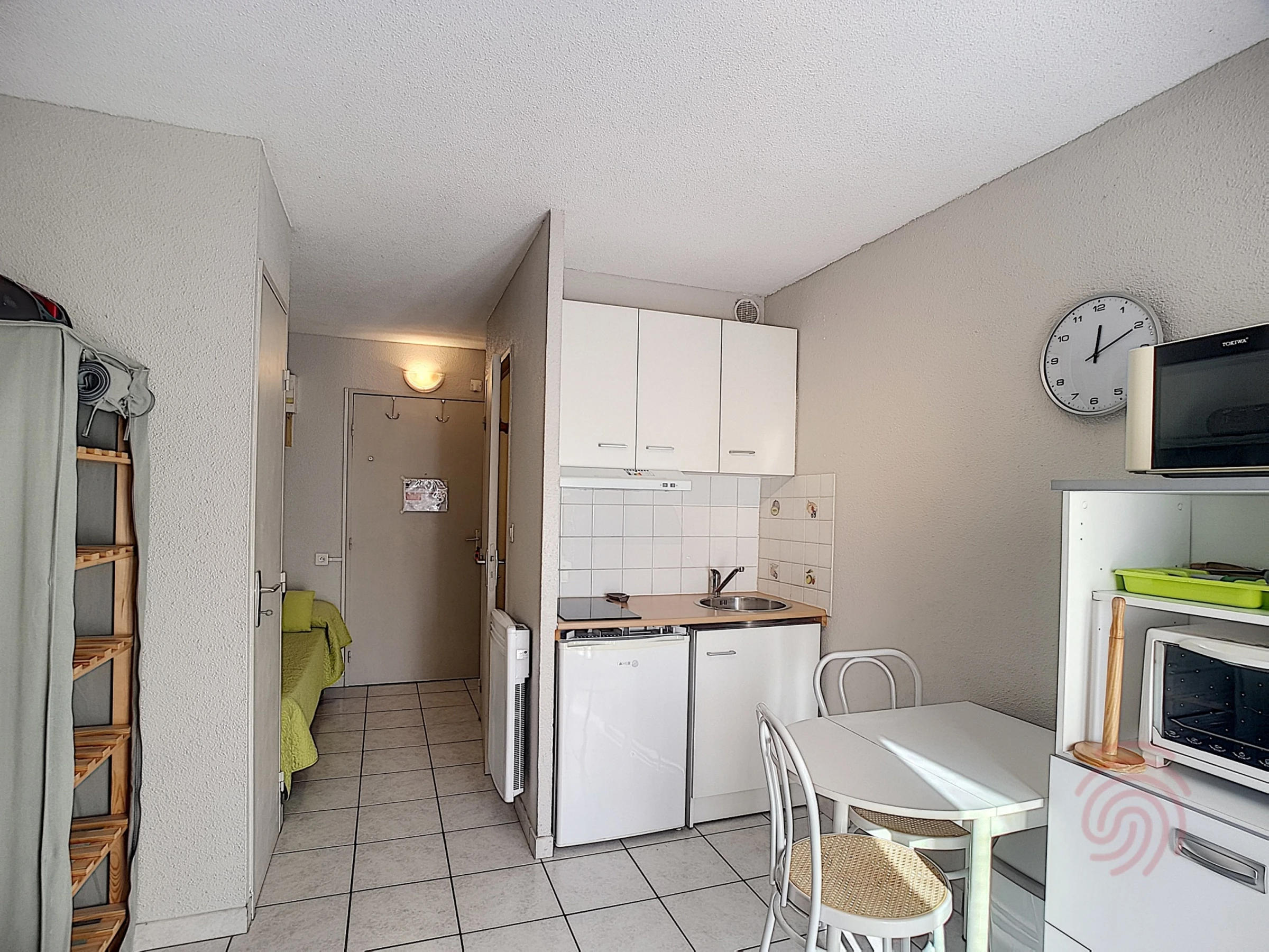 This 17 m² apartment, located on the 2nd floor (accessible by elevator and eight steps), overlooks the residence's parking lot and faces south. It is 400 meters from the center of Lamalou-les-Bains and 650 meters from the thermal baths. The apartment features a kitchenette with a small refrigerator, microwave, oven, and two-burner ceramic hob, opening onto the main room which includes a single bed (80 cm), a flat-screen TV, and another single bed (80 cm) in the entrance area. Wi-Fi is provided. There is a bathroom with a shower, sink, and toilet. A balcony with a table and chairs is also included. A laundromat is available in the residence. Free municipal parking is available nearby. Pets are welcome. A travel cot for a baby can be provided upon request, subject to availability.