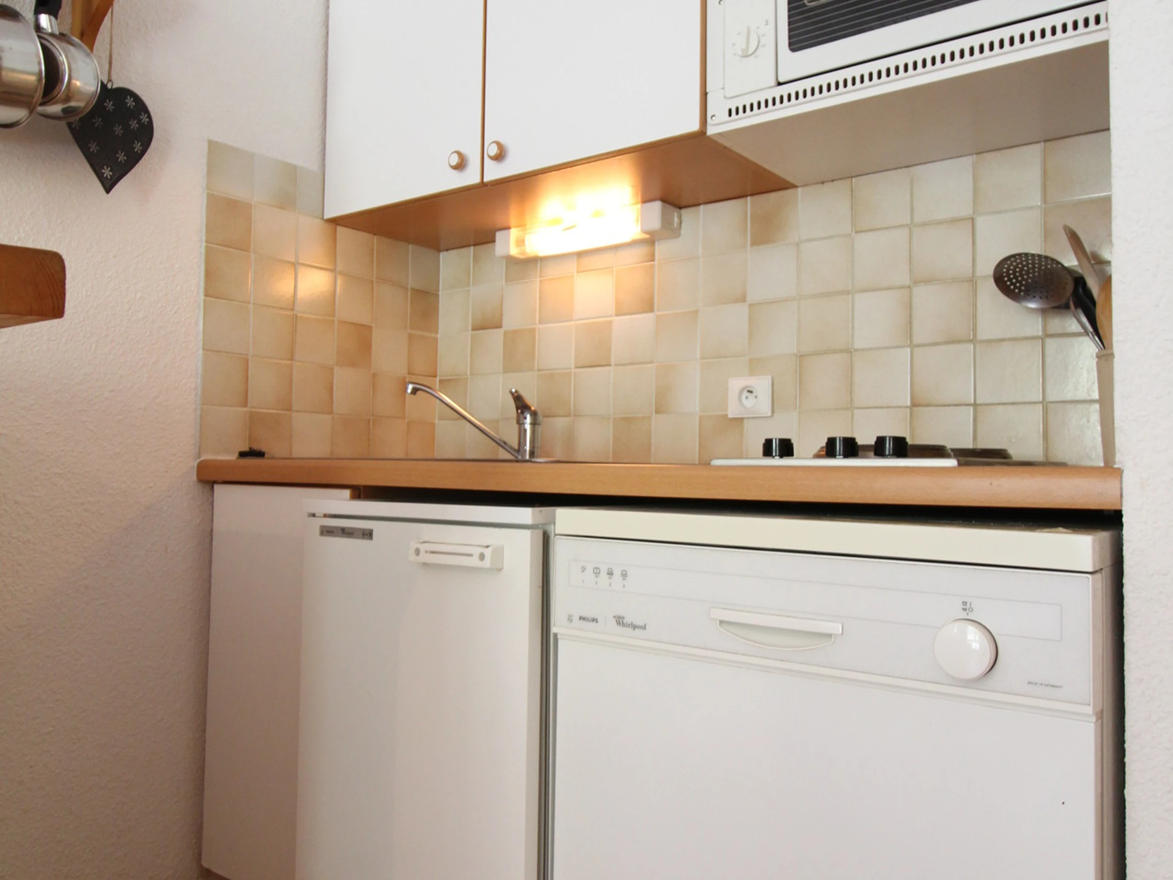 Kitchenette équipée : Plque vitrocéramique 2 feux, four, réfrigérateur, lave vaisselle.