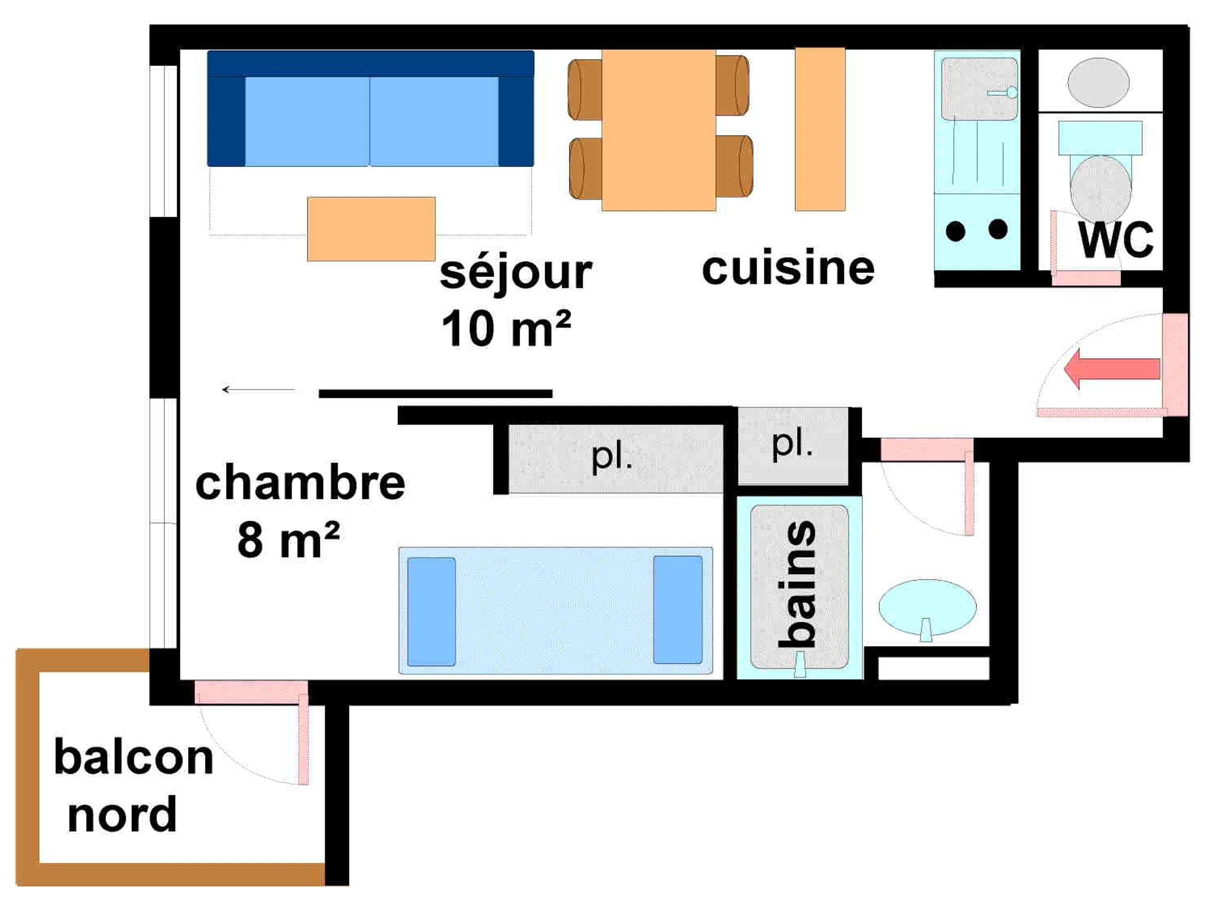 Dans la Résidence Le Pied de Pistes, agréable appartement 4 personnes.