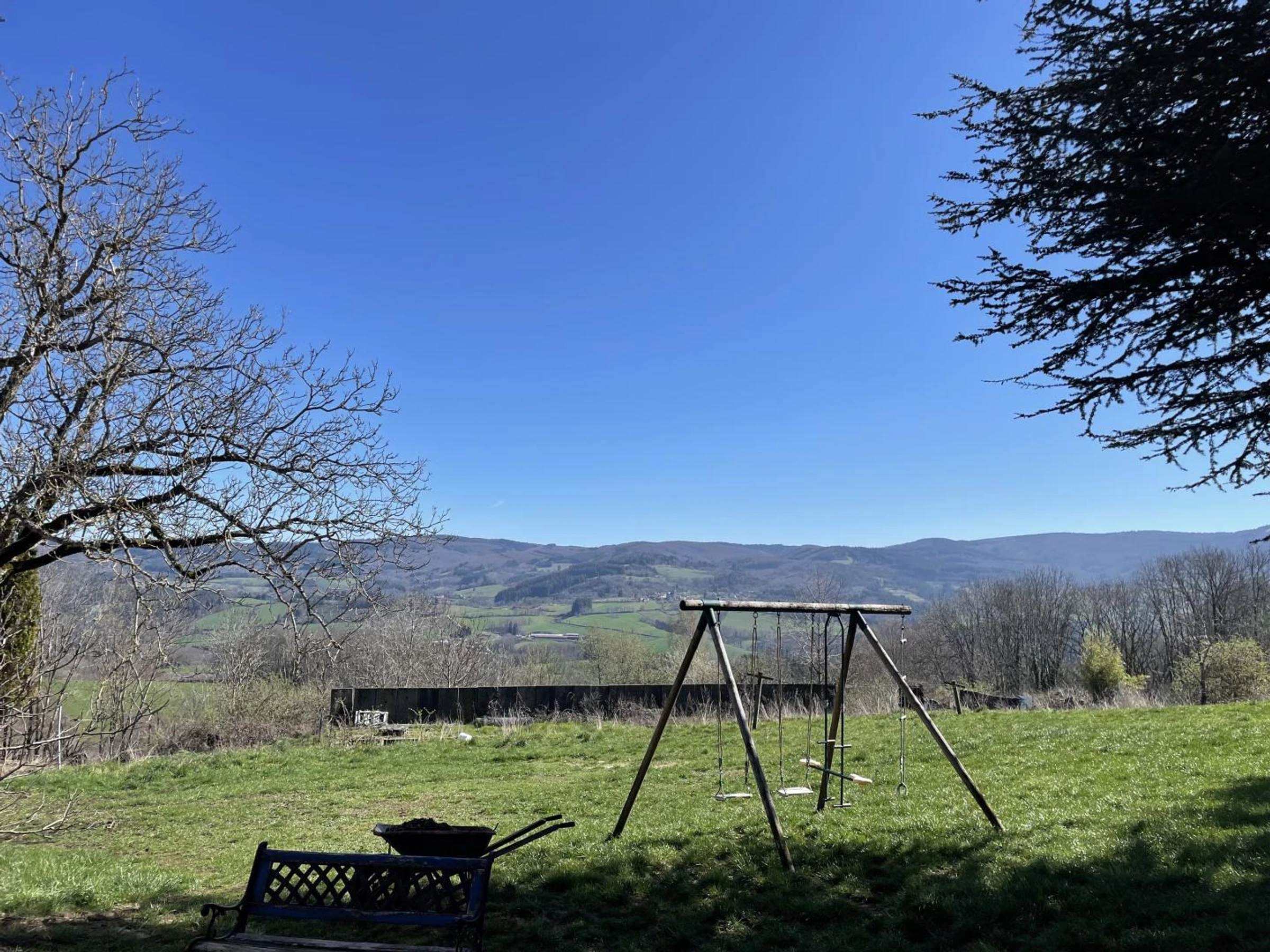 Natural grounds with lawn (1500m²), large terrace offering unobstructed views of the surrounding countryside, garden furniture, barbecue. Horse stabling available. Lapalisse 25 km. Vichy 35 km.