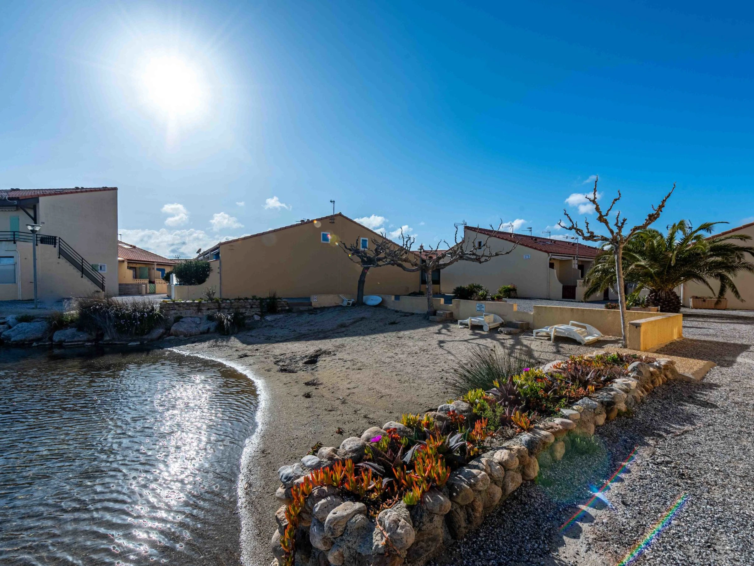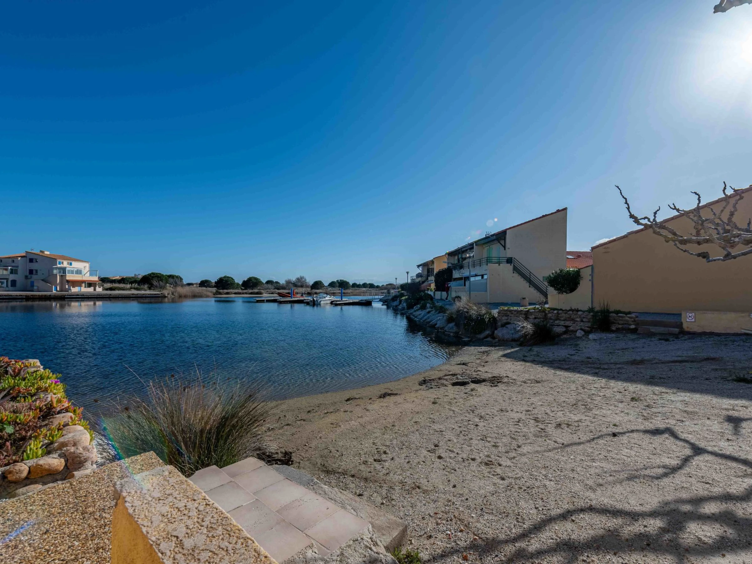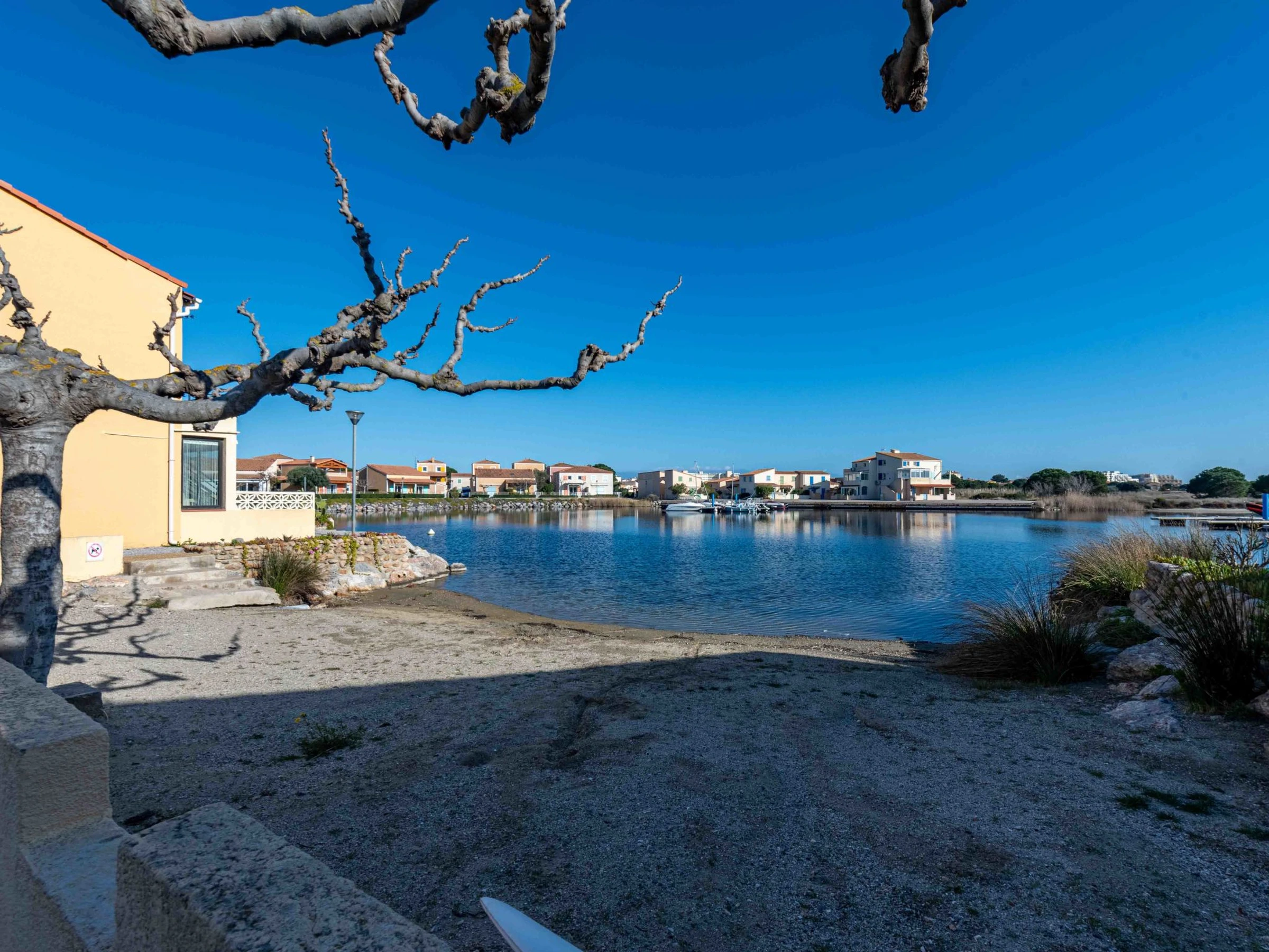 Cosy residence "Santa Barbara". 120 houses in the residence. On the outskirts, 1 km from the sea, 50 m from the lake, 1 km from the beach. For shared use: natural pond, parking. Shop 2 km, grocery 3 km, supermarket 5 km, restaurant 1.5 km, bar 2 km, bakery 2 km, café 1.5 km, bicycle rental 4 km, bus stop "Le Barcarès" 400 m, railway station "Perpignan" 22 km, sandy beach "plage de port leucate" 2 km, diving center 6 km, outdoor swimming pool 4 km, nudist beach 5 km. Sports harbour 7 km, surf school 1 km, sailing school 3 km, tennis 3 km, minigolf 3 km, riding stable 9 km, cycle lane 6 m. Nearby attractions: Aqualand Port Leucate 1.3 km, Réserve Africaine de Sigean 41 km, Parcours Aventure 2 km, cinéma 1.3 km, Téleski nautique site des dosses 100 m, Spot de windsurf 100 m. Well-known lakes can easily be reached: Lac de Villeneuve de La Raho 28 km. Hiking paths: Sentier du guetteur 8 km, La forteresse de salses 15 km, Sentier du littoral Collioure 40 km. Please note: car recommended. Entertainment in the season. The photograph shows a typical example. Additional accommodations can be booked. The Residence has private small beach areas on the salt water lake.