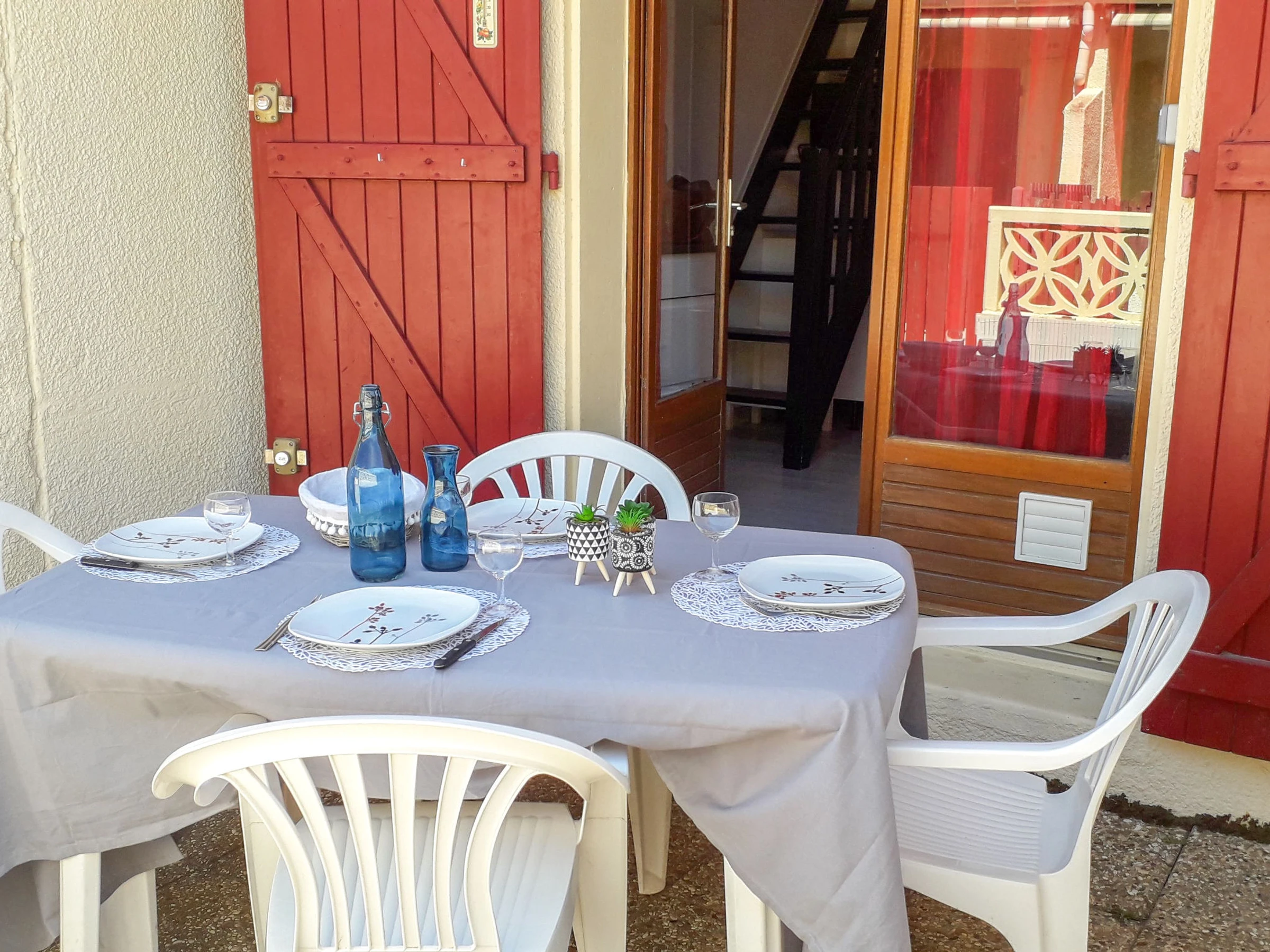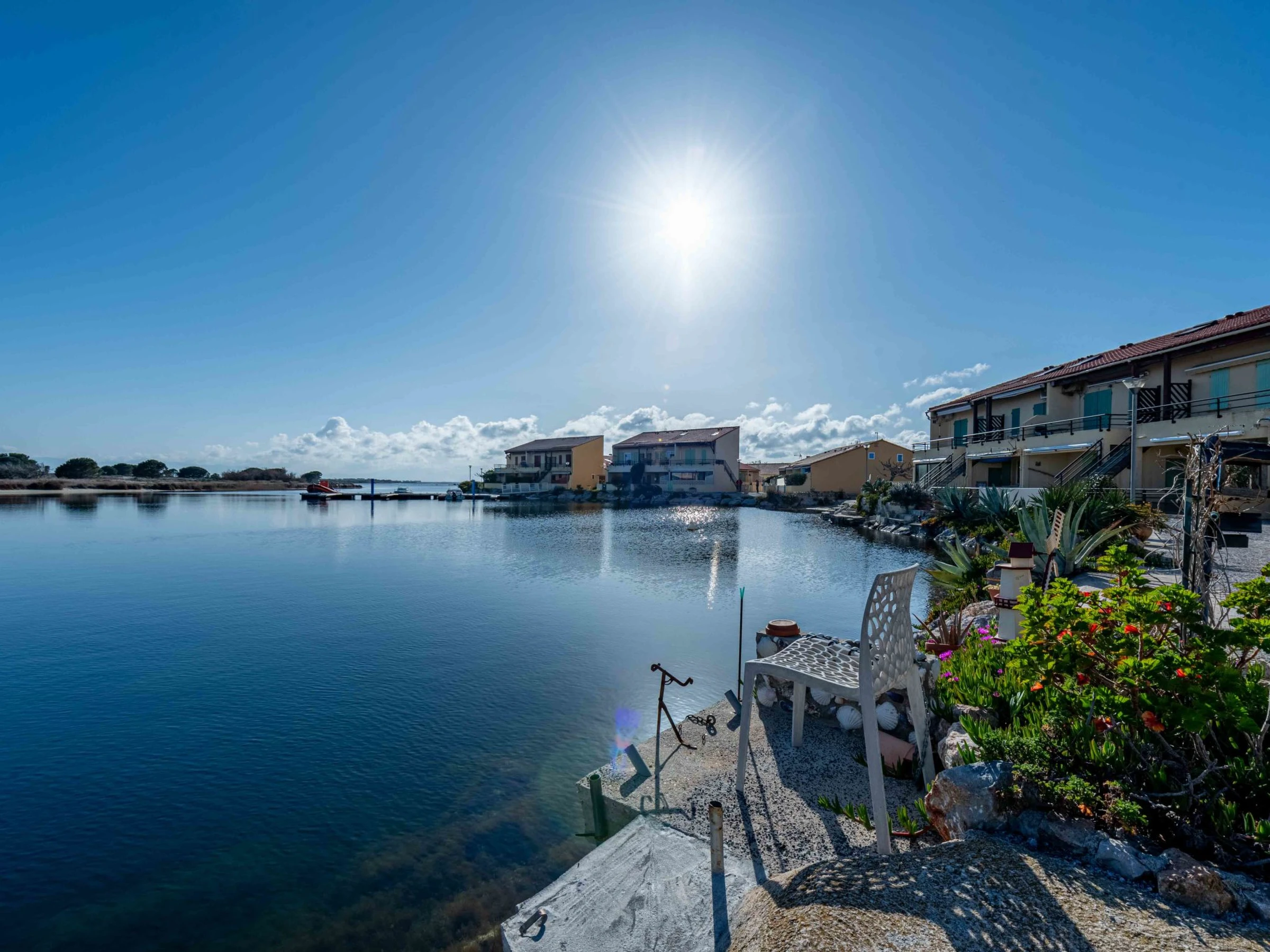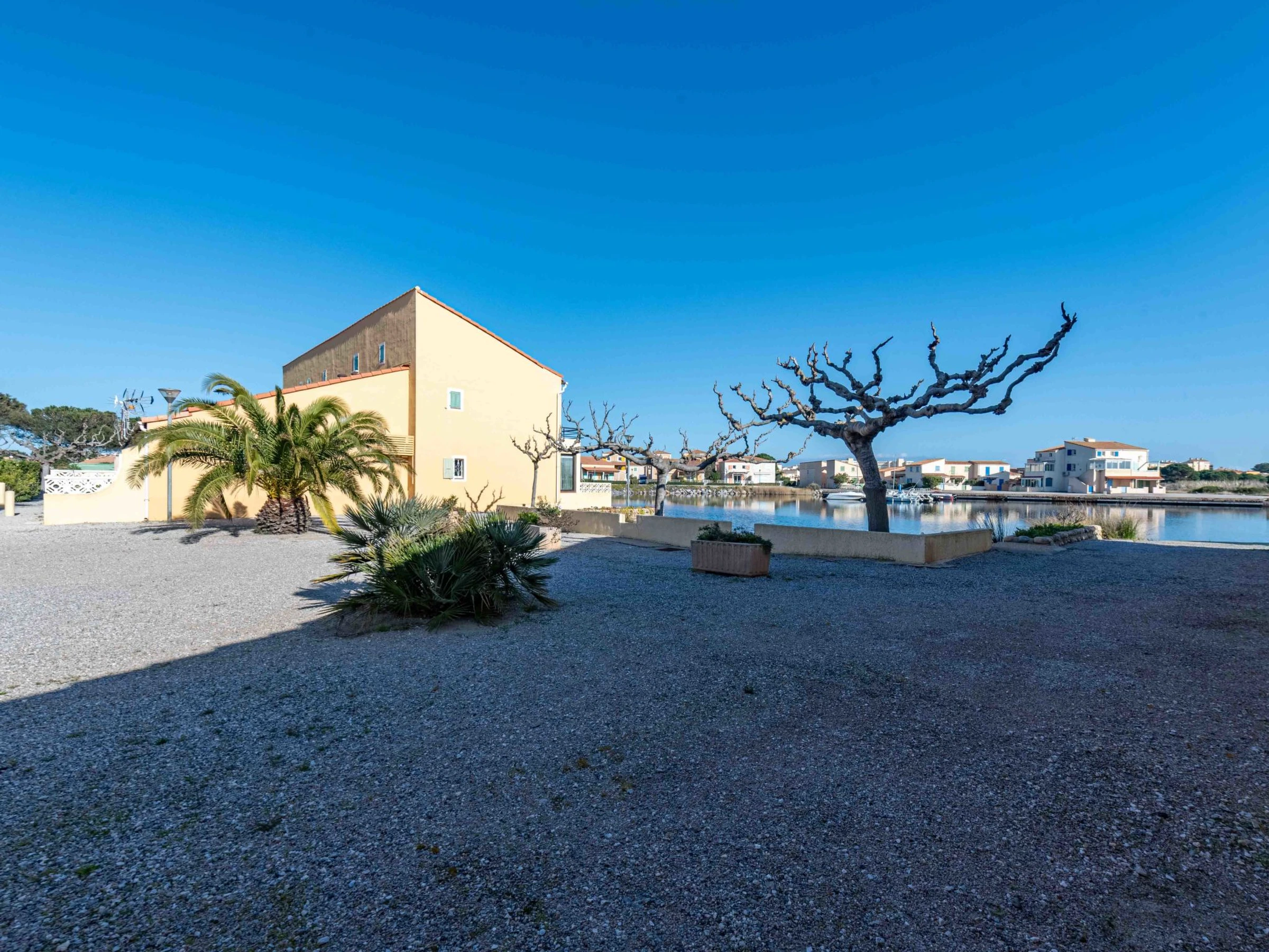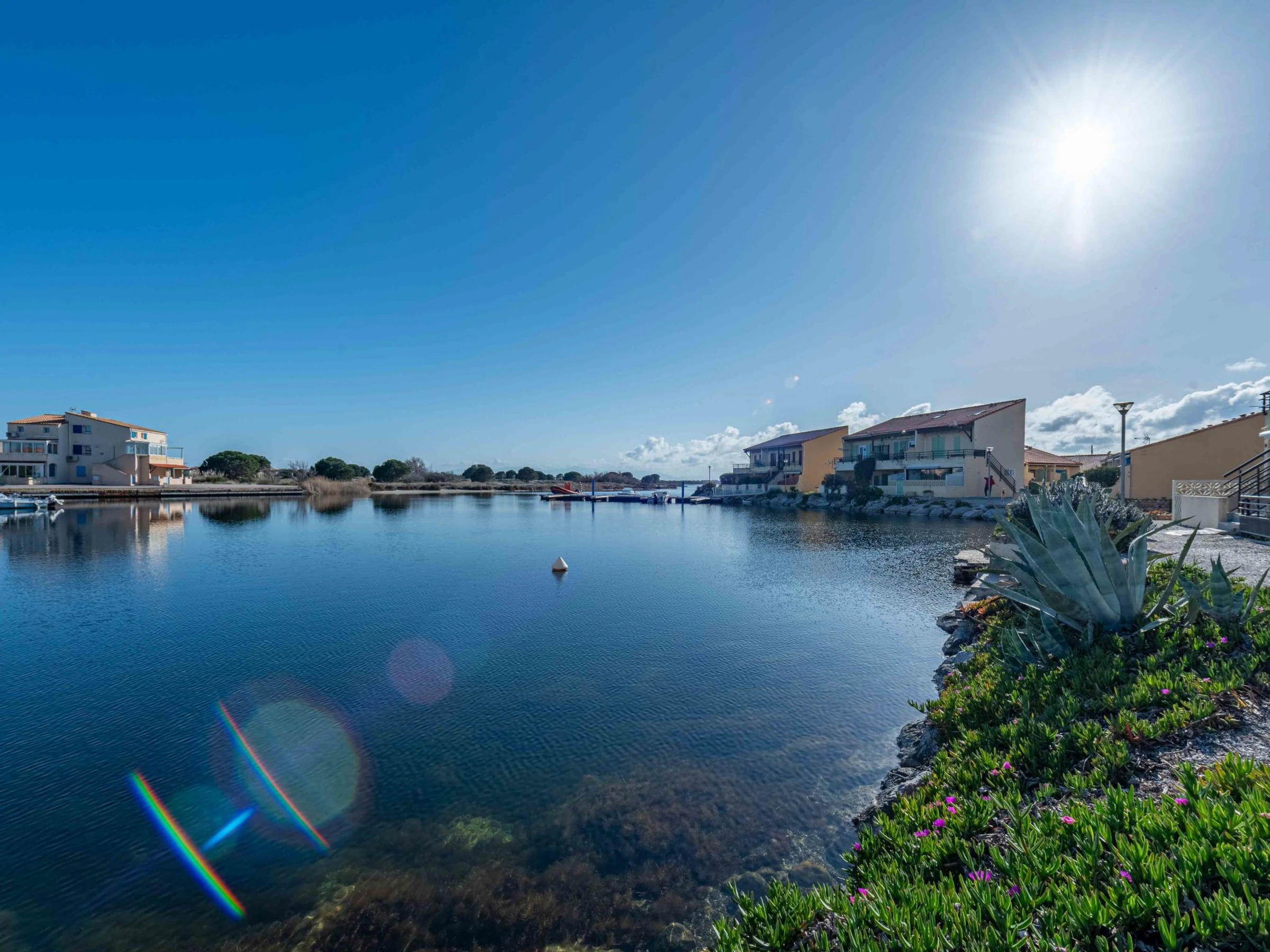 Cosy residence "Santa Barbara". 120 houses in the residence. On the outskirts, 1 km from the sea, 50 m from the lake, 1 km from the beach. For shared use: natural pond, parking. Shop 2 km, grocery 3 km, supermarket 5 km, restaurant 1.5 km, bar 2 km, bakery 2 km, café 1.5 km, bicycle rental 4 km, bus stop "Le Barcarès" 400 m, railway station "Perpignan" 22 km, sandy beach "plage de port leucate" 2 km, diving center 6 km, outdoor swimming pool 4 km, nudist beach 5 km. Sports harbour 7 km, surf school 1 km, sailing school 3 km, tennis 3 km, minigolf 3 km, riding stable 9 km, cycle lane 6 m. Nearby attractions: Aqualand Port Leucate 1.3 km, Réserve Africaine de Sigean 41 km, Parcours Aventure 2 km, cinéma 1.3 km, Téleski nautique site des dosses 100 m, Spot de windsurf 100 m. Well-known lakes can easily be reached: Lac de Villeneuve de La Raho 28 km. Hiking paths: Sentier du guetteur 8 km, La forteresse de salses 15 km, Sentier du littoral Collioure 40 km. Please note: car recommended. Entertainment in the season. The photograph shows a typical example. Additional accommodations can be booked. The Residence has private small beach areas on the salt water lake.