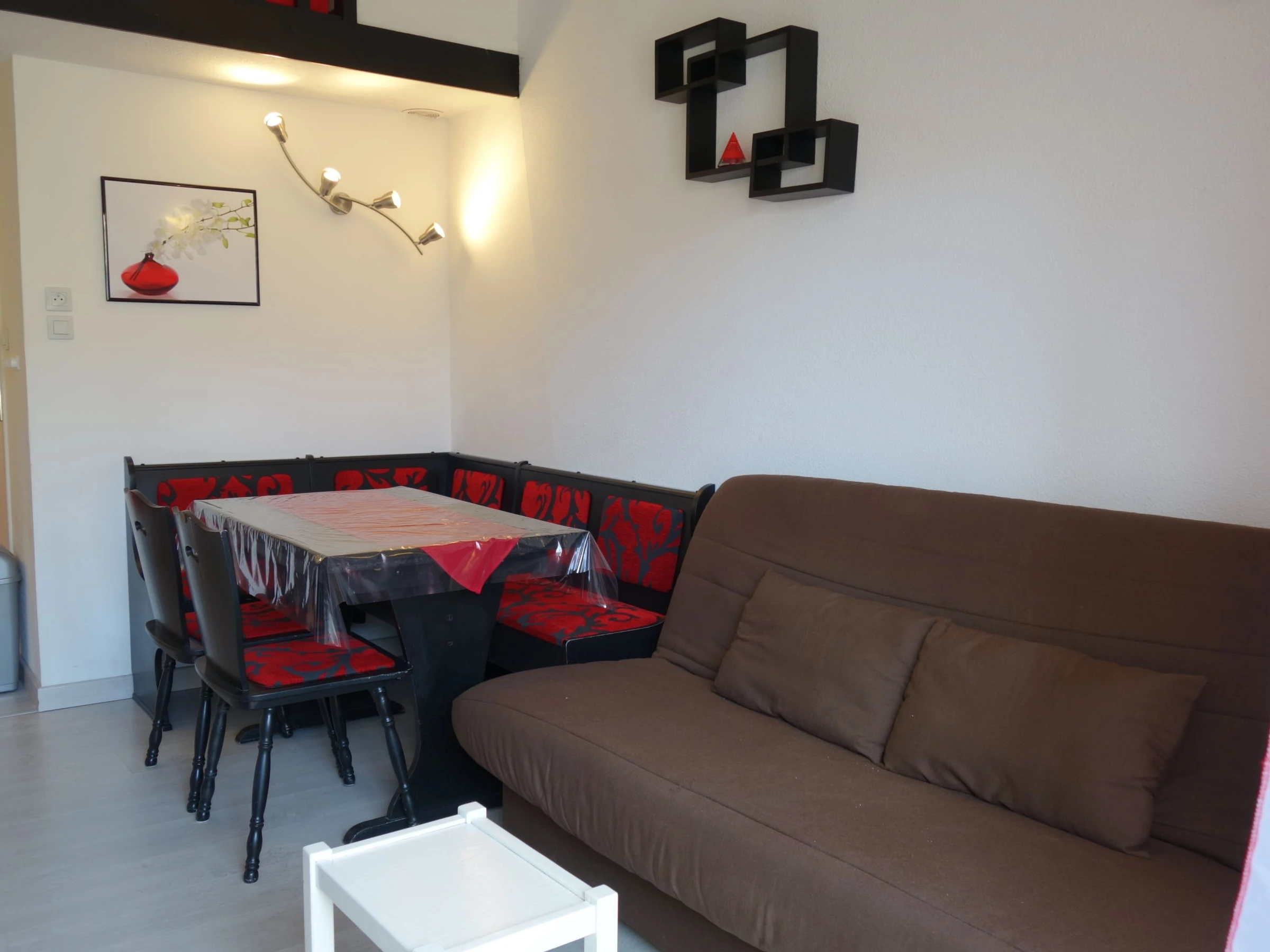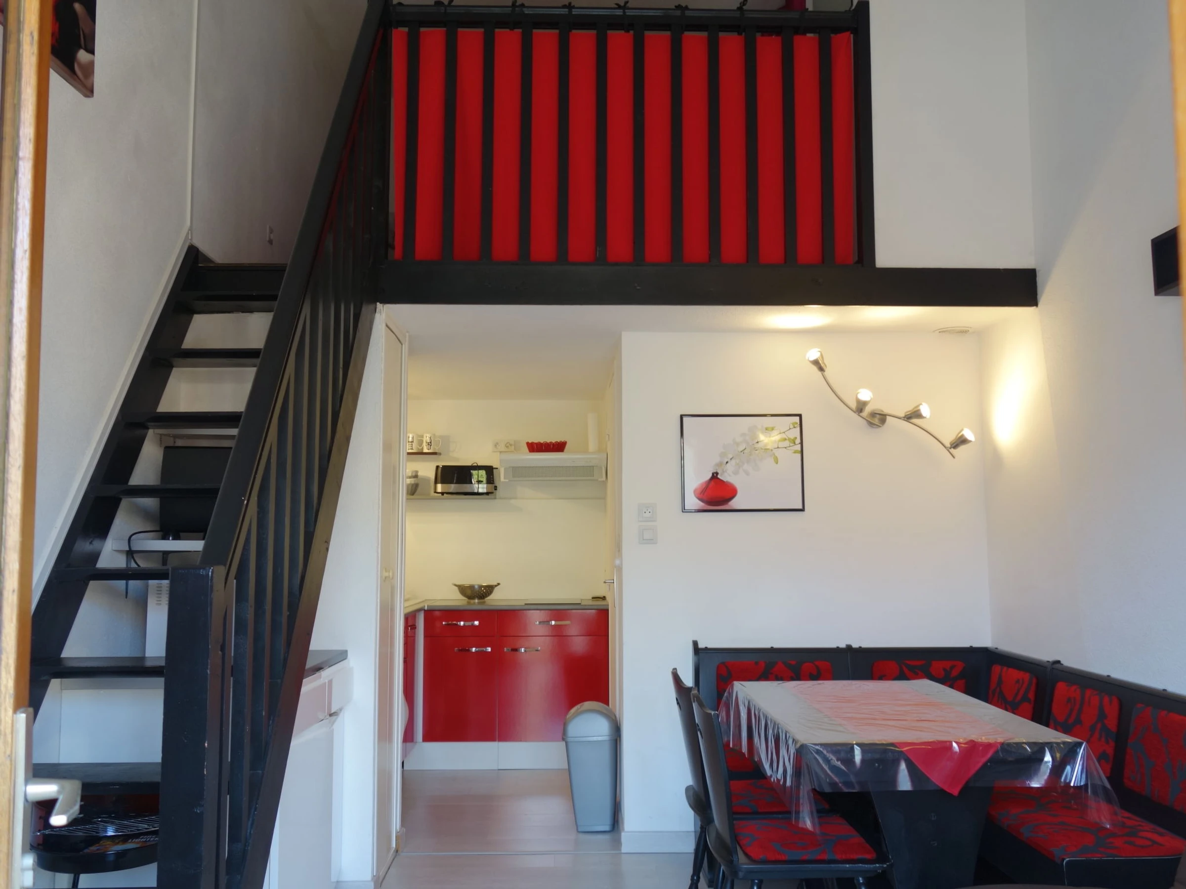 1-room studio 22 m2 on 2 levels. Living/dining room with 1 double sofabed (1 x 140 cm, length 190 cm), TV. Exit to the terrace. Open kitchen (mini-oven, 2 ceramic glass hob hotplates, toaster, kettle, microwave, electric coffee machine). Shower, sep. WC. Forced-air heating. Upper floor: open gallery with 1 french bed (1 x 140 cm, length 190 cm). Air-conditioning. Terrace 15 m2. Terrace furniture. Facilities: washing machine. Internet (WiFi, extra). Reserved parking. Please note: non-smokers only. Smoke alarm.